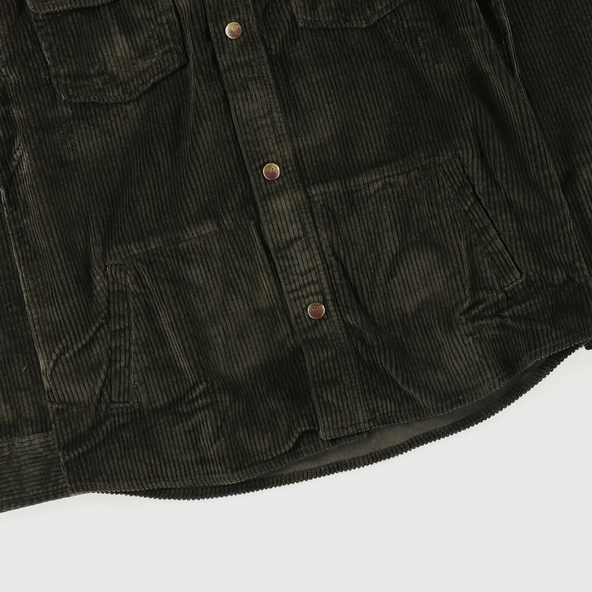 An overshirt from Kavu made from 100% cotton in a thick wale corduroy with two chest pockets, two hand pockets and a snap-up front with embossed buttons.