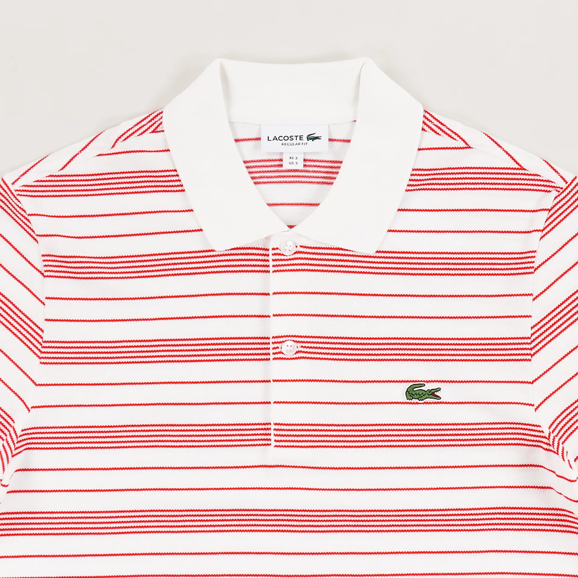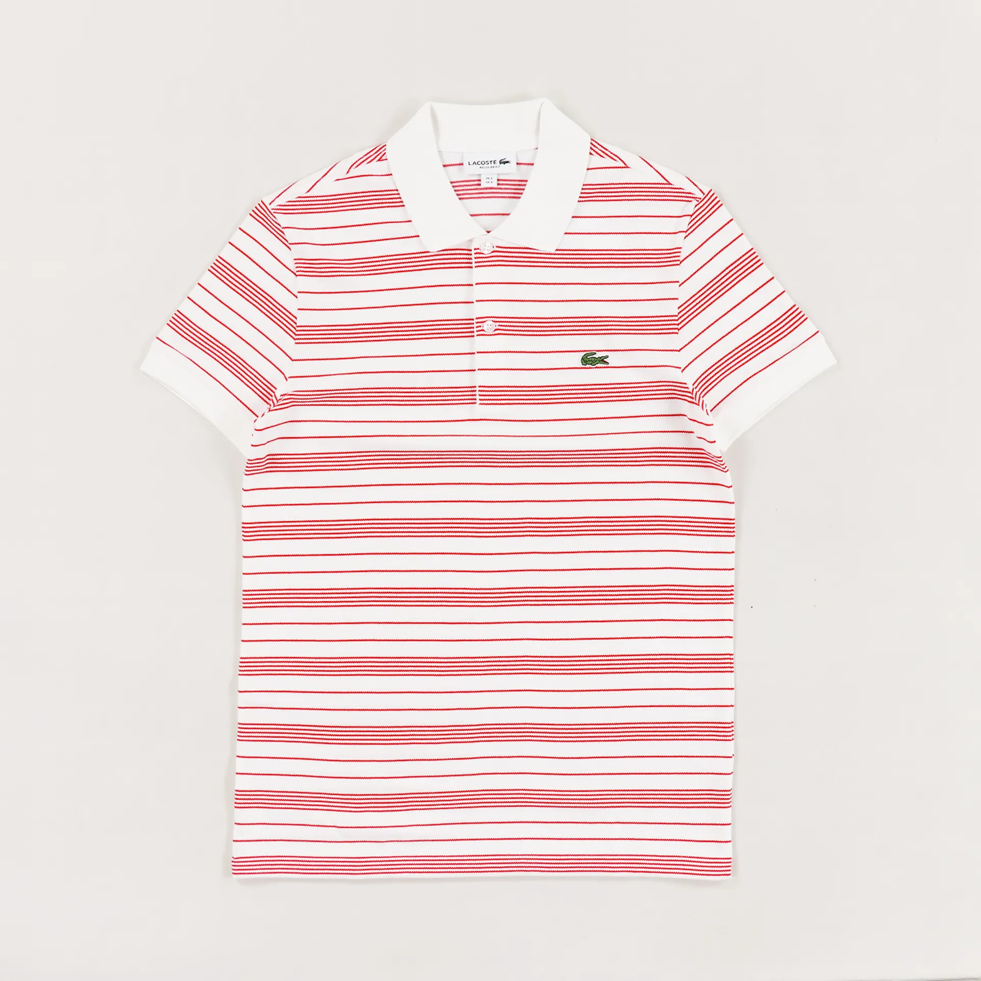 French sportswear company Lacoste have made this super soft and comfortable short sleeve polo shirt from 100% cotton in a pique weave with a ribbed collar and cuffs, a striped pattern and an embroidered logo to the chest.