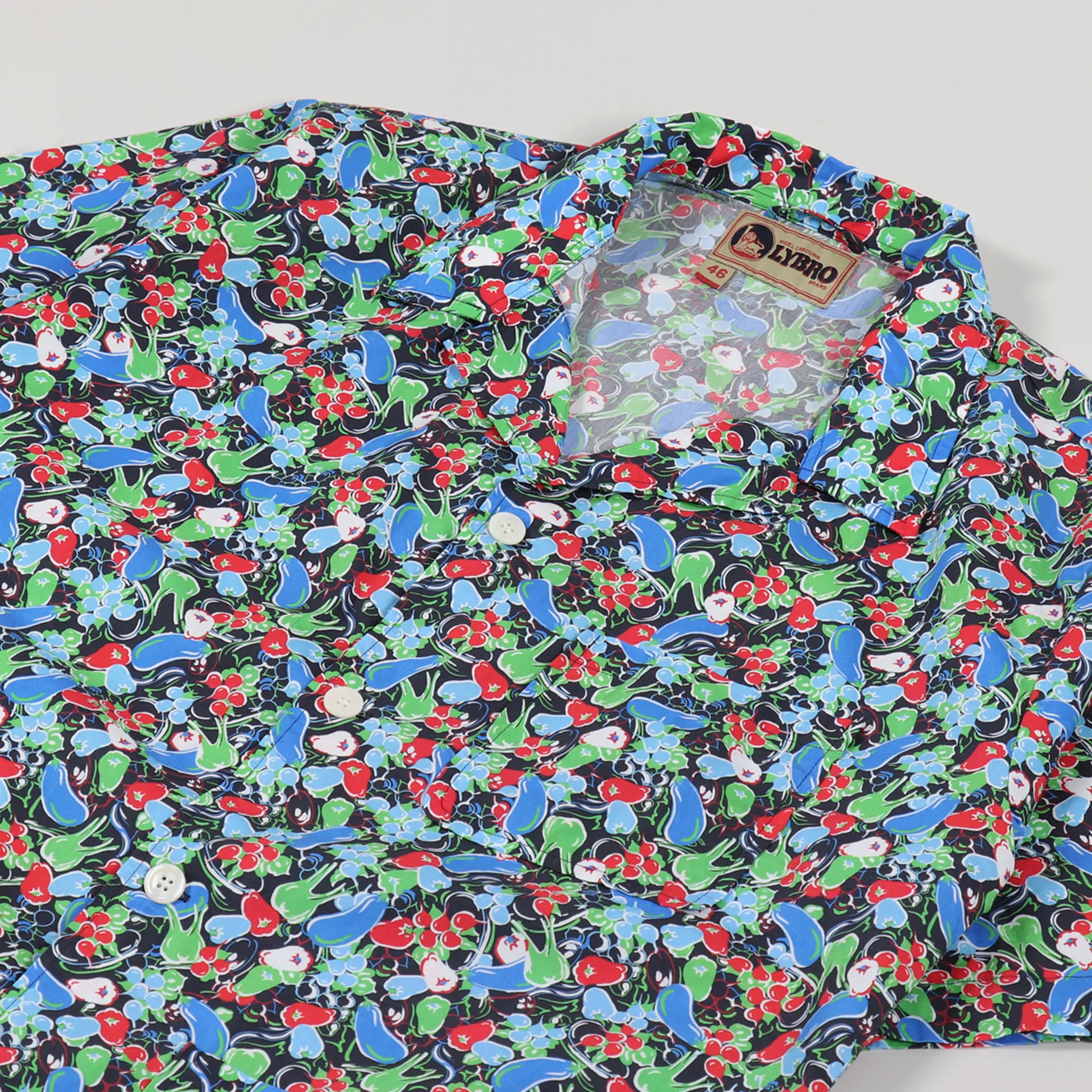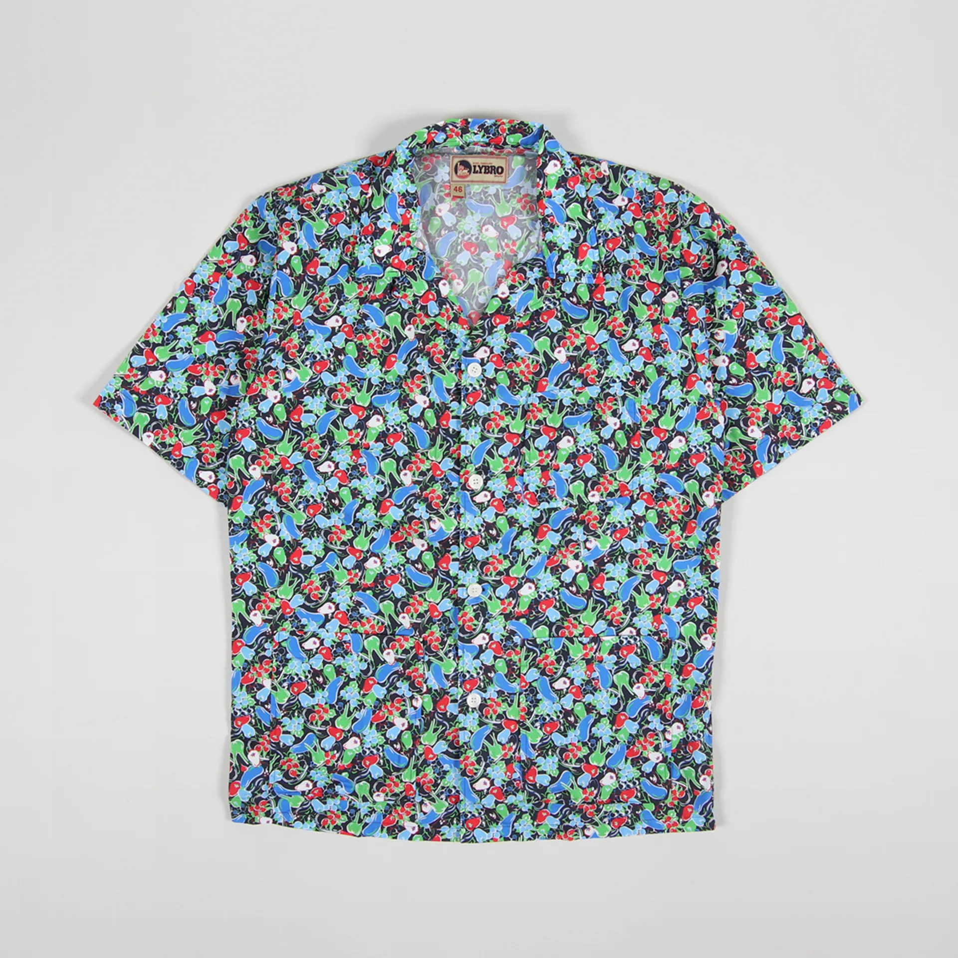 A short sleeve shirt from British cult designer Nigel Cabourn made from a lightweight and comfortable Lybro fabric of 100% cotton jersey. It has a buttoned front leading to a camp collar, a single chest pocket and graphic artwork.