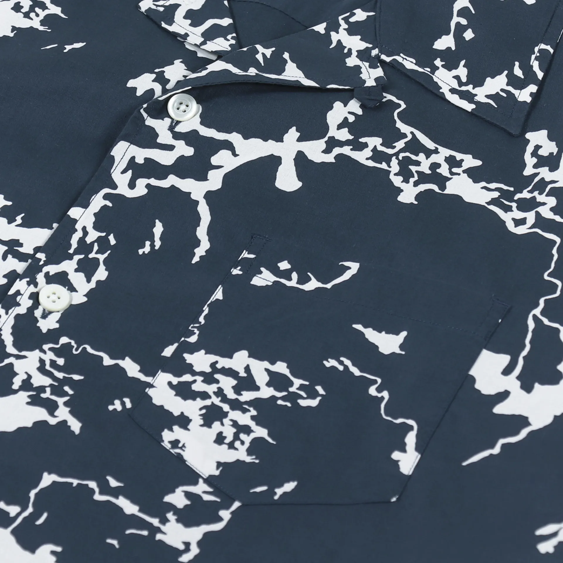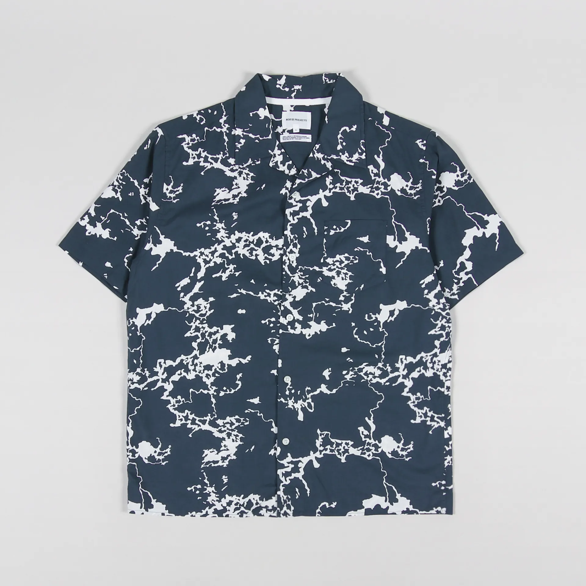 A short sleeve shirt from Norse Projects, made from a super lightweight and comfortable cotton jersey with a buttoned front, single chest pocket and a graphic AOP.