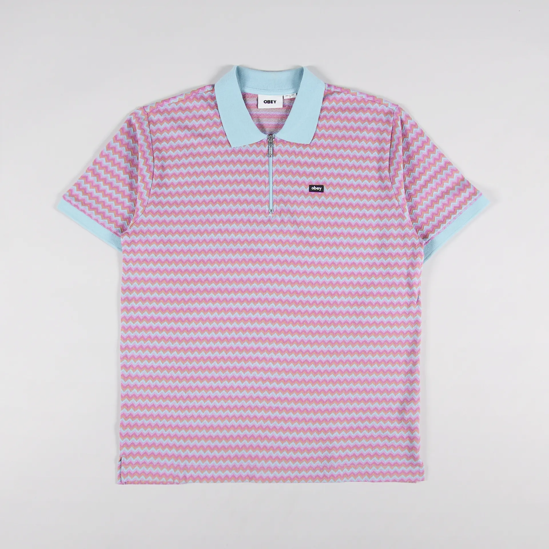 A polo shirt from Obey Clothing made from a super comfortable knit of 100% cotton with a ribbed collar and cuffs, a zippered neck and a jacquard striped pattern.