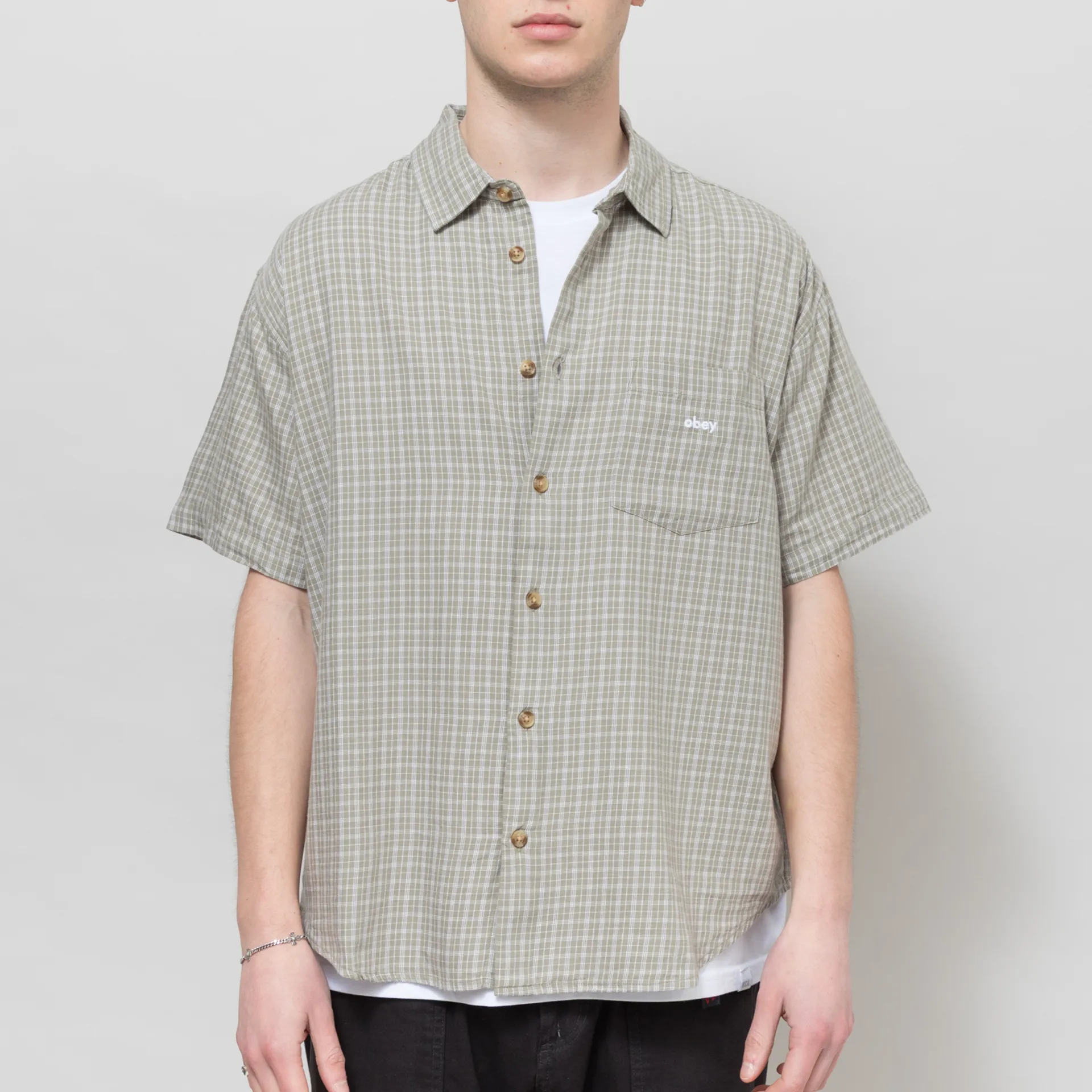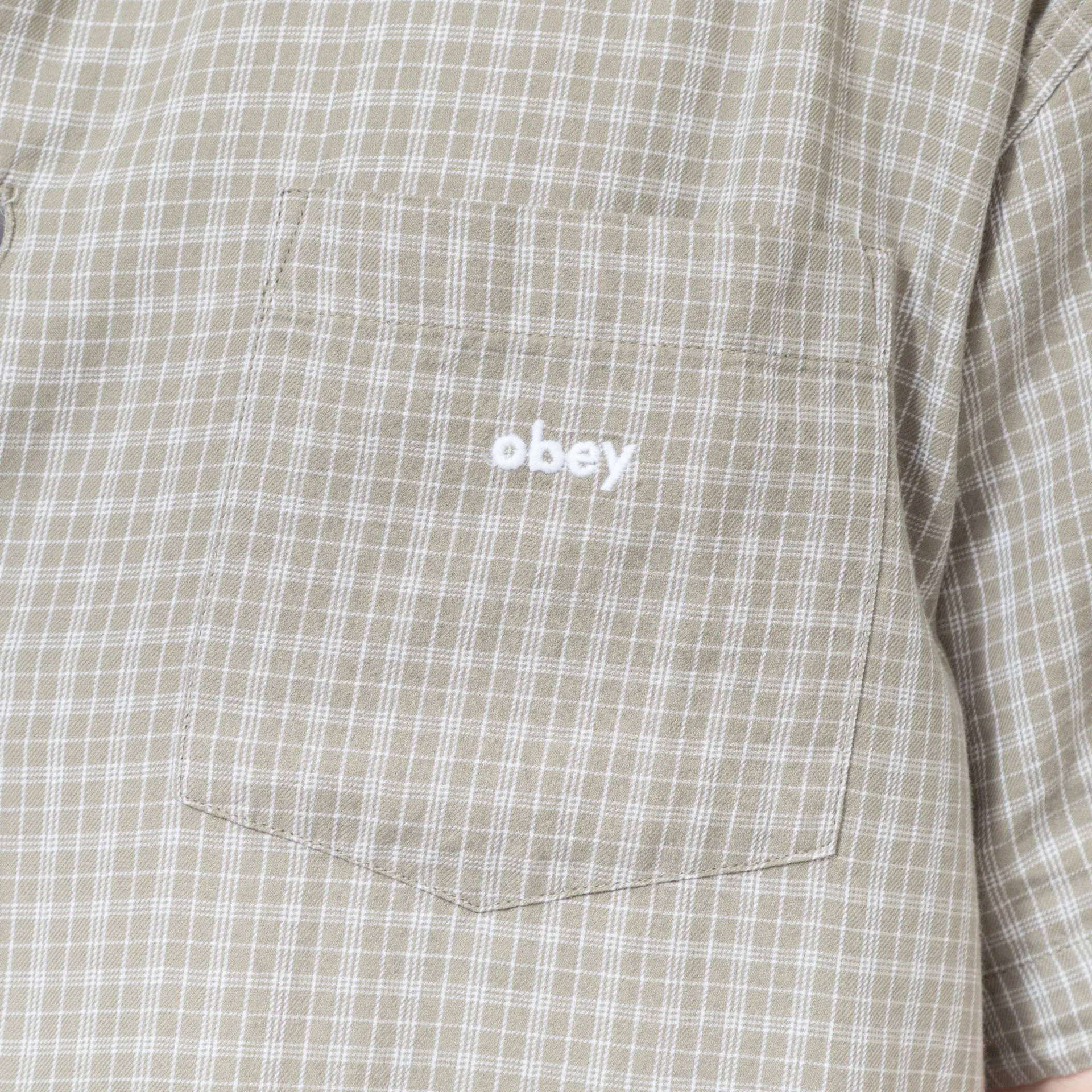 A short-sleeve shirt from Obey, cut in a relaxed fit for a casual look and constructed from unbrushed, cotton flannel fabric with an all-over check design.