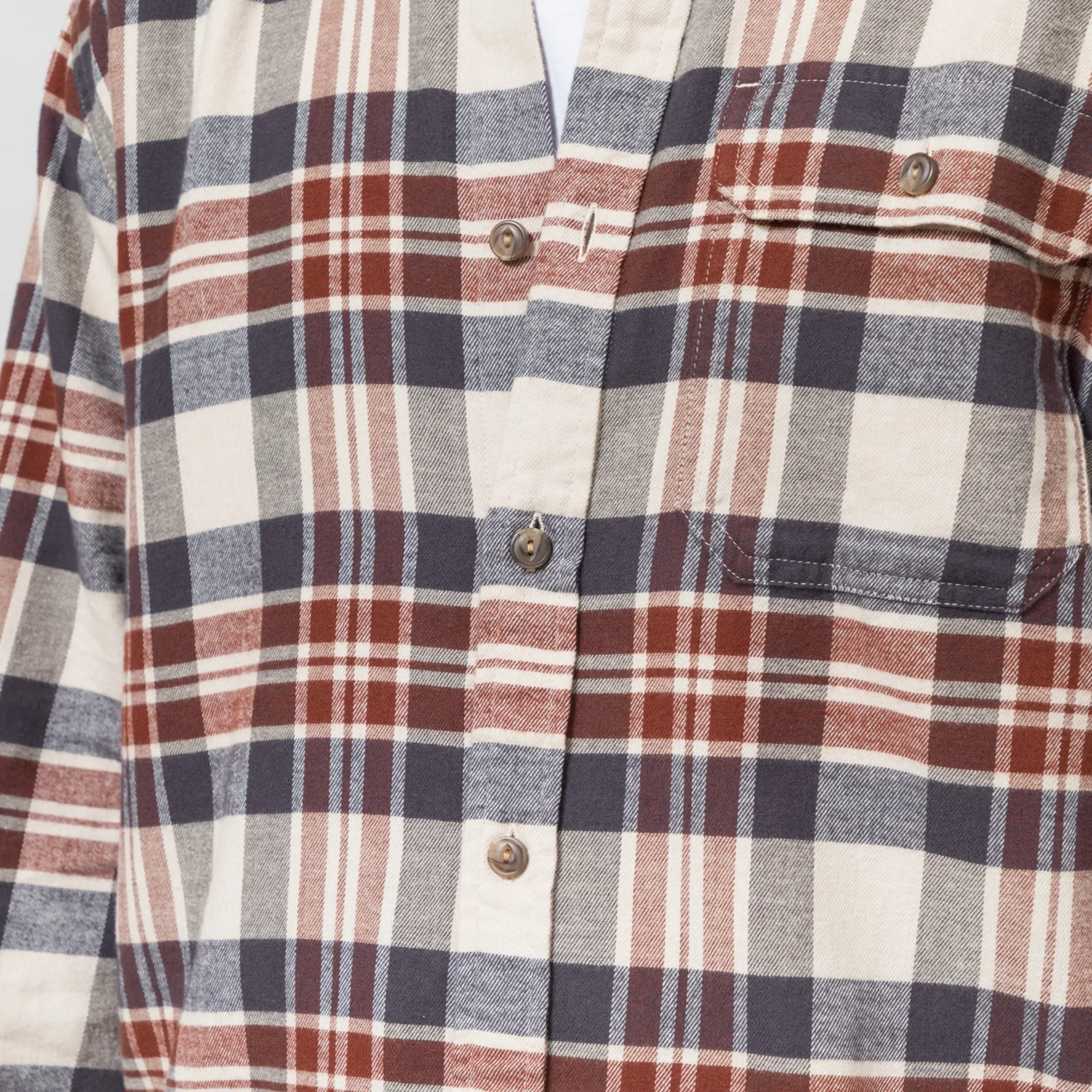 A long sleeve shirt from Patagonia made from a comfortable and soft lightweight flannel of 100% cotton from their Cotton In Conversion project. It has a buttoned front and cuffs, single chest pocket and a check pattern.