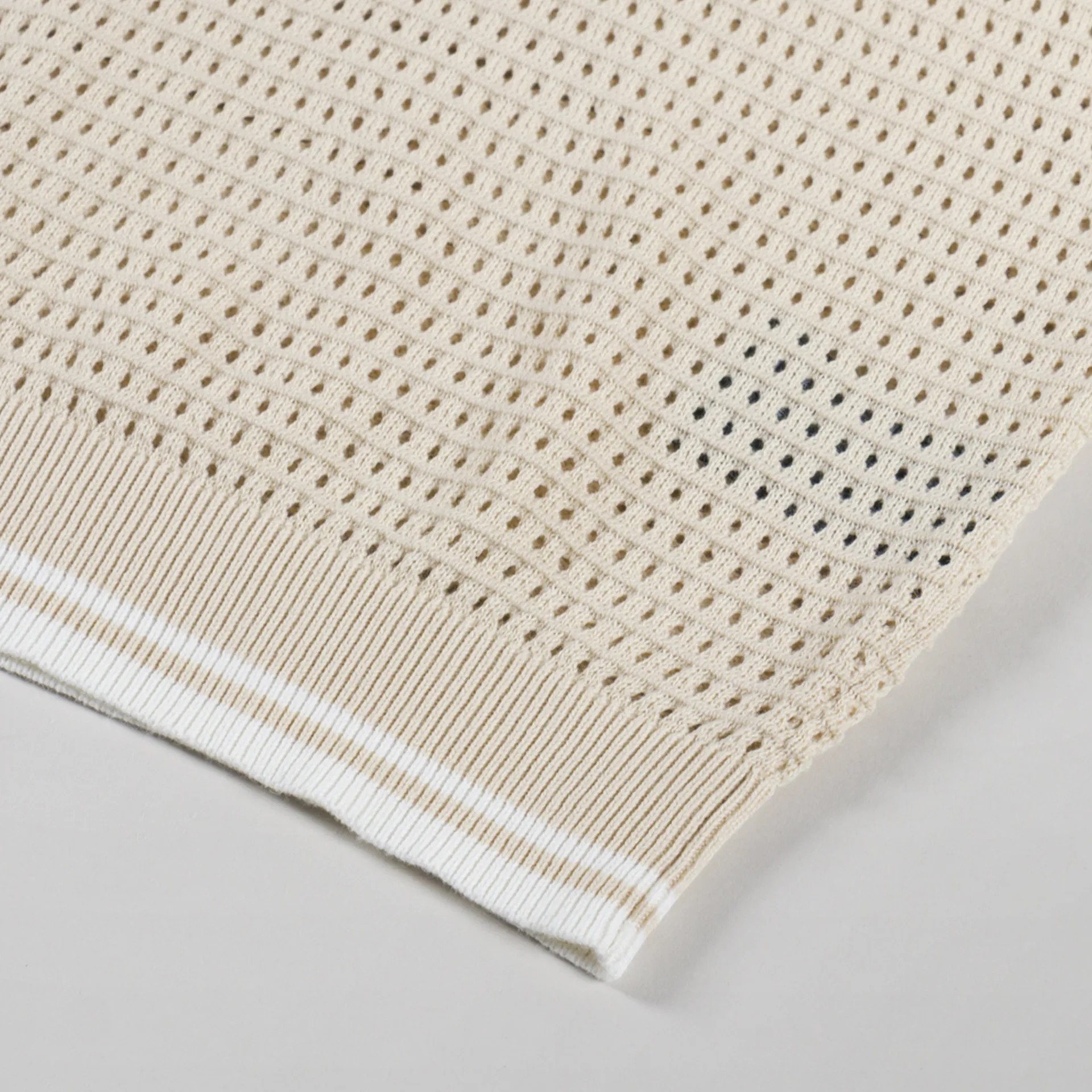 A knitted polo from Percival, cut in a relaxed, boxy fit for a casual silhouette and crafted from 100% cotton with a lightweight perforated knit construction for breathability. It features an open-neck placket with a ribbed hem and cuffs, all sporting contrast stripe detailing.