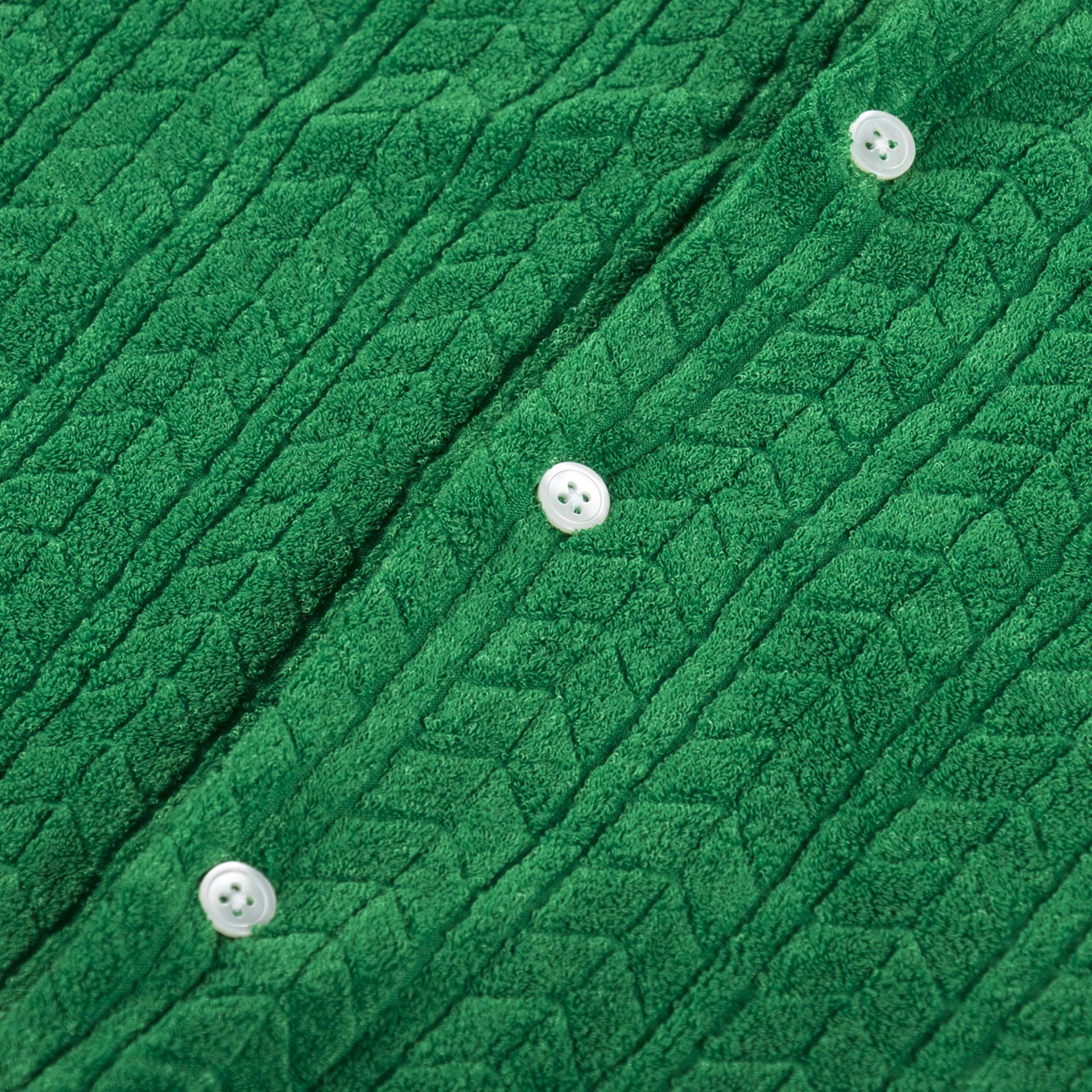 The Beach Club Shirt from Portuguese Flannel has been cut in a relaxed fit for everyday comfort, crafted from a super soft 100% polyester, very similar to terry cloth. It features a button-through front with Mother of Pearl buttons, leading up to a classic camp collar, complete with a single chest pocket and all-over pattern.