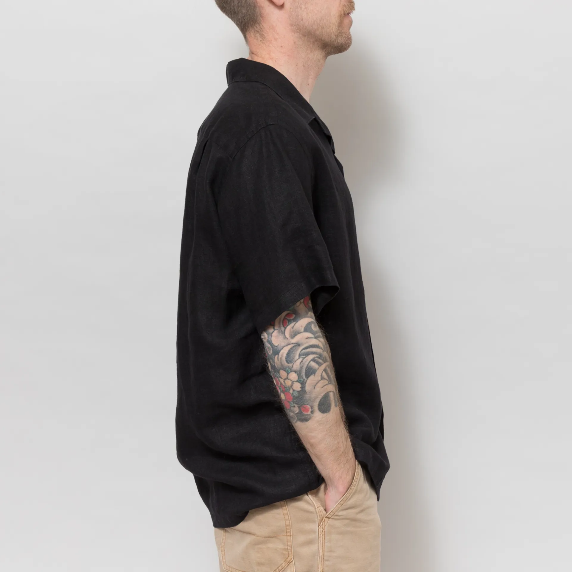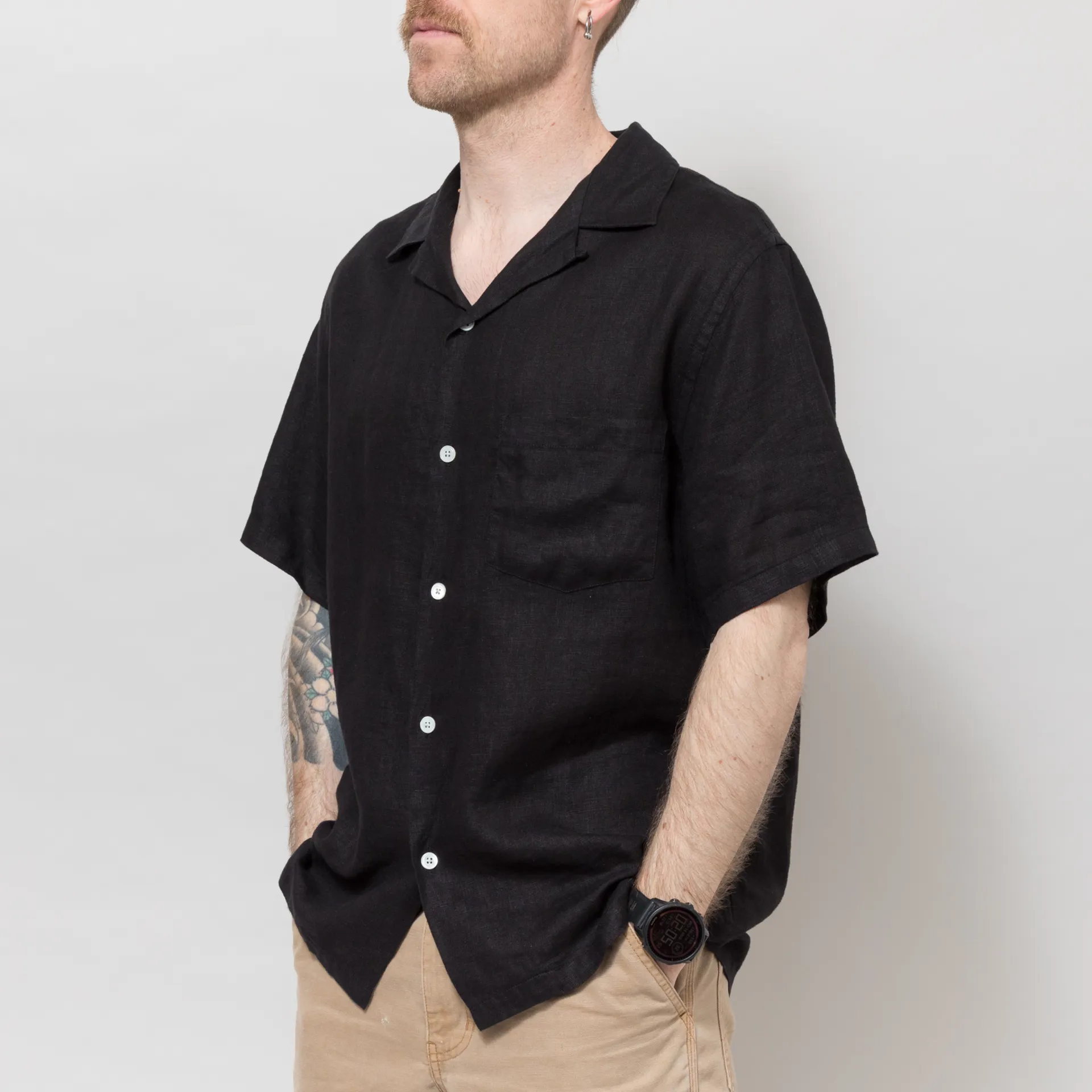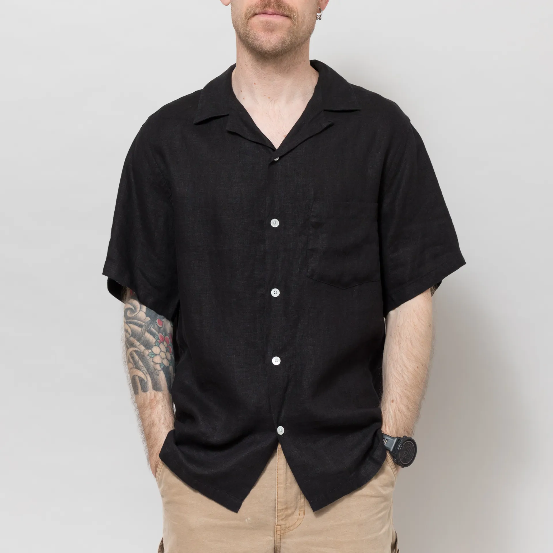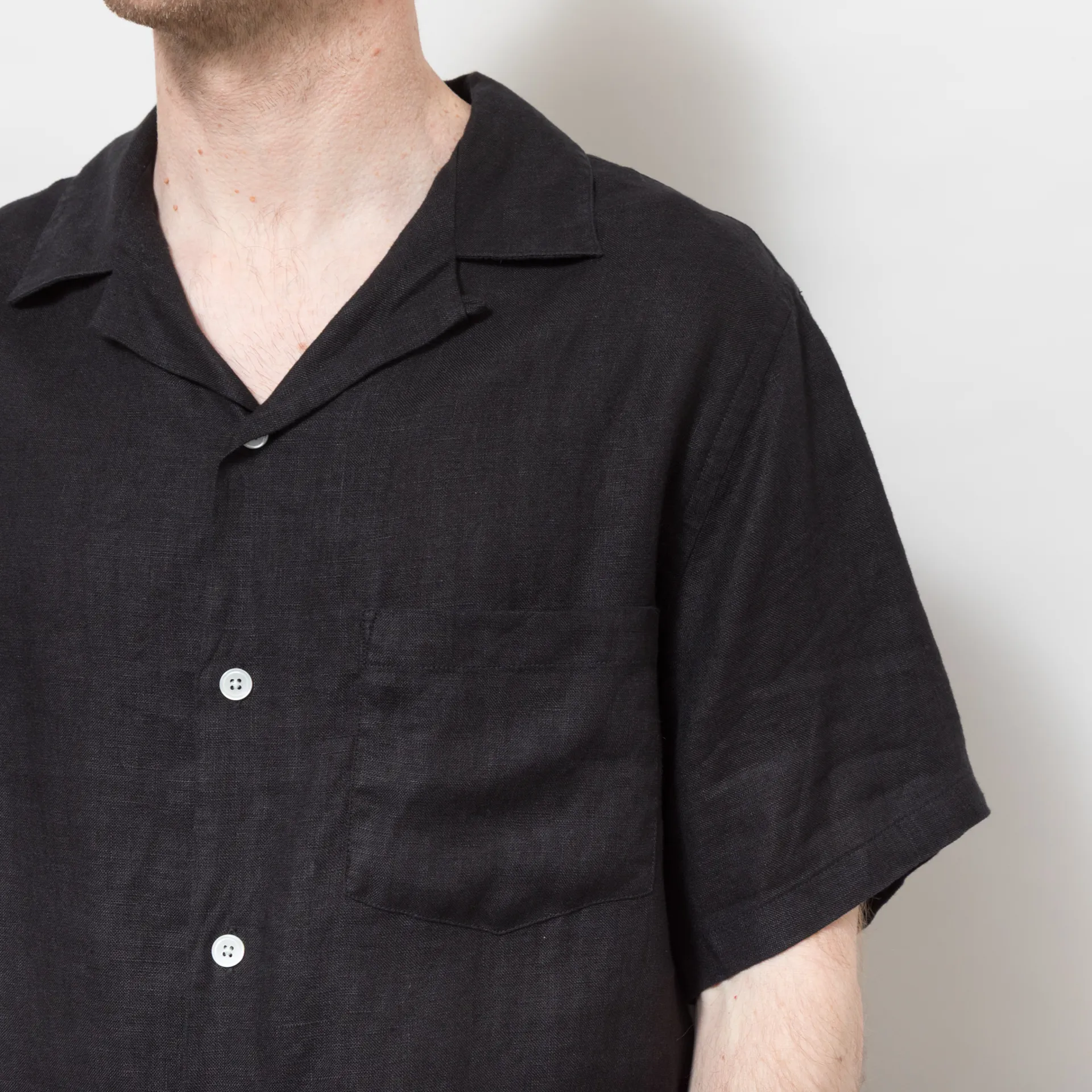 Portuguese Flannel Linen Camp Collar Shirt Black