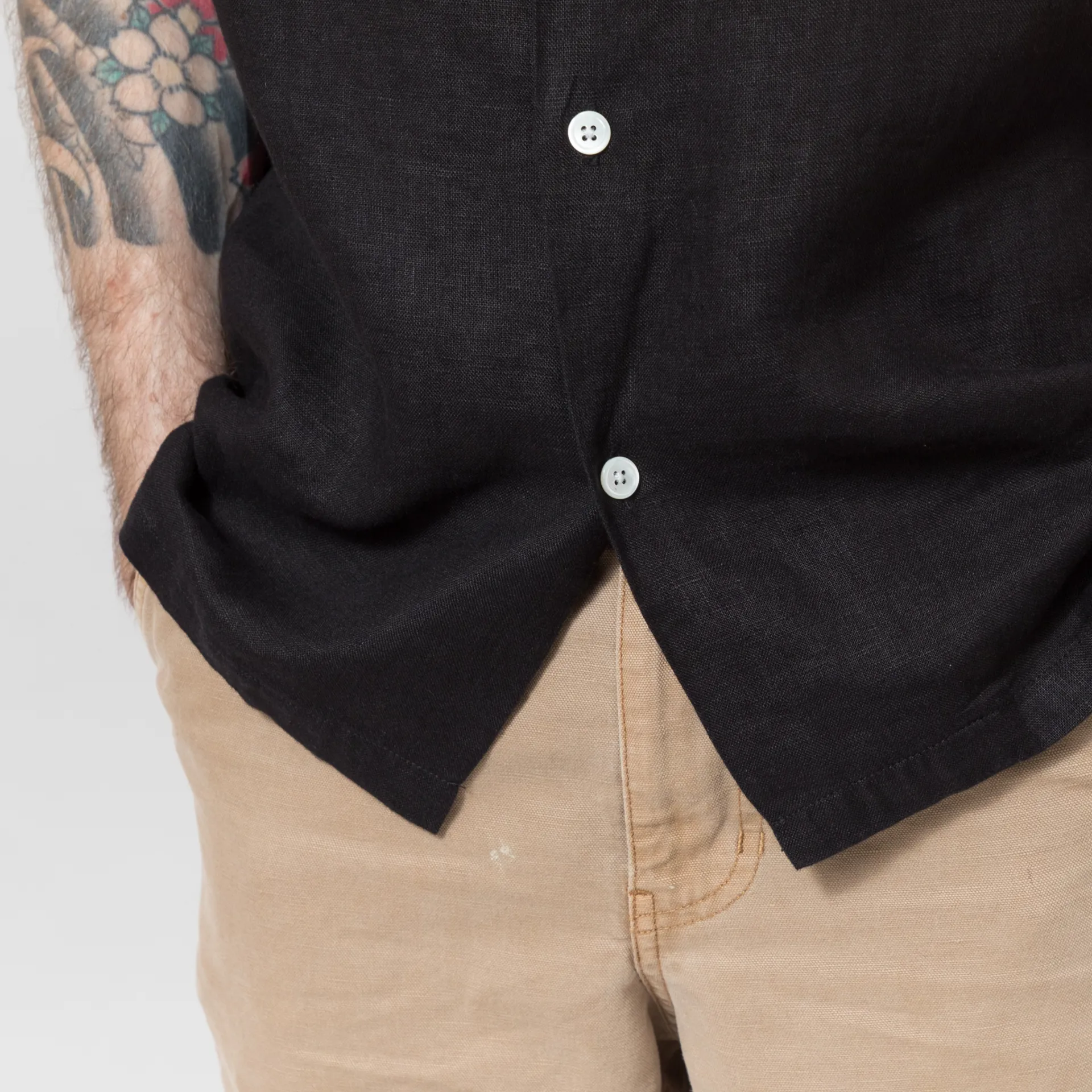 The Linen Camp Collar Shirt from Portuguese Flannel has been cut in a regular fit for everyday comfort, constructed from lightweight 100% linen. It features mother-of-pearl buttons up the front, leading to a classic camp collar, with a straight hem and a single patch pocket to the chest.