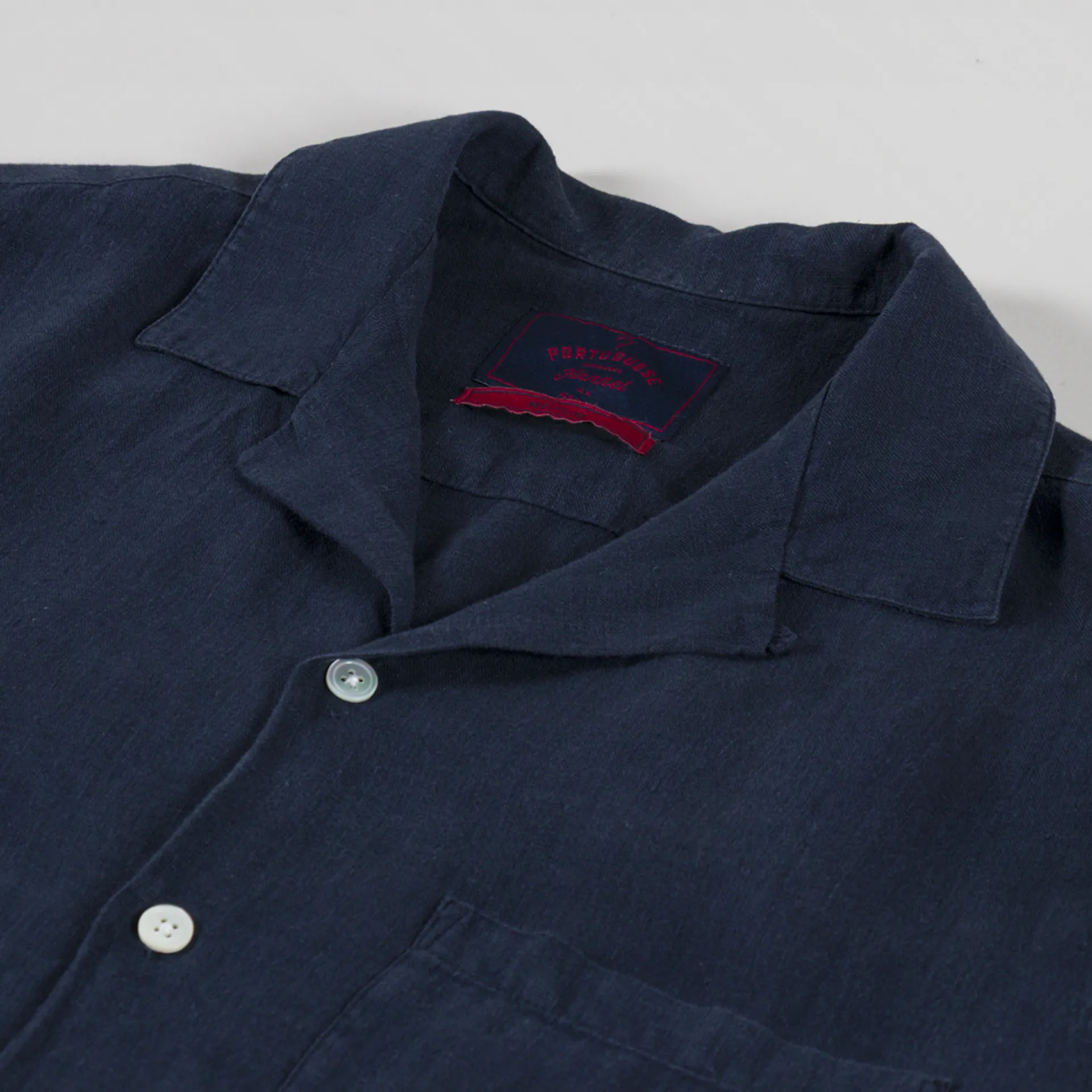 Portuguese Flannel Linen Camp Collar Shirt Navy