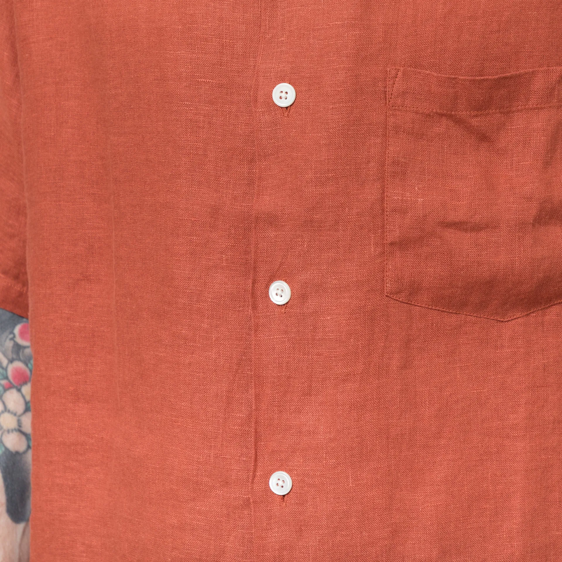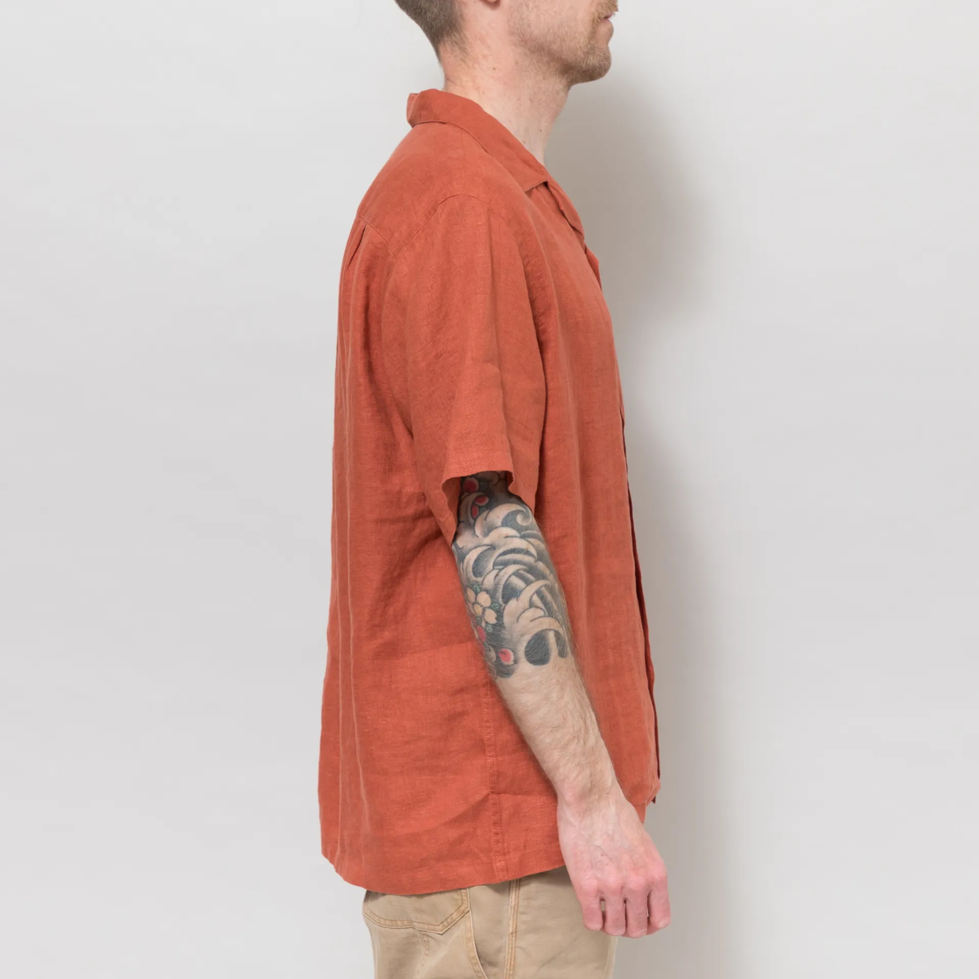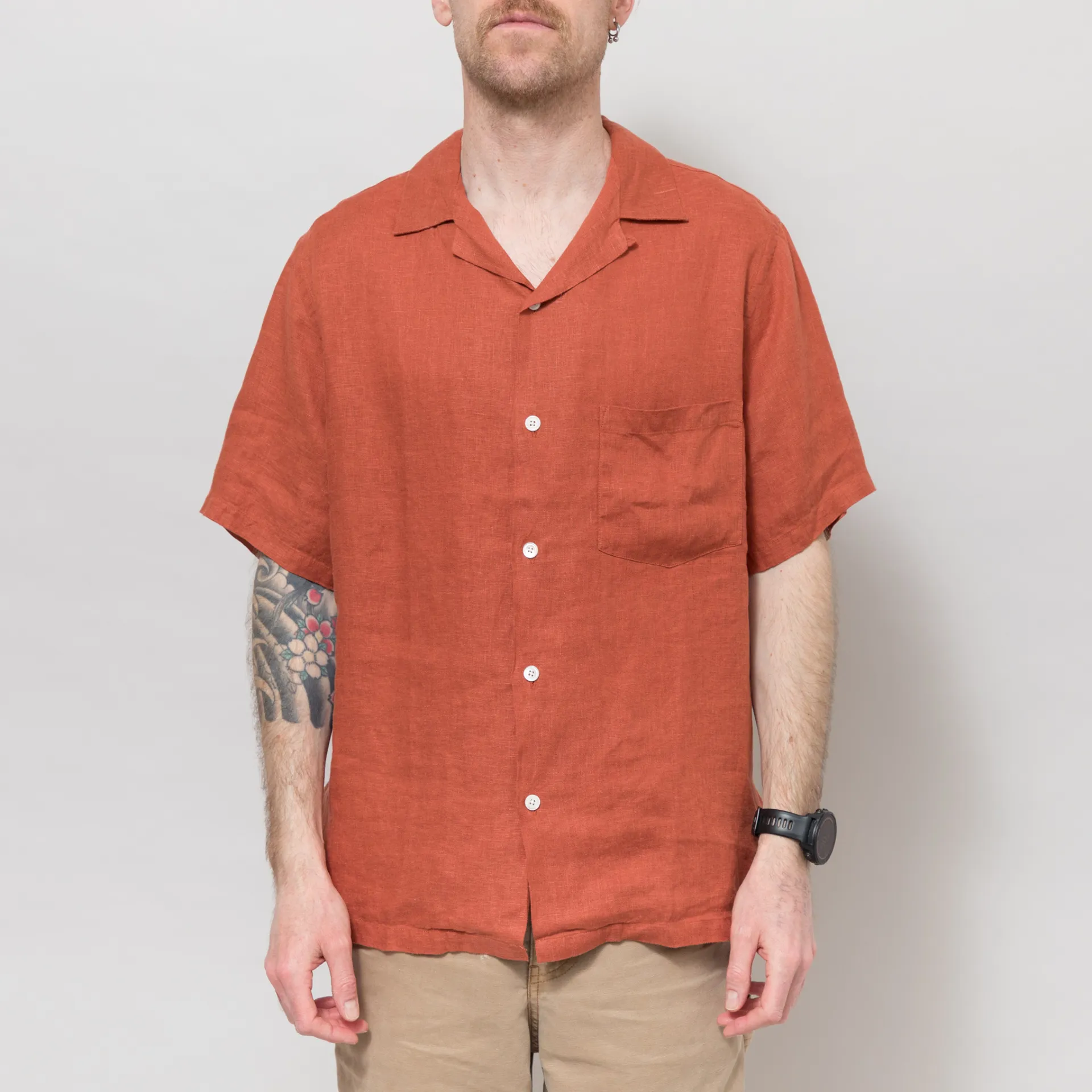 Portuguese Flannel Linen Camp Collar Shirt Terracotta