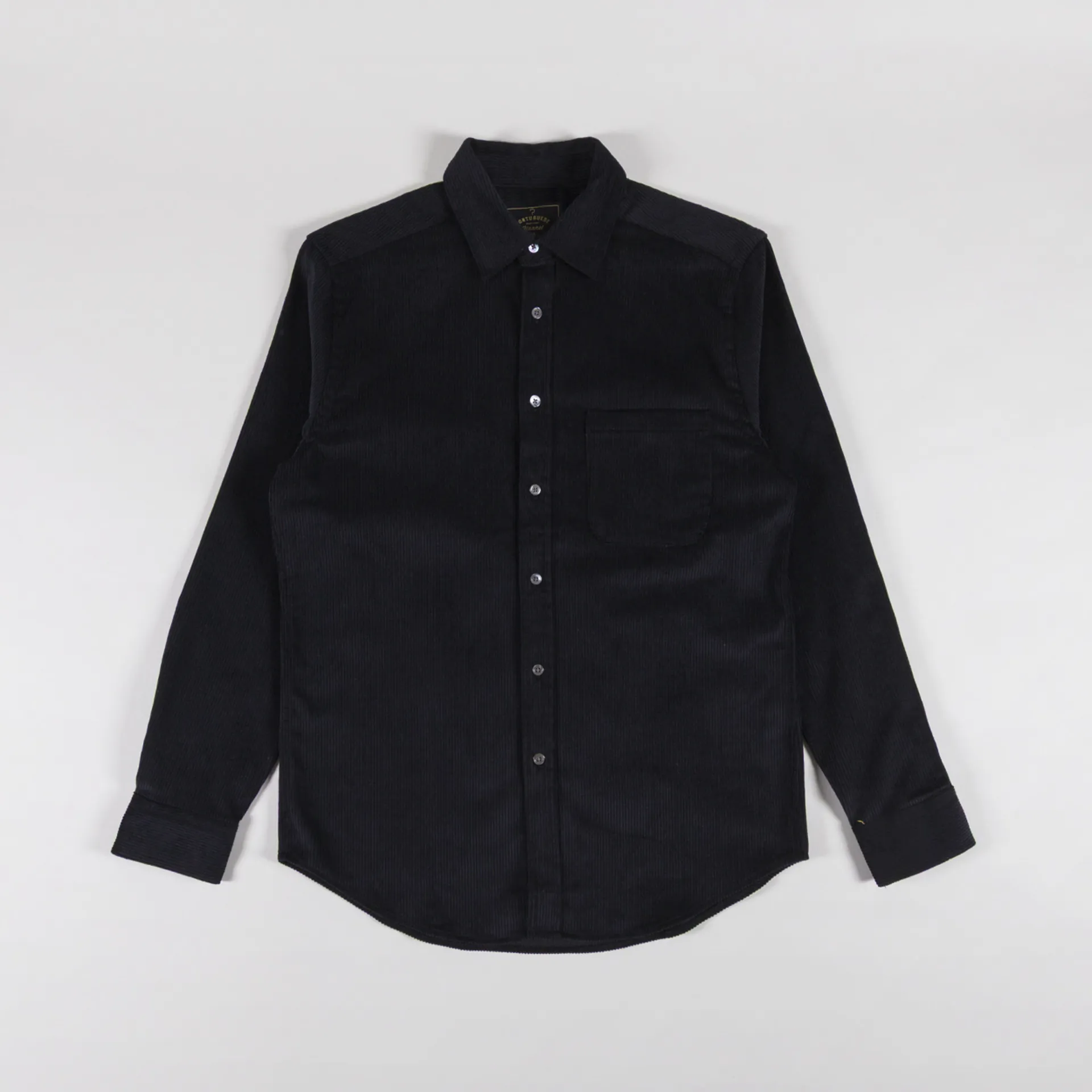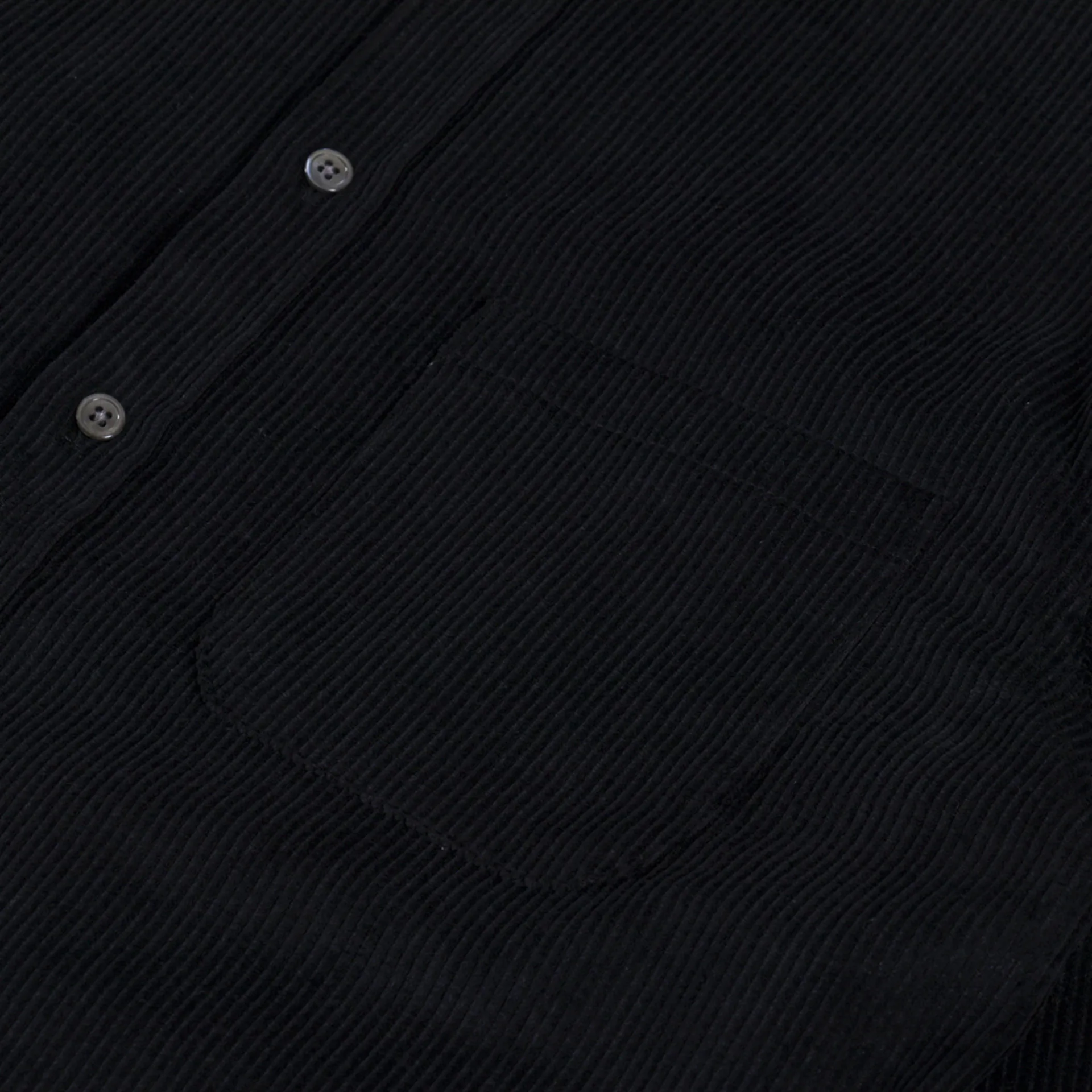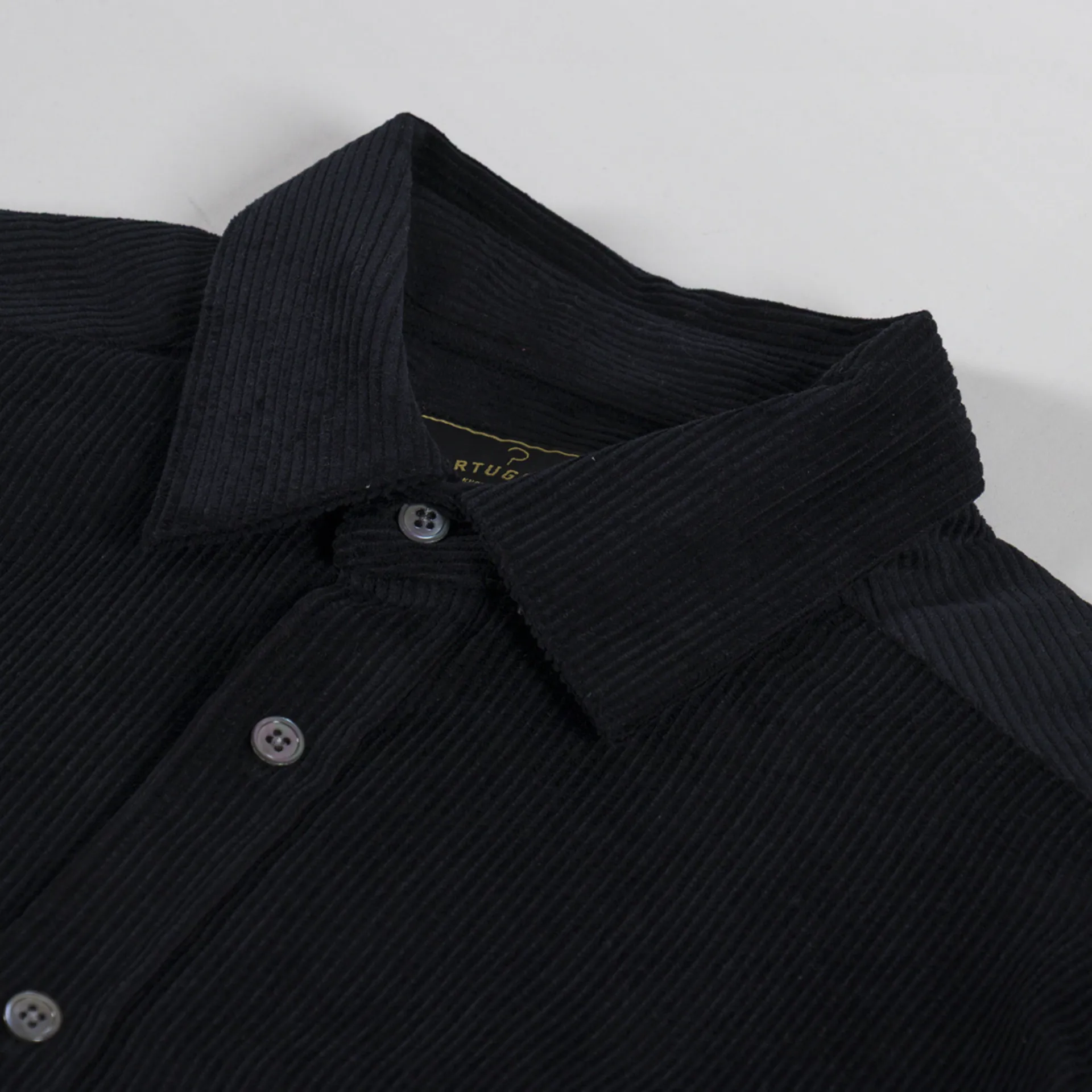 A long sleeve shirt from Portuguese Flannel, constructed from soft cotton corduroy and cut in a regular fit for everyday wear. It features shell of mother-of-pearl buttons through the front, leading up to a button-down collar, with a curved hem and buttoned cuffs. Finished off with a single patch pocket to the chest and a back box pleat for added structure.