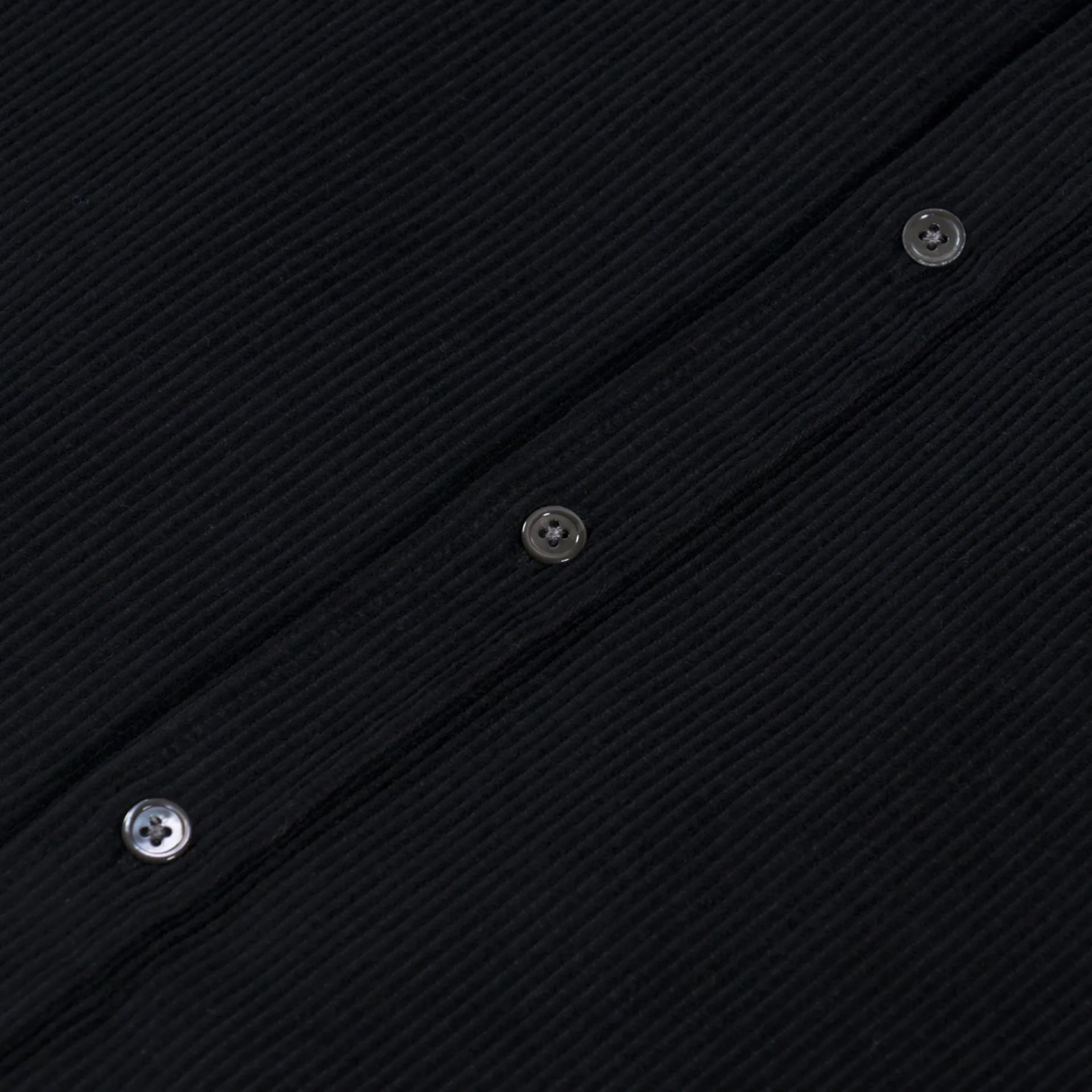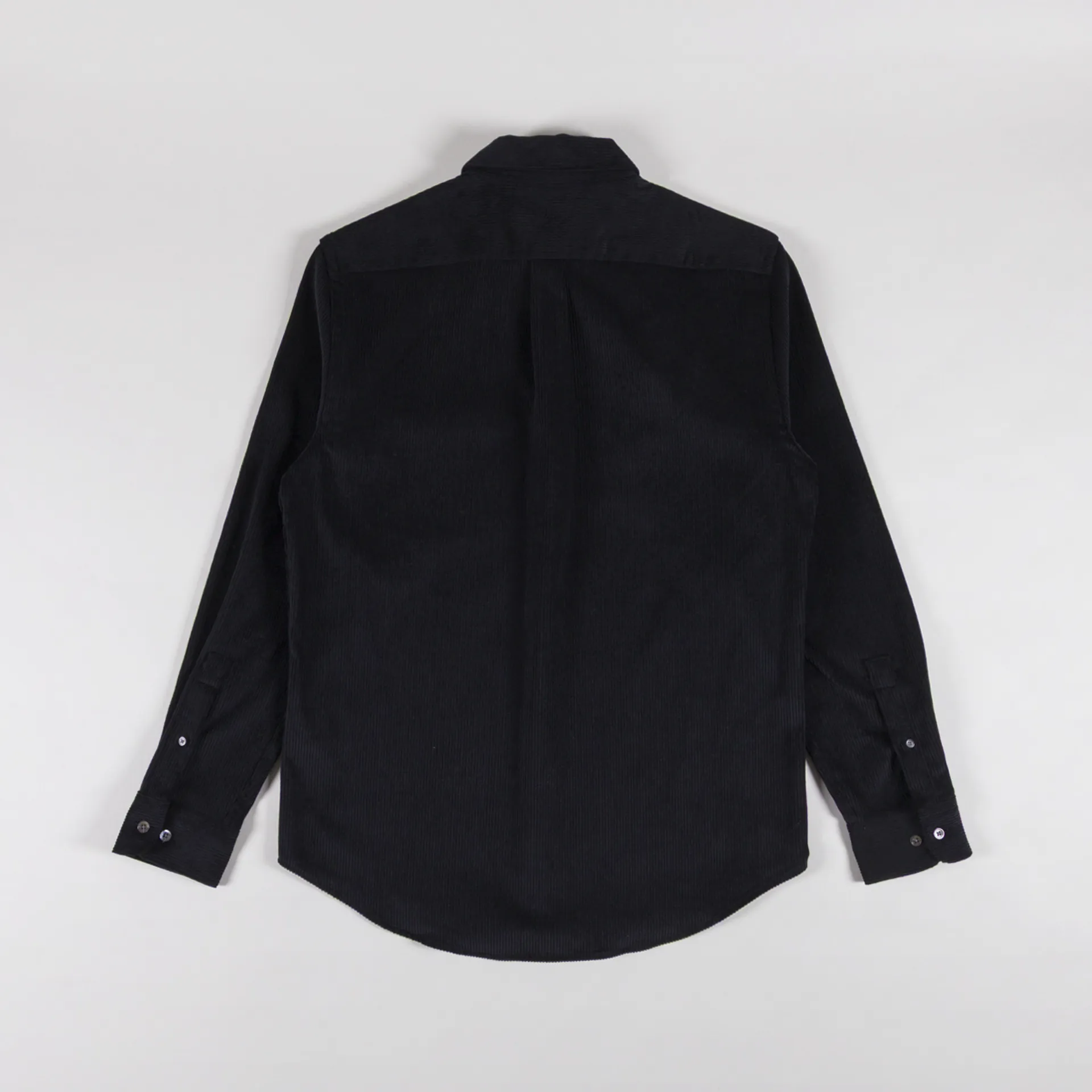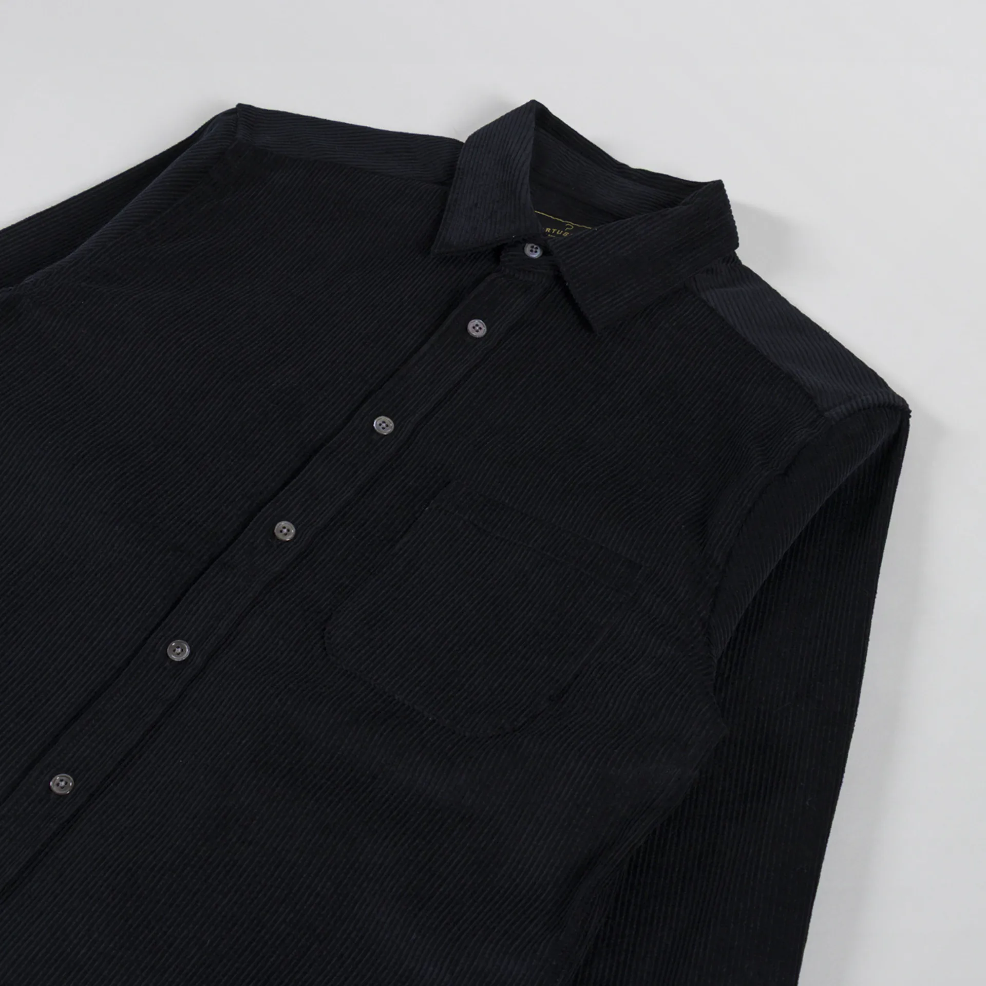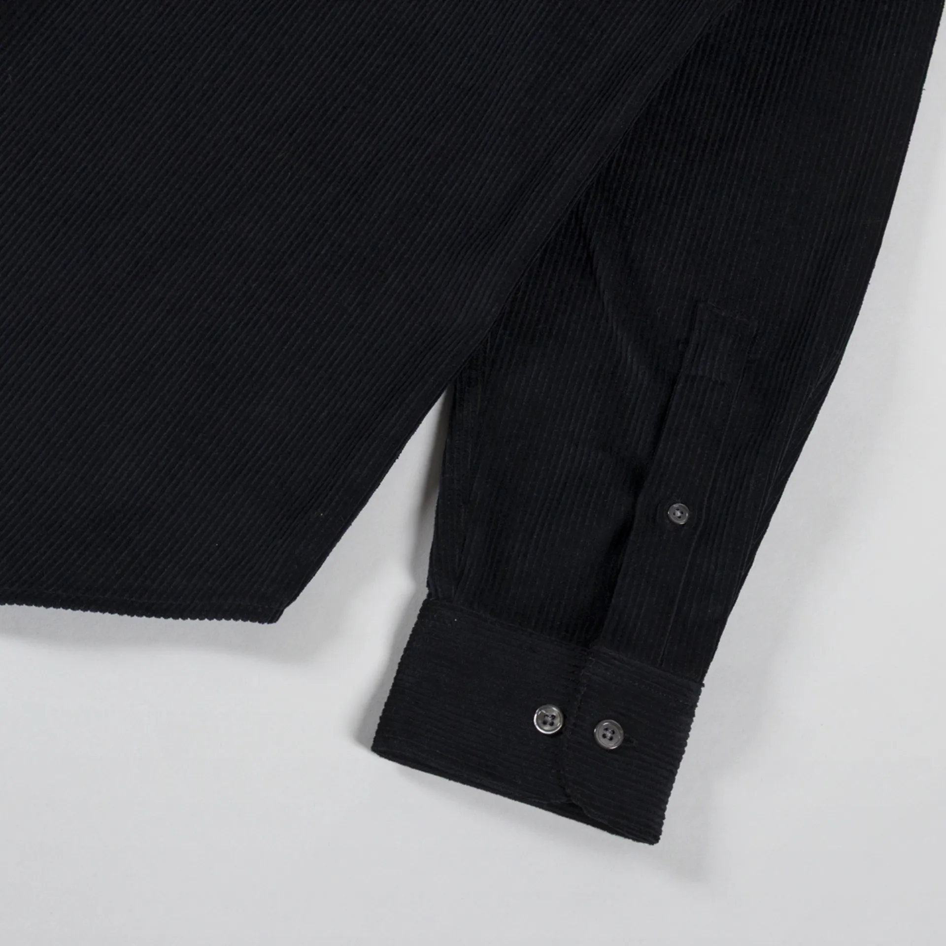 A long sleeve shirt from Portuguese Flannel, constructed from soft cotton corduroy and cut in a regular fit for everyday wear. It features shell of mother-of-pearl buttons through the front, leading up to a button-down collar, with a curved hem and buttoned cuffs. Finished off with a single patch pocket to the chest and a back box pleat for added structure.
