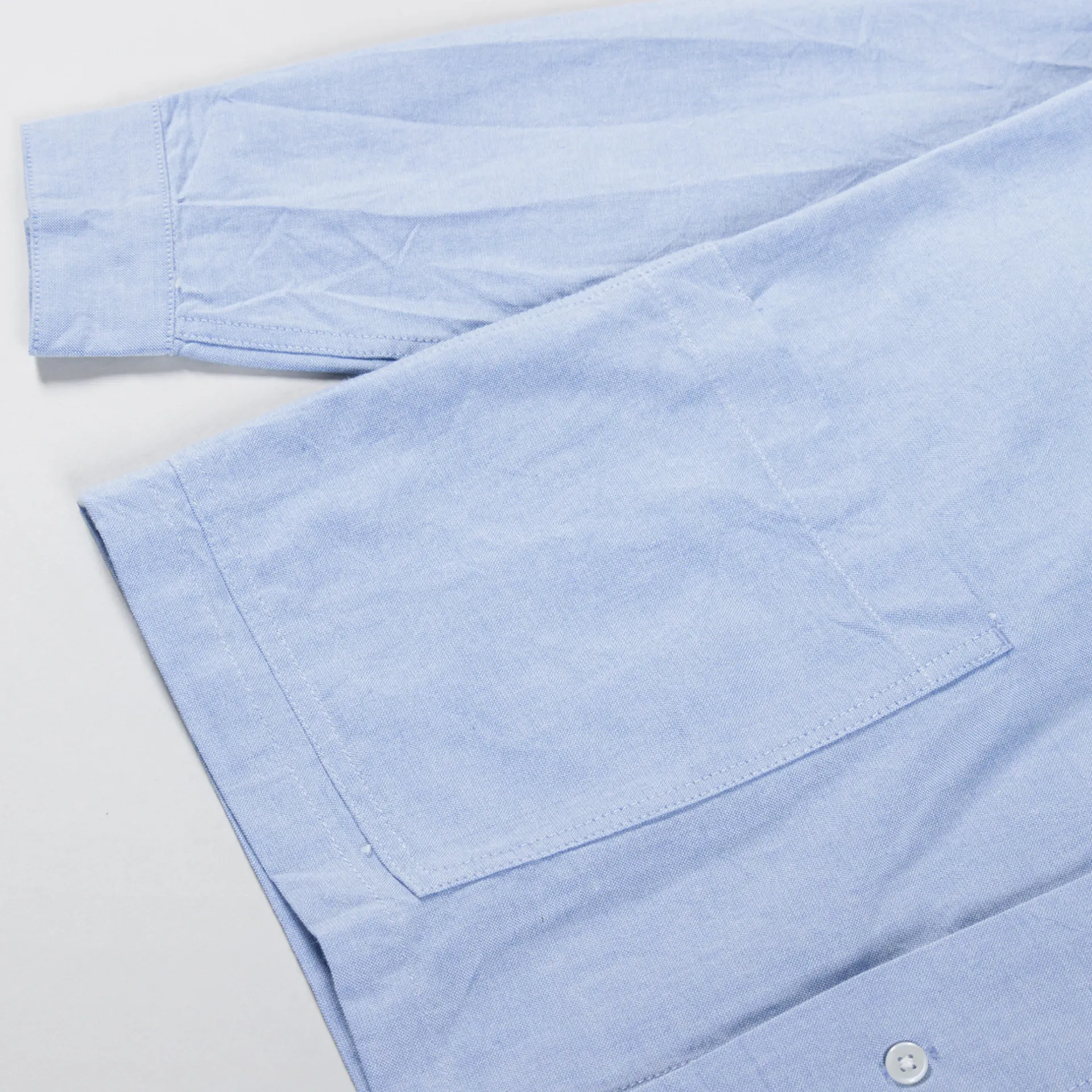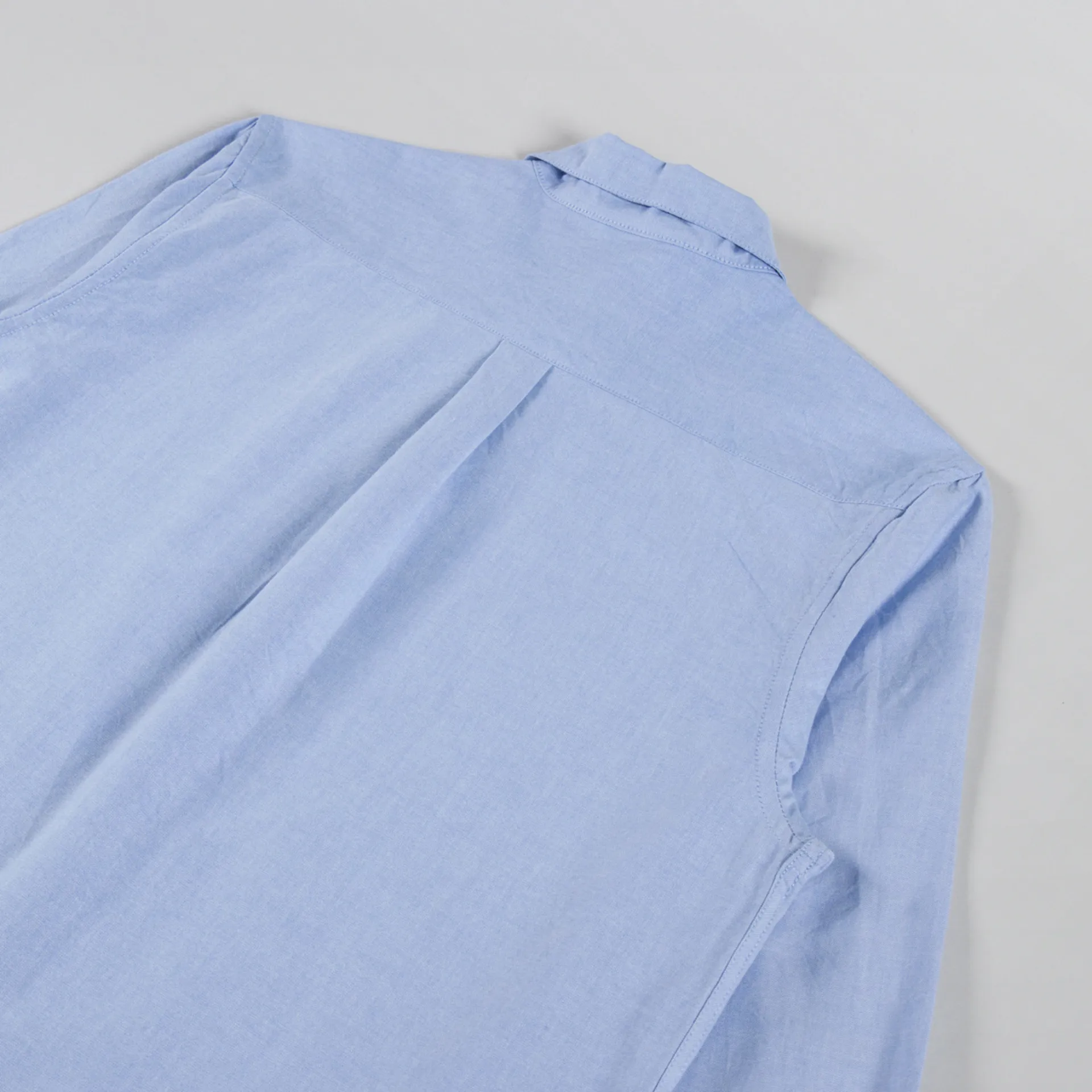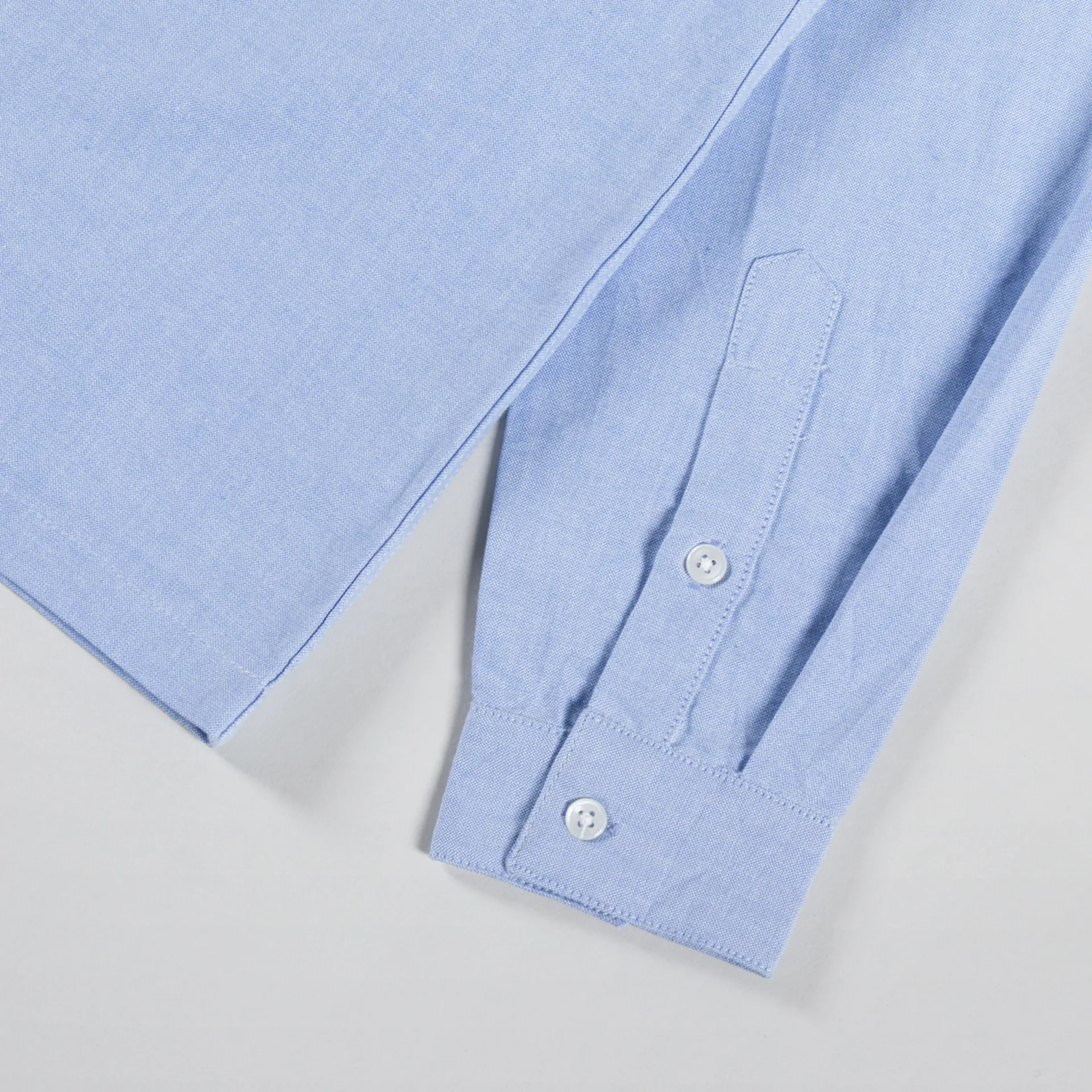 A long sleeve waiters shirt from Service Works, cut in a regular fit for everyday wear and constructed from 165gsm GOTS-certified organic cotton. It features a wide, buttoned placket, leading to a classic flat collar, with a straight hem and buttoned cuffs. The design is complete with two seam-mounted pockets, a back box pleat for structure and a Service Works flag label at the side seam.