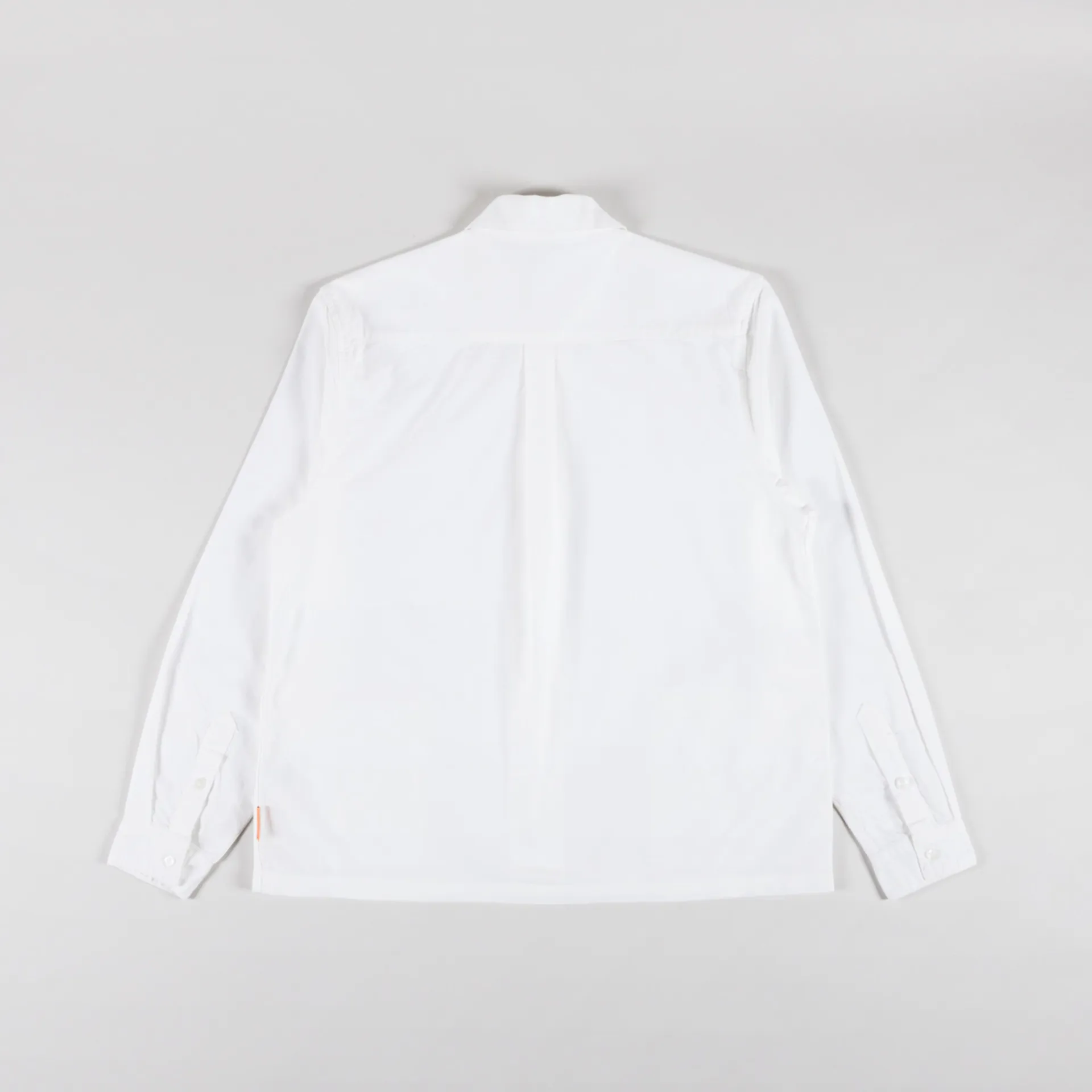 A long sleeve waiters shirt from Service Works, cut in a regular fit for everyday wear and constructed from 165gsm GOTS-certified organic cotton. It features a wide, buttoned placket, leading to a classic flat collar, with a straight hem and buttoned cuffs. The design is complete with two seam-mounted pockets, a back box pleat for structure and a Service Works flag label at the side seam.
