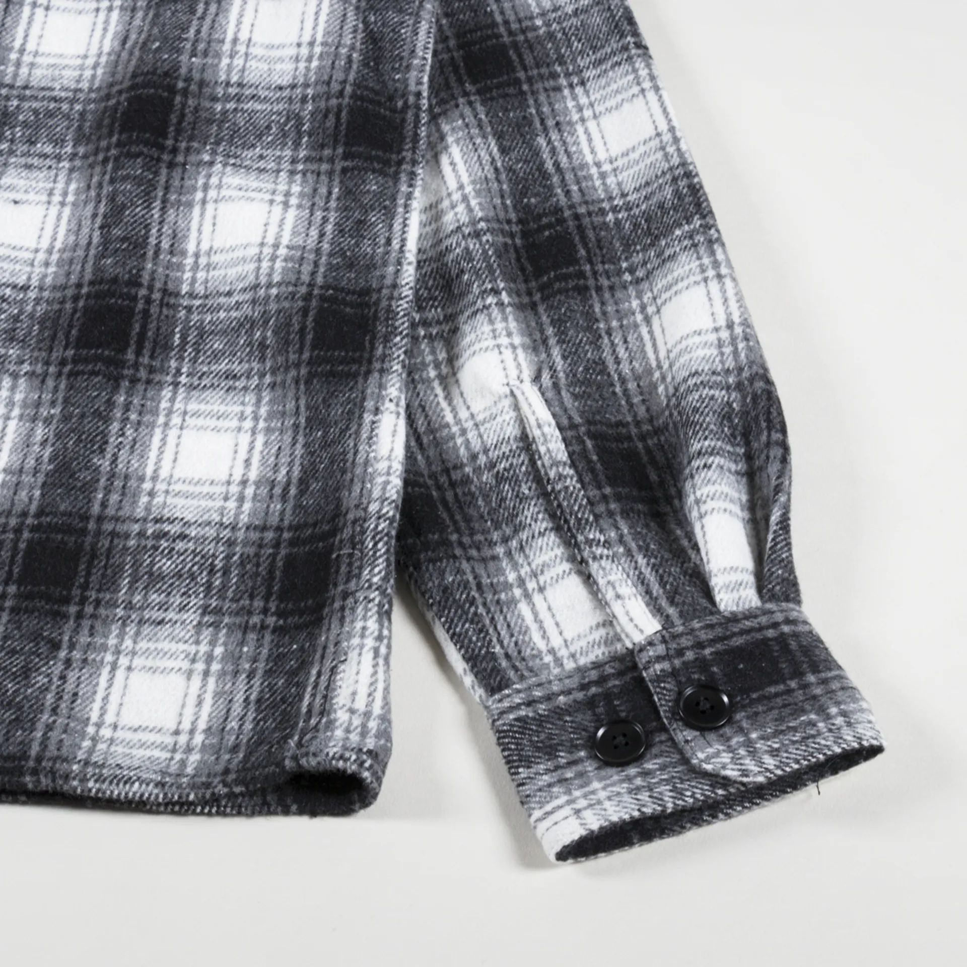 A long sleeve shirt from Canadian label Taikan, made from a comfortable flannel of 100% polyester with a woven inner and a brushed outer. It has a buttoned front and cuffs, patch pockets to the chest, the left featuring a woven flag label.