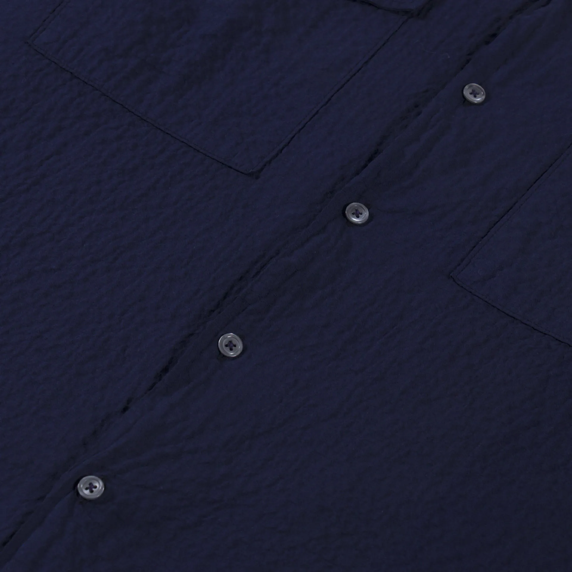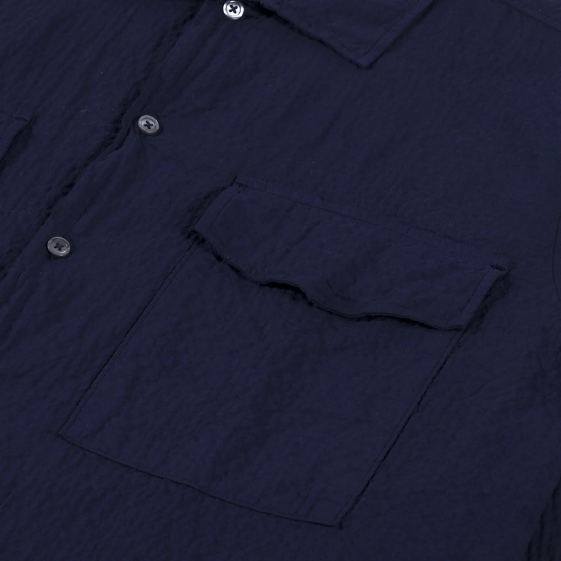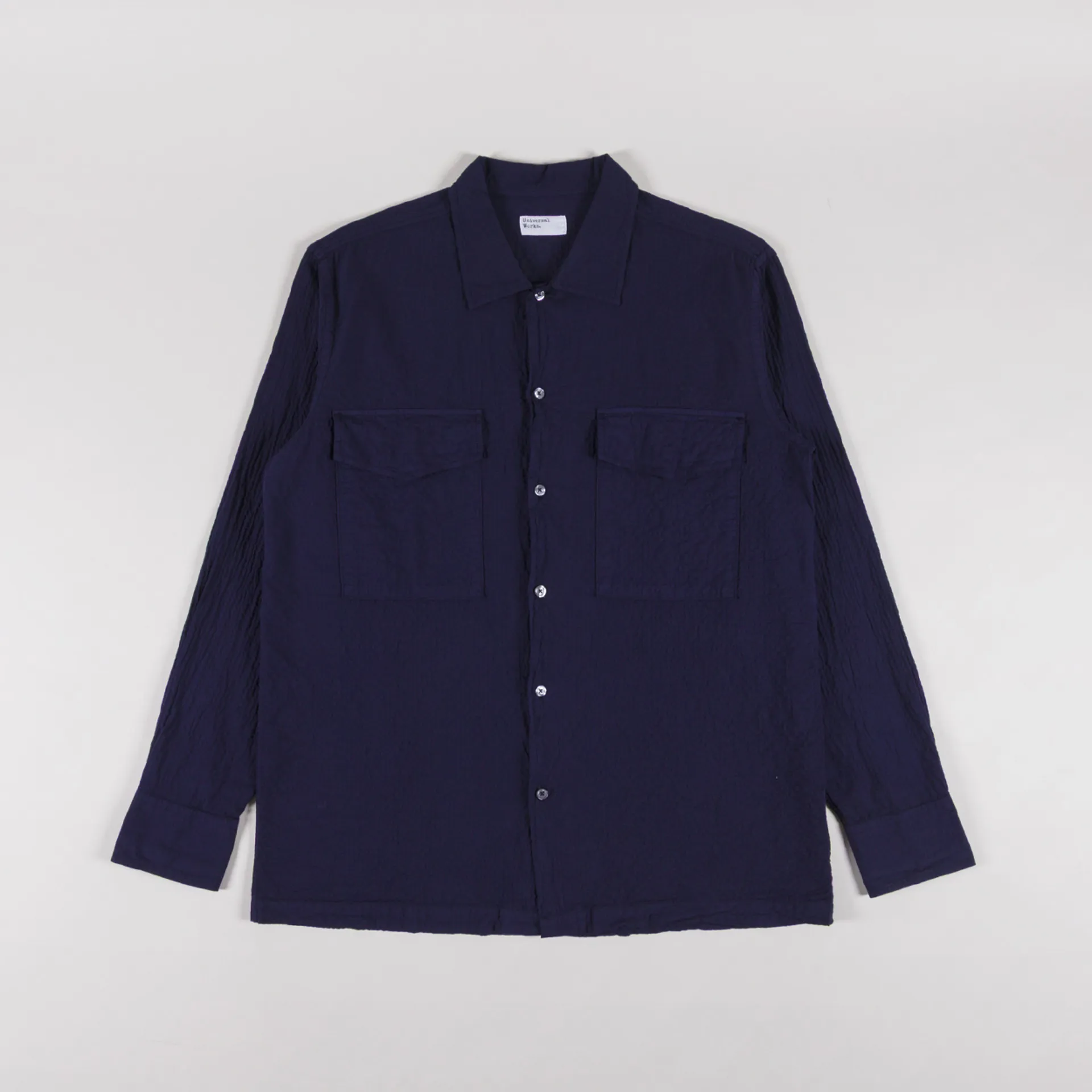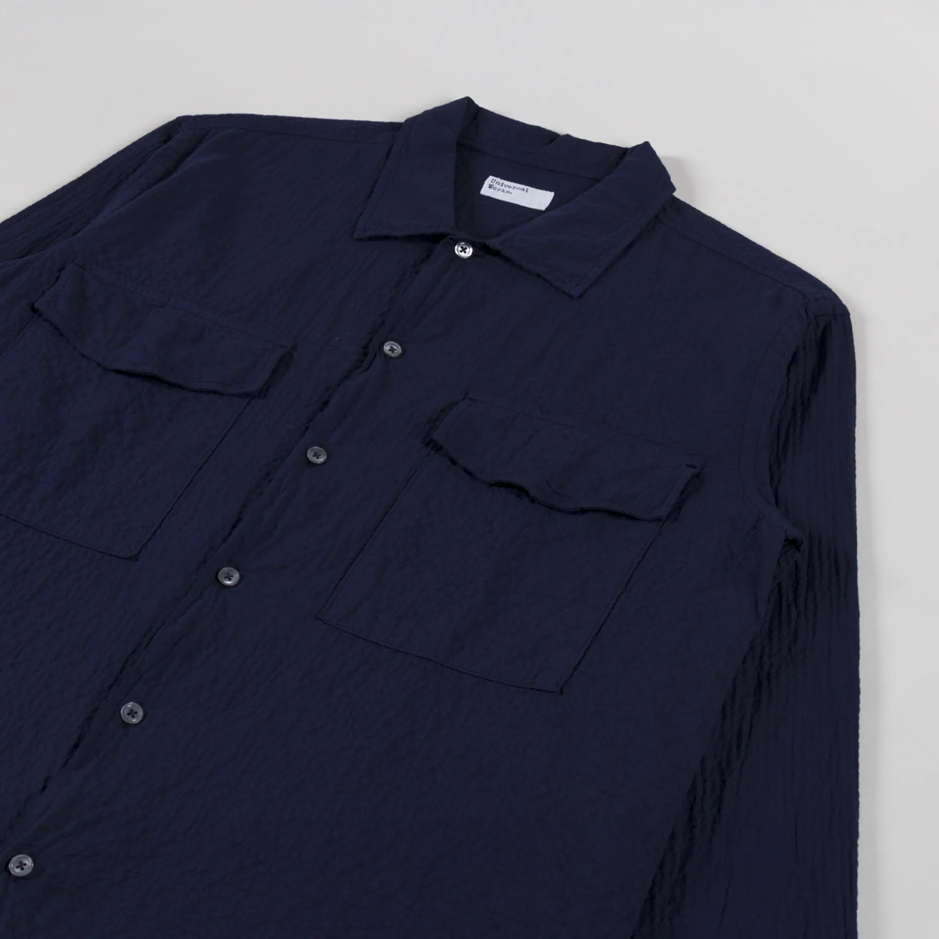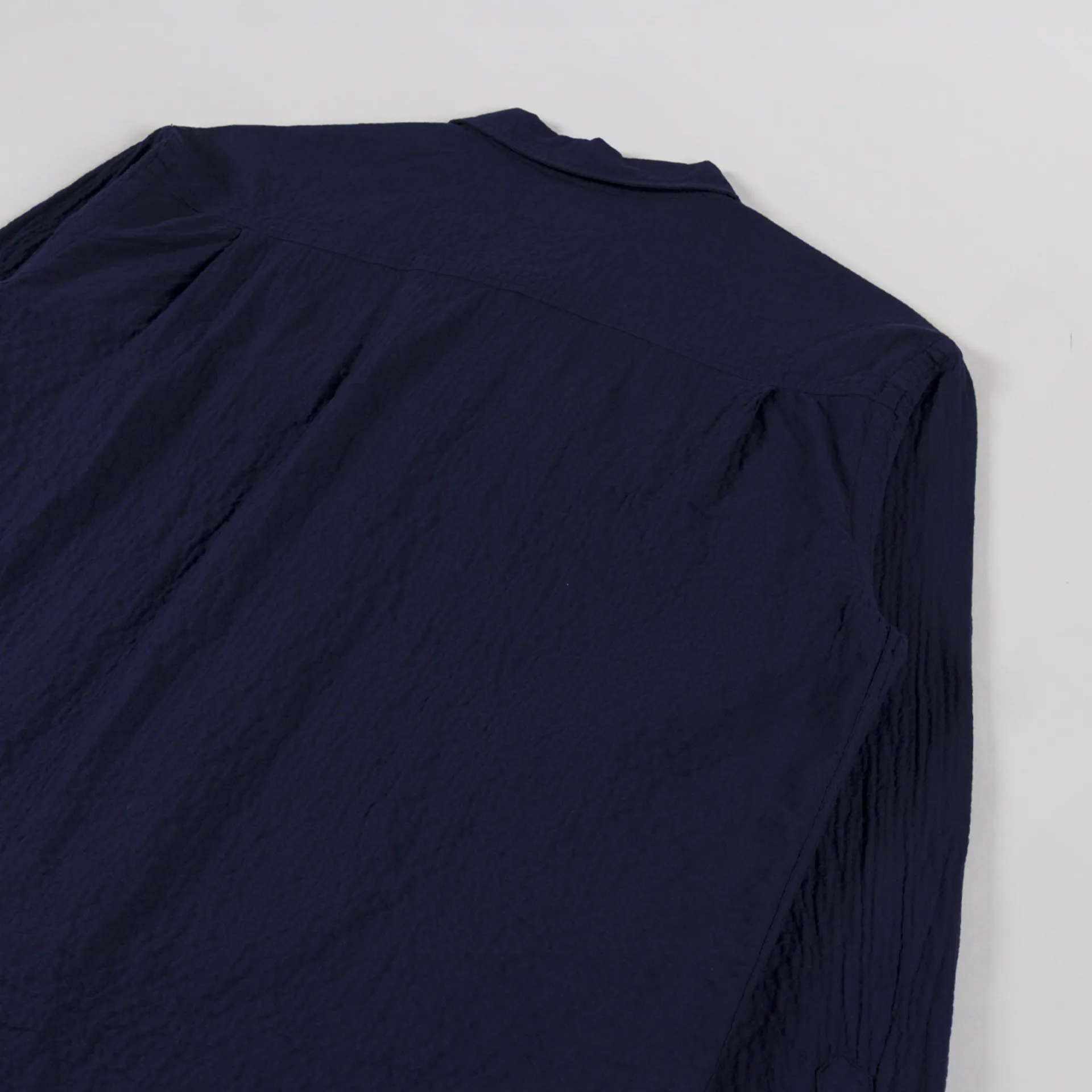 Universal Works Attendant Shirt Navy Arten Seersucker