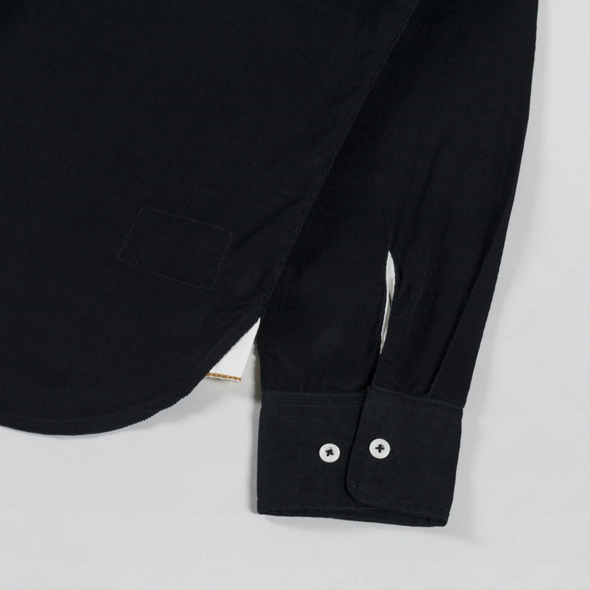A long sleeve shirt from Universal Works, cut in a regular fit for everyday wear and constructed from Organic Fine Cord, a soft handle, 21 wale cord with a finer feel. It features a button-through front, leading to a classic collar, with a curved hem, back box pleat for added structure and buttoned cuffs. Finished off with a single angled 'shovel' chest pocket.