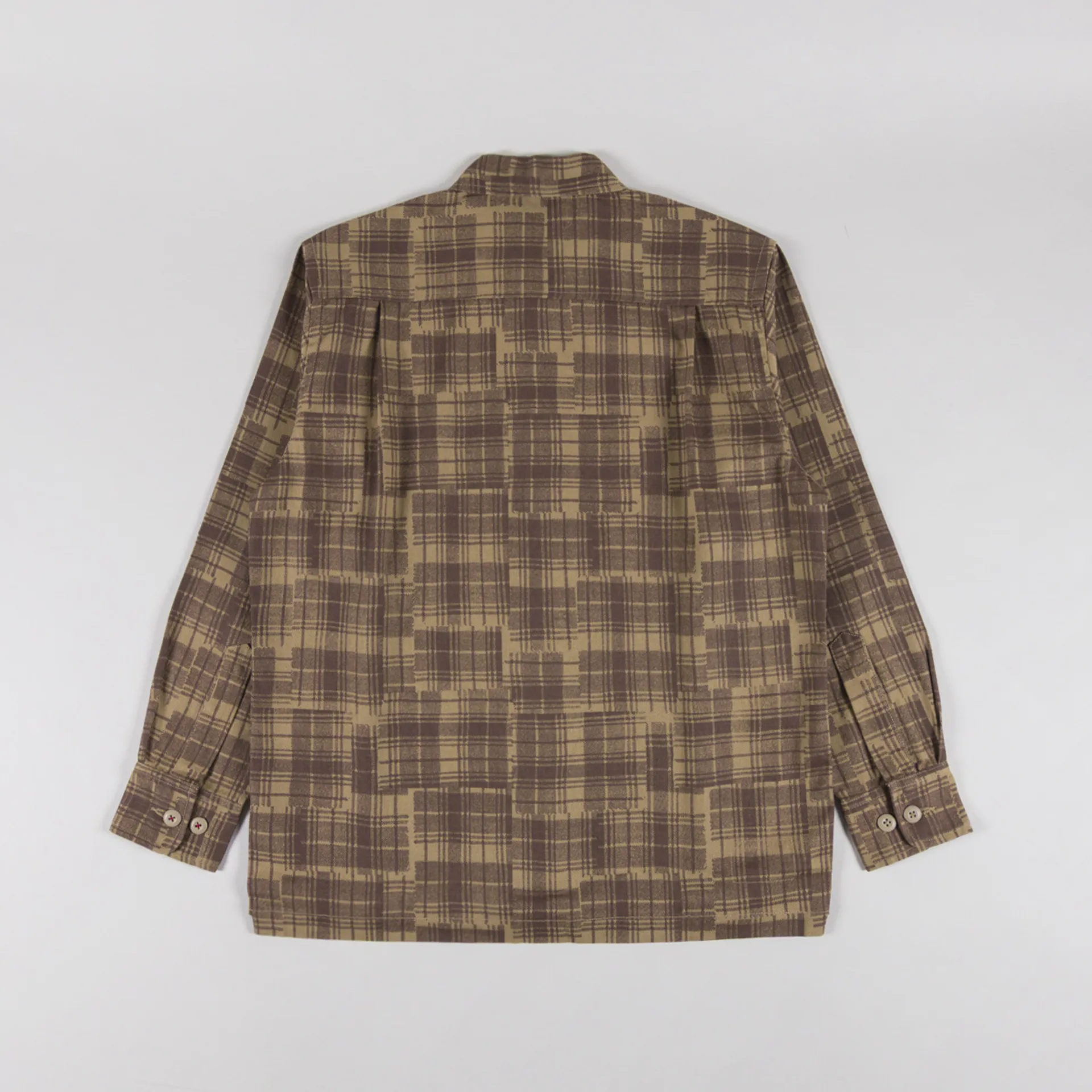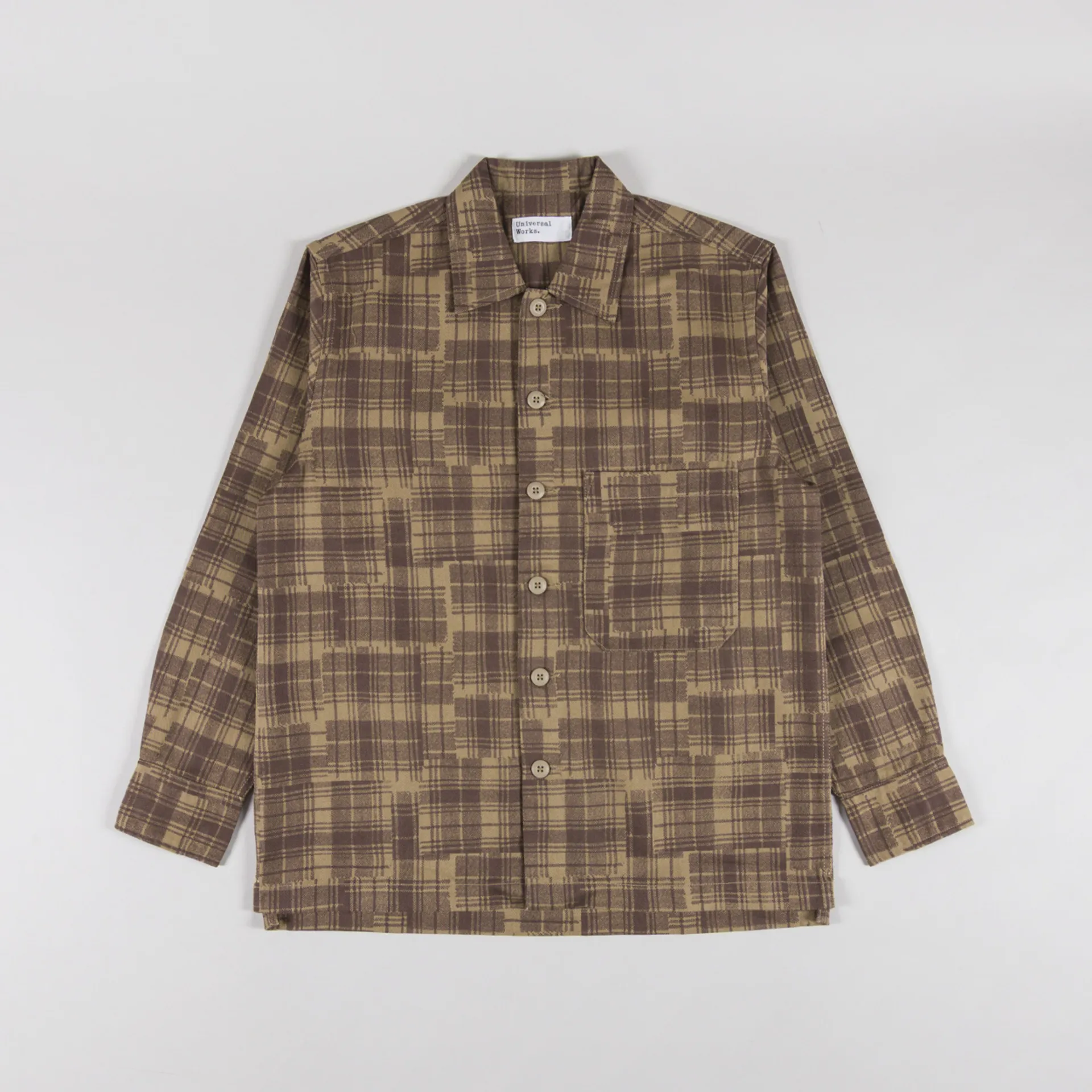 A shirt from Universal Works, cut in a loose fit for a laidback silhouette and constructed from Patch Check Twill, a durable cotton with an in-house designed patchwork throughout. It features a button-through front, leading to a classic collar, with a straight hem, buttoned cuffs and finished with a single pocket to the chest.