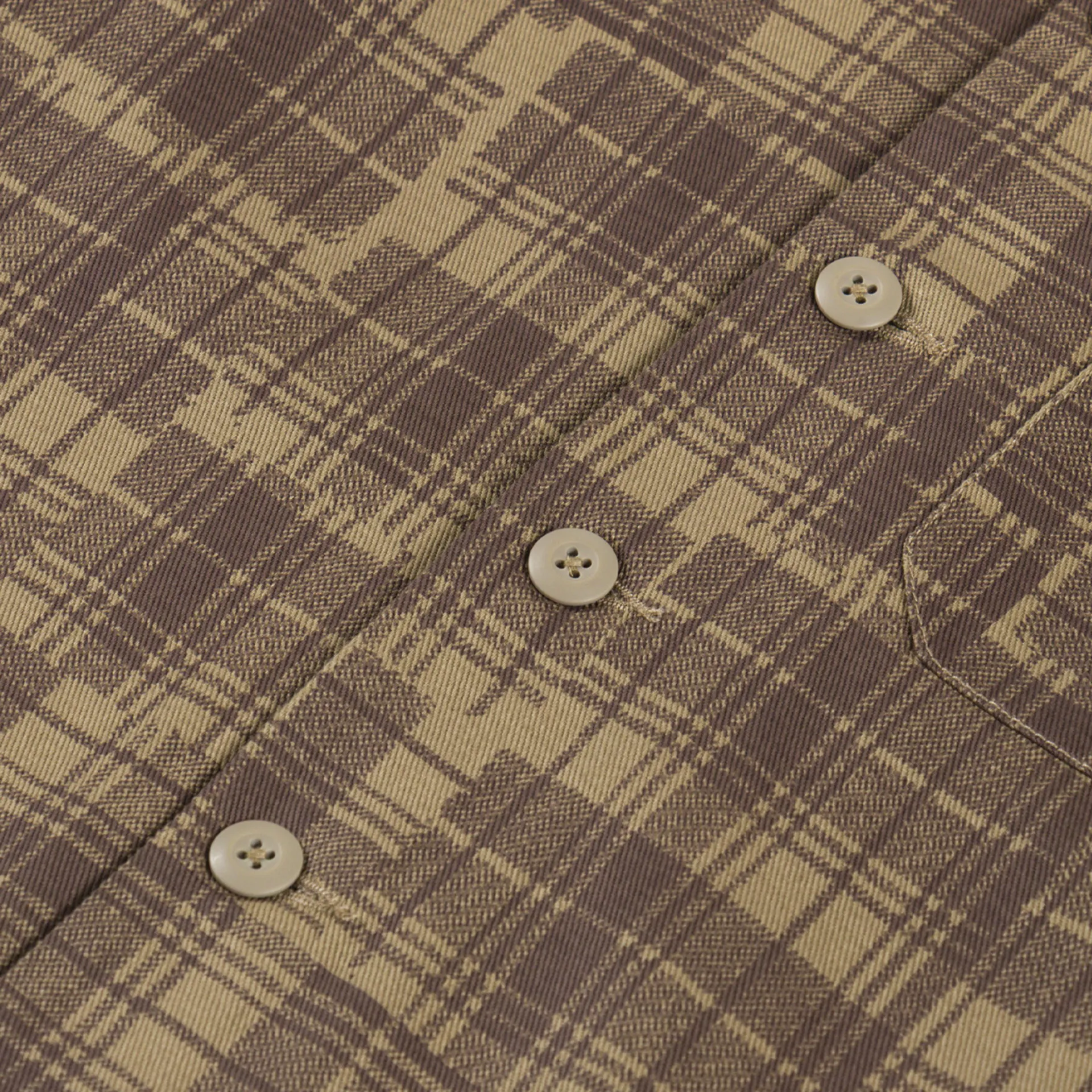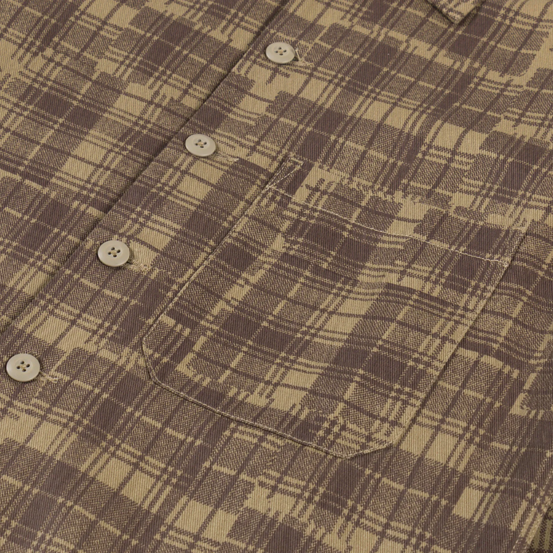 Universal Works Fatigue Shirt Khaki Patch Check Twill