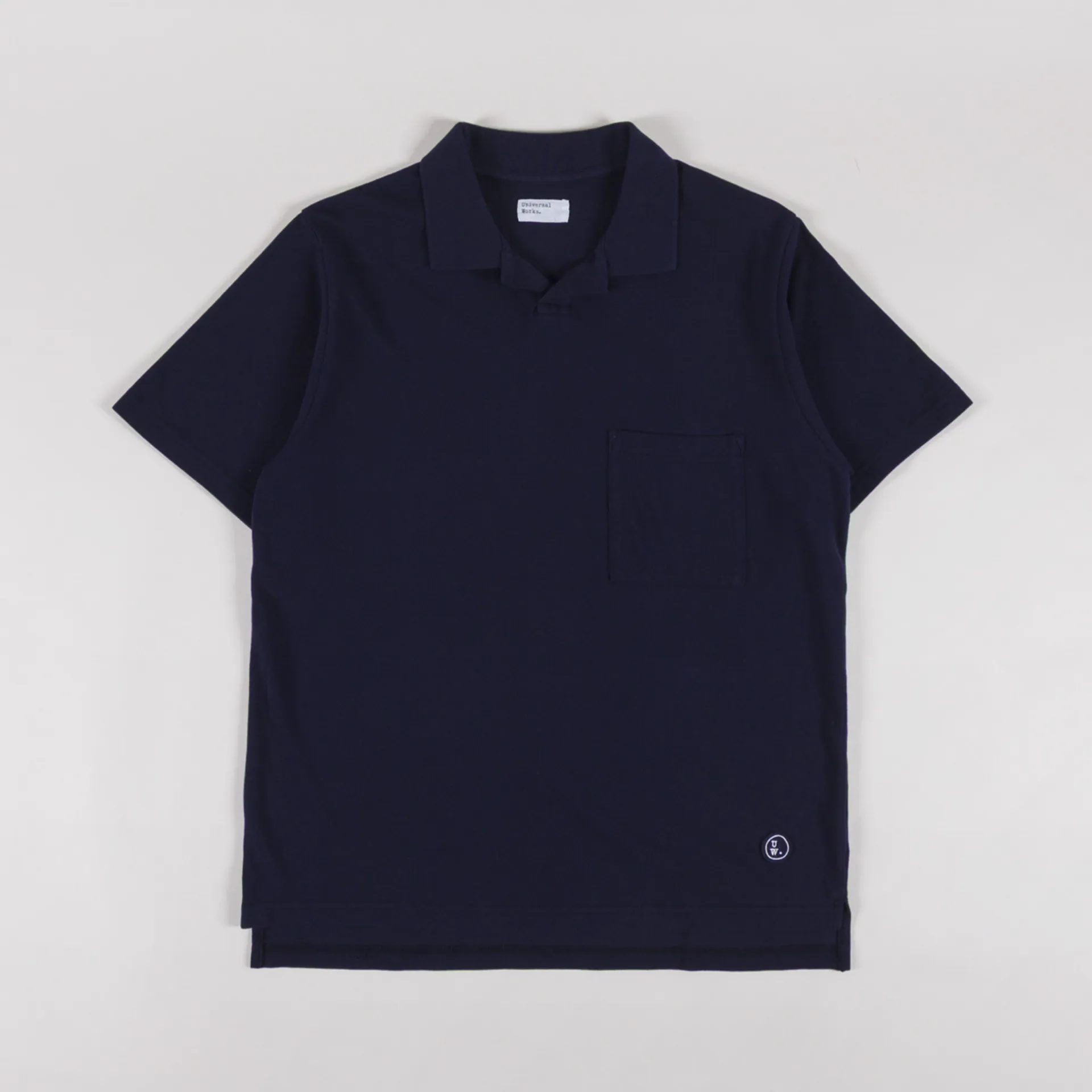 A polo shirt from Universal Works, cut in a regular fit for everyday wear and constructed from Piquet, a knitted cotton often found in sports tops due to its small honeycomb-like texture, which reduces skin contact. It features a short placket front, leading to a single-piece collar with no fastening, designed to be worn with an open neck for a casual feel. Finished with a stepped hem, small side vents, a single chest pocket and an embroidered UW patch.