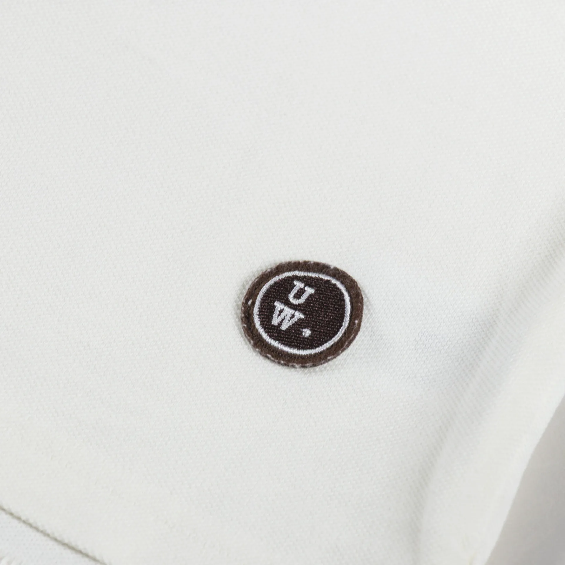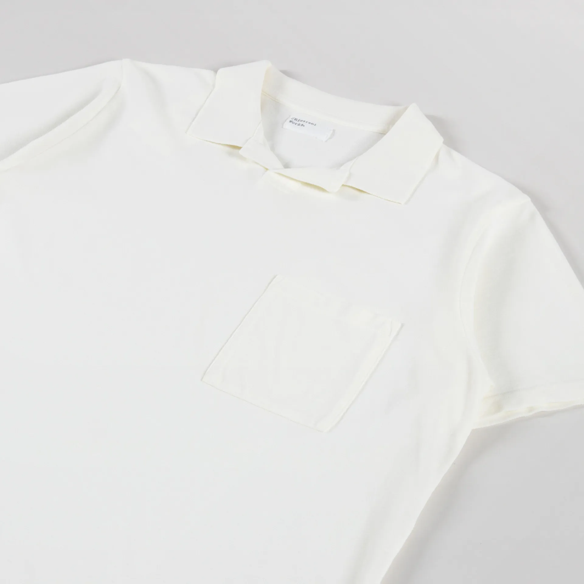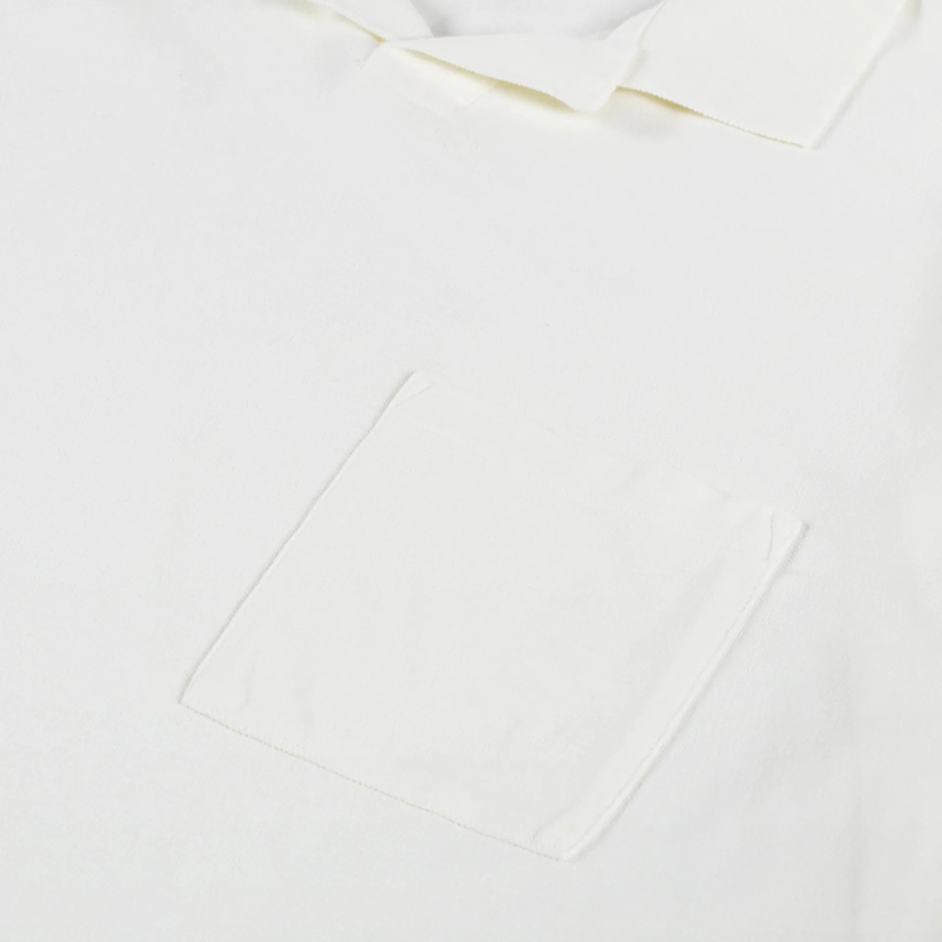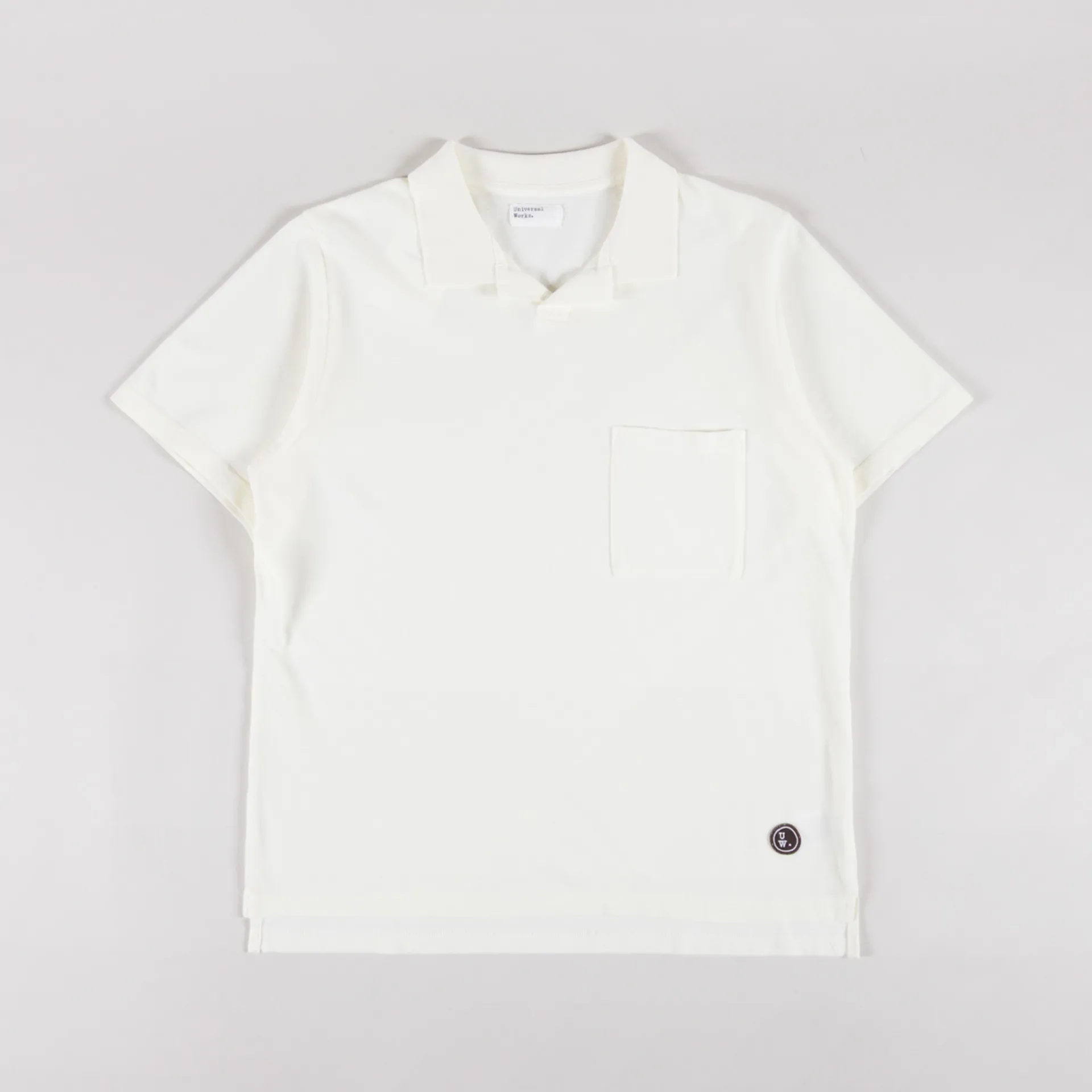 A polo shirt from Universal Works, cut in a regular fit for everyday wear and constructed from Piquet, a knitted cotton often found in sports tops due to its small honeycomb-like texture, which reduces skin contact. It features a short placket front, leading to a single-piece collar with no fastening, designed to be worn with an open neck for a casual feel. Finished with a stepped hem, small side vents, a single chest pocket and an embroidered UW patch.