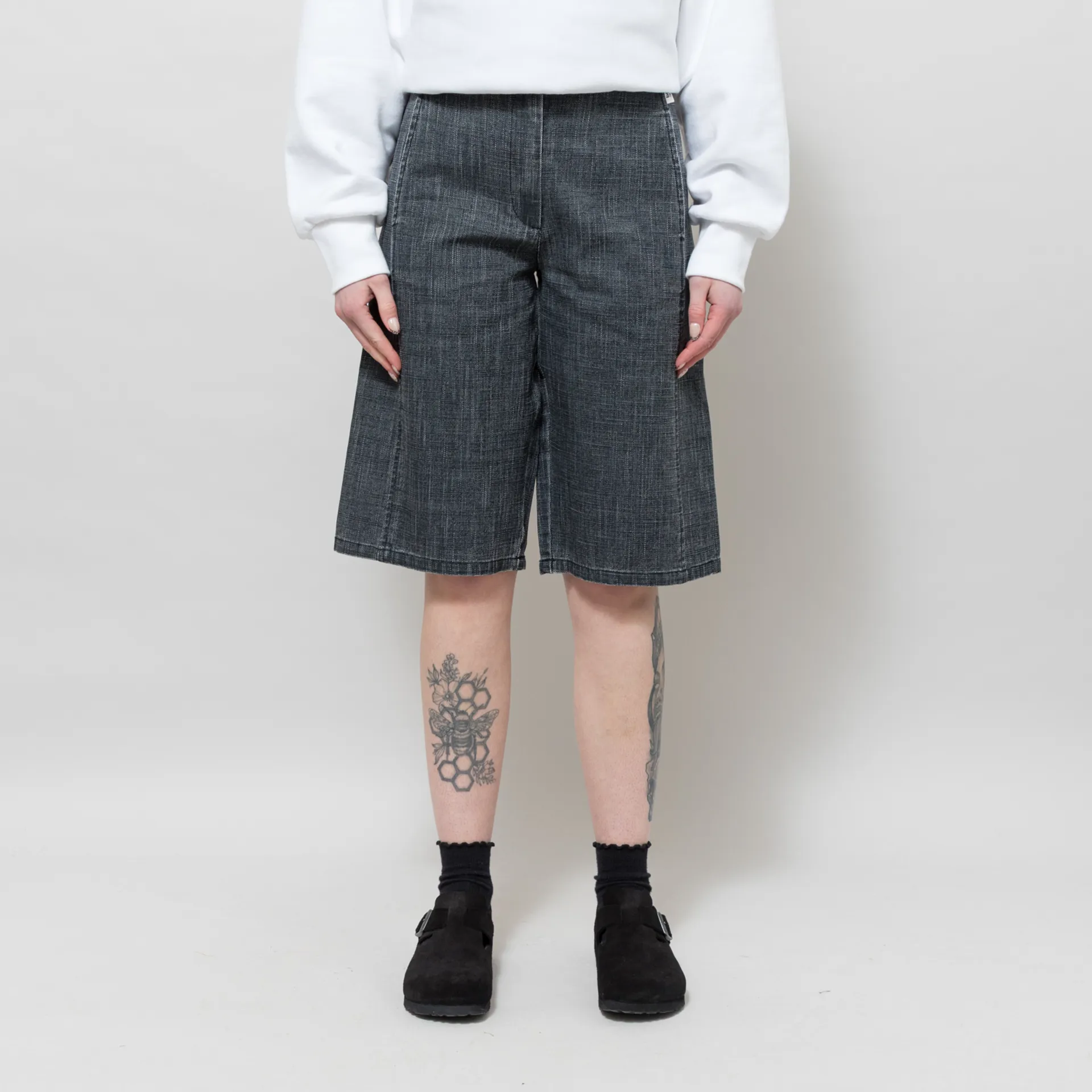 A pair of long shorts from Basic Apparel, cut in a relaxed fit for a casual silhouette and constructed from GOTS-Certified organic cotton. They have a zip and button fly, leading to a classic belt loop waistband, with two pockets at the front and back. Finished with a small woven flag label at the side seam.
