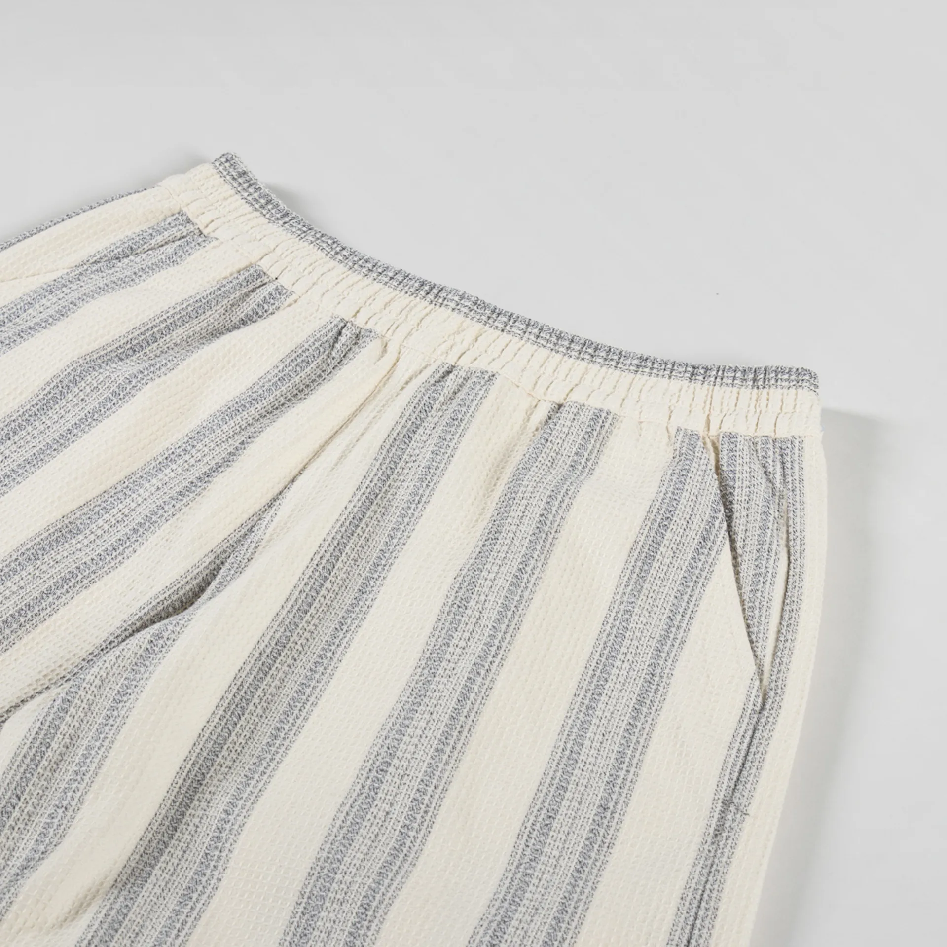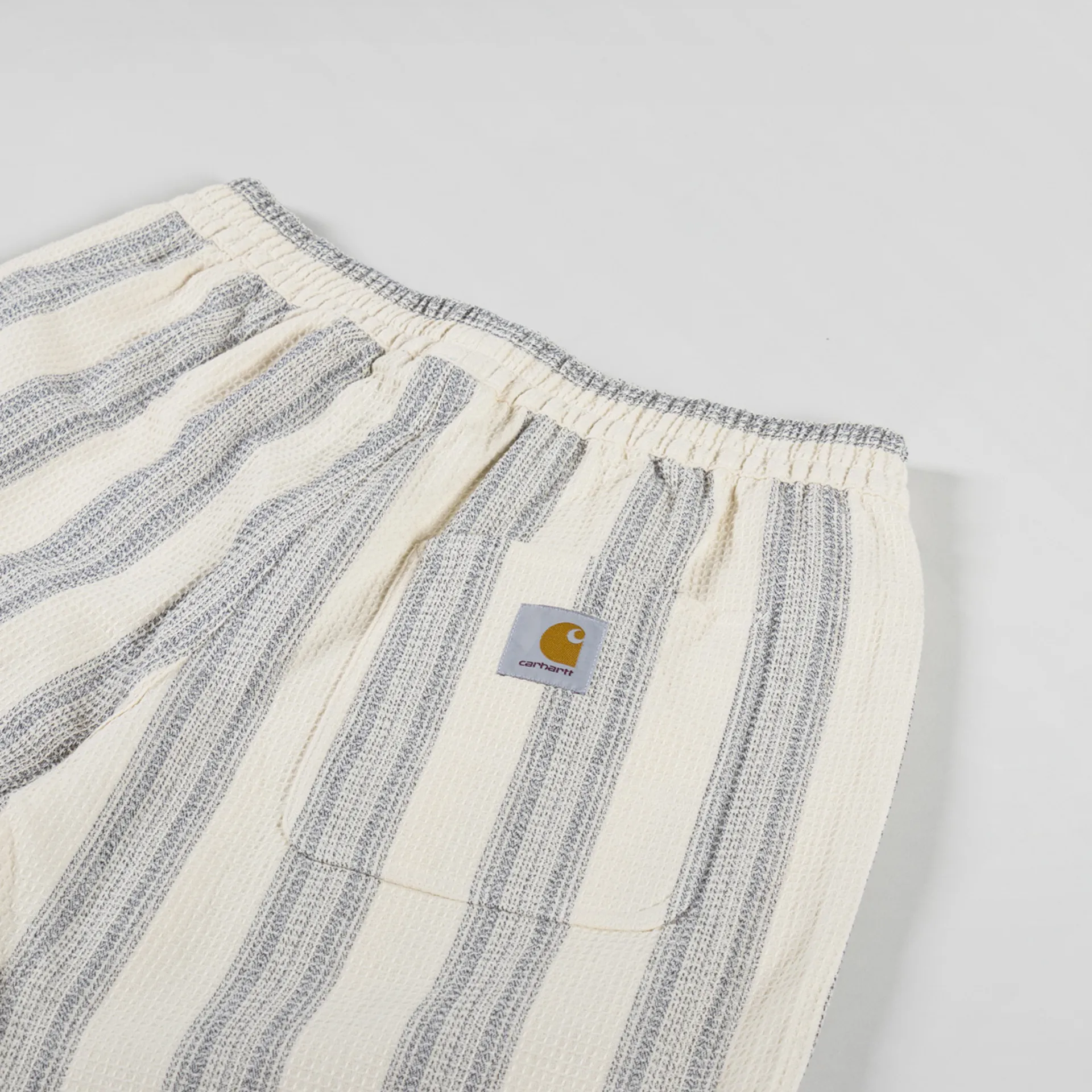 The Dodson Short from Carhartt WIP has been cut with a loose, straight leg and a regular-fitting waist. Crafted from midweight textured cotton waffle that has been garment-washed for softness. It features an elasticated waist with adjustable drawstrings, two slant pockets to the front and a single patch pocket to the back. Finished off with an all-over striped design and the Carhartt WIP logo patch to the rear.
