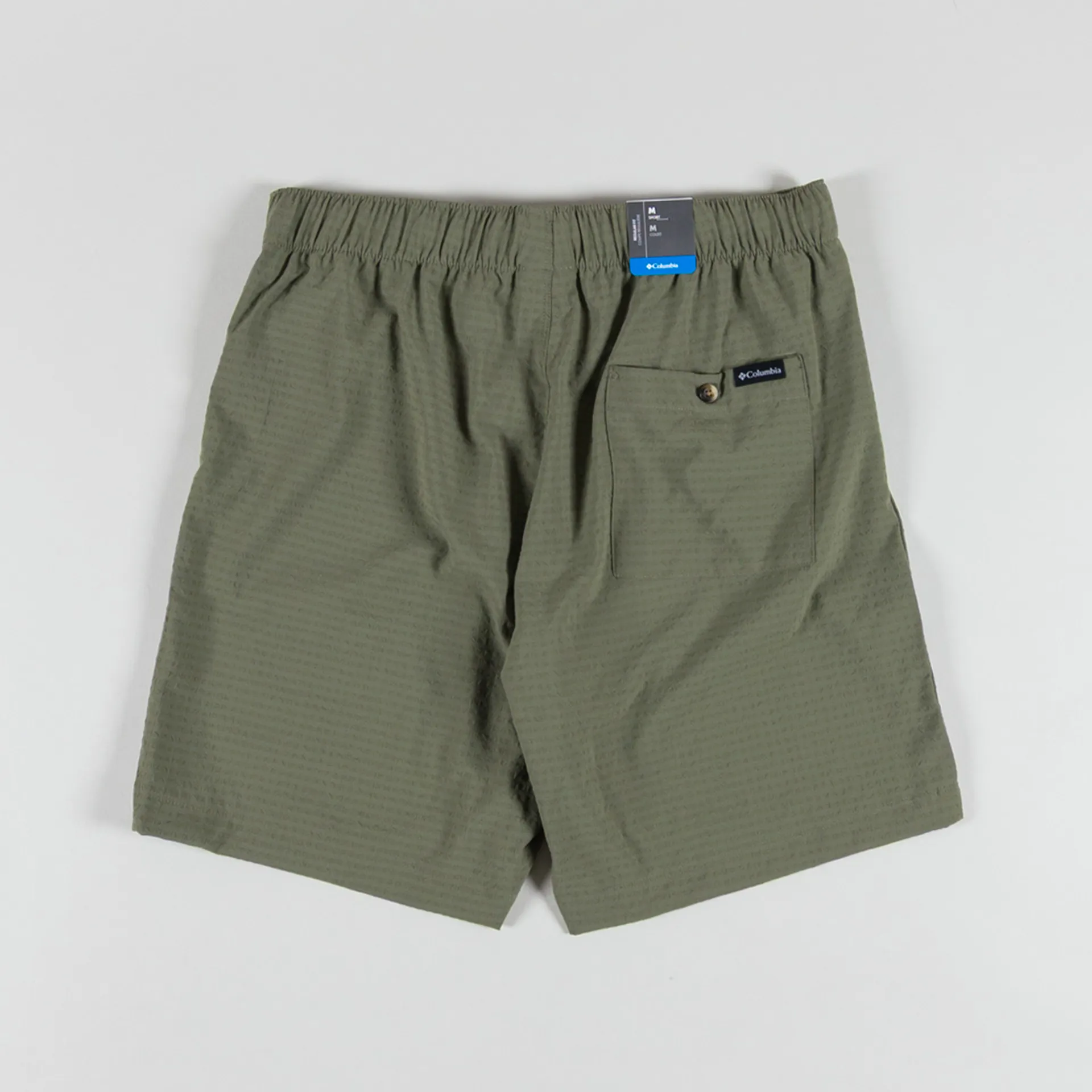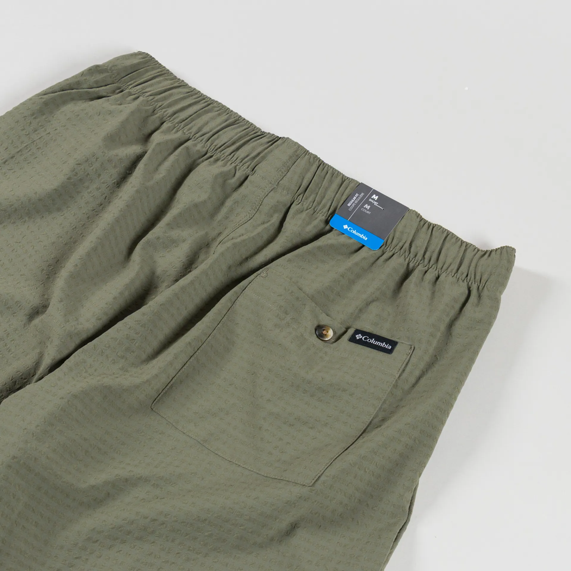 A pair of hiking shorts from Columbia, constructed with Omni-Wick,an enhanced wicking technology designed to move moisture away from the skin and disperse it across the fabric surface for evaporation. They're cut in a regular fit for everyday comfort and have an all-over seersucker texture. Featuring an elasticated waistband with internal drawstrings to adjust the fit, with two front hand pockets, a single zipped security pocket to the side and a buttoned patch pocket to the back. The design is complete with a woven Columbia logo at the top of the back pocket.