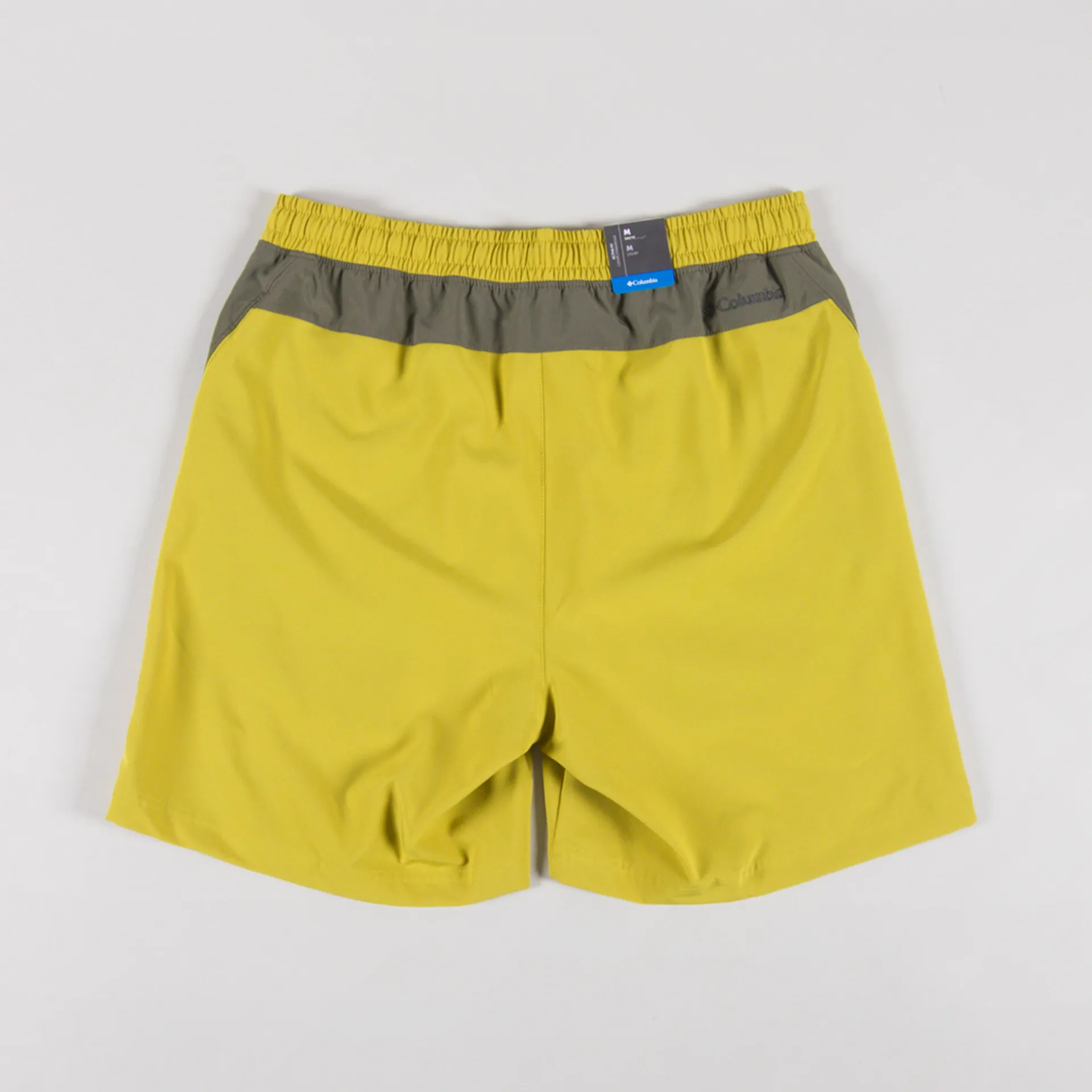 A pair of hiking shorts from Columbia, cut in a slightly slim fit for everyday comfort and constructed with Omni-Wick, an enhanced wicking technology designed to move moisture away from the skin and disperse it across the fabric surface for evaporation. They feature an elasticated waistband with internal drawstrings to adjust the fit, with two front pockets and embroidered logos to the front and back.