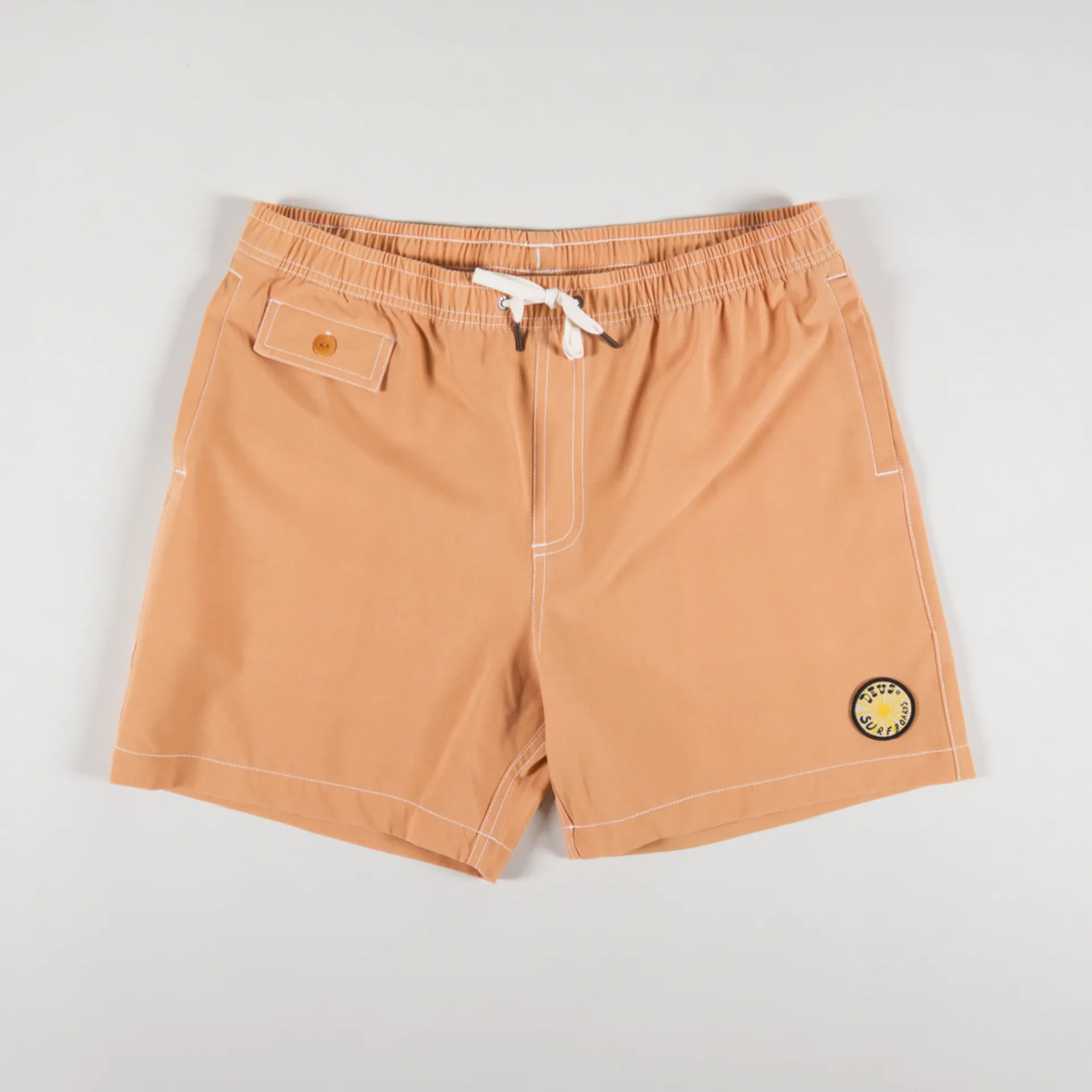 A pair of swimming shorts from Deus Ex Machina made from a comfortable blend of 91% polyester and 9% spandex, with an elasticated/drawstring waist, a three pocket design plus a buttoned stash pocket, and an embroidered logo patch to the leg.