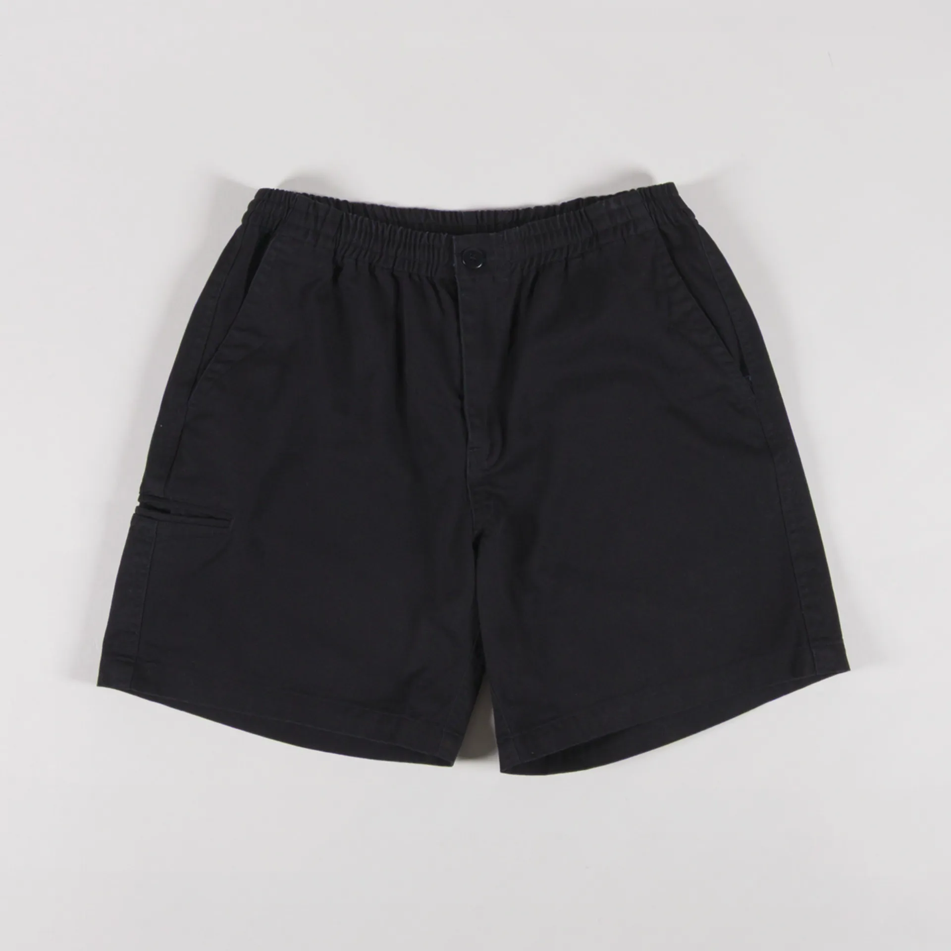 The Officer Chino Shorts from Frizmworks are cut in a relaxed fit for everyday comfort and constructed from washed cotton twill fabric. They have a zip and button fly, an elasticated waistband, two pockets to the front and back, and a small coin pocket at the thigh.