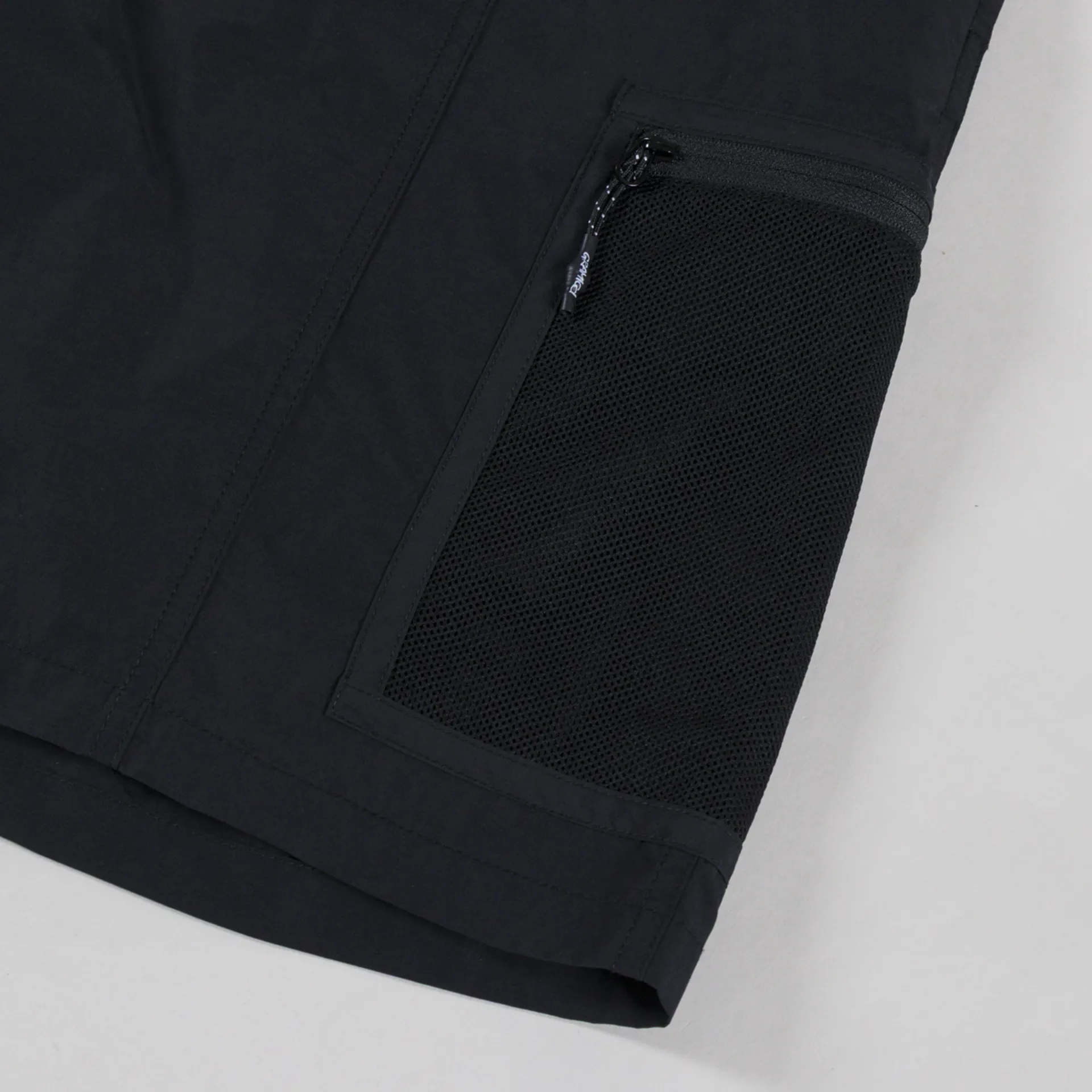 A pair of trail-ready shorts from Gramicci, constructed from a durable and water-repellent blend of nylon and cotton. They're cut in a regular fit for everyday wear and feature a zip and button-fly, leading to an elasticated waistband with an integrated belt to adjust and a diamond-shaped crotch gusset for freedom of movement. This style is unlined and has two front pockets with mesh lining, a single back zipper pocket, a single mesh thigh pocket and is finished with a woven Gramicci patch to the bottom front.