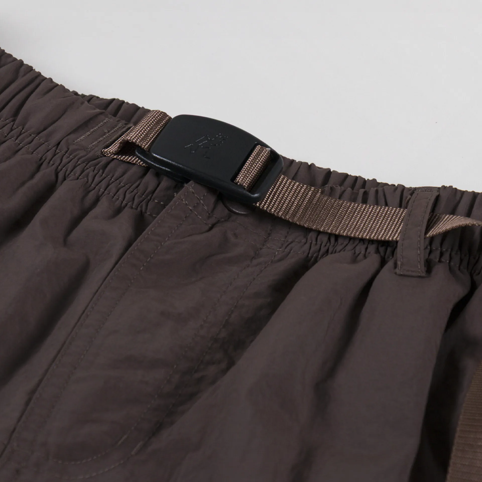 A pair of technical shorts from Gramicci, made from a comfortable nylon plain weave with a zip and button fly, a woven climbing belt and a four pocket design.