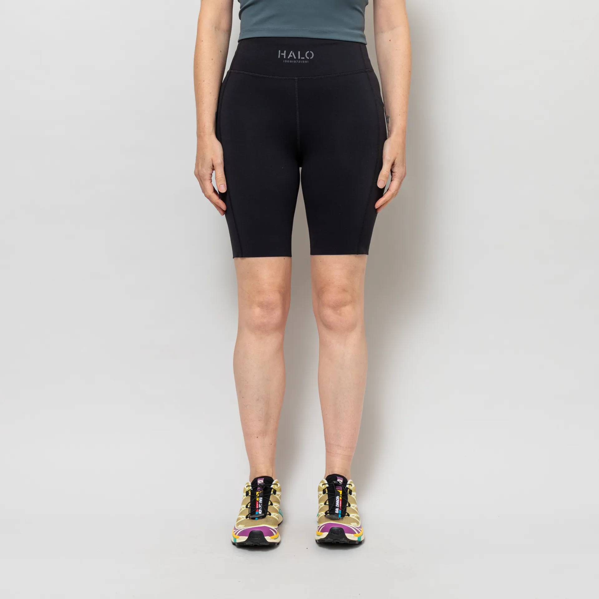 A pair of sports shorts from Halo, cut with a high-waist and designed to sit above the knee. They're constructed from flexible polyamide with four-way stretch, which allows them to flow with the natural shape of your body for freedom of movement. With laser-cut edges for a seamless finish, a side pocket and reflective branding.
