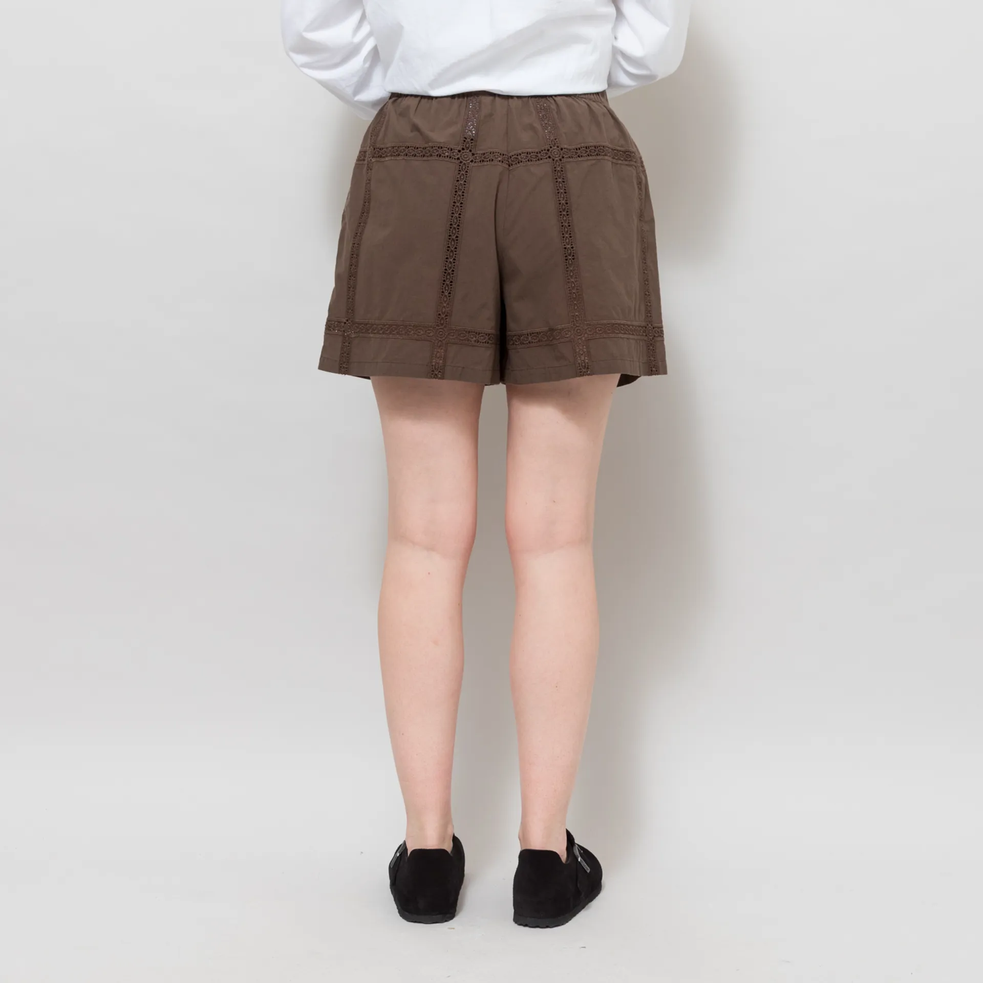 Indi and Cold Womens Lace Poplin Shorts Chocolate