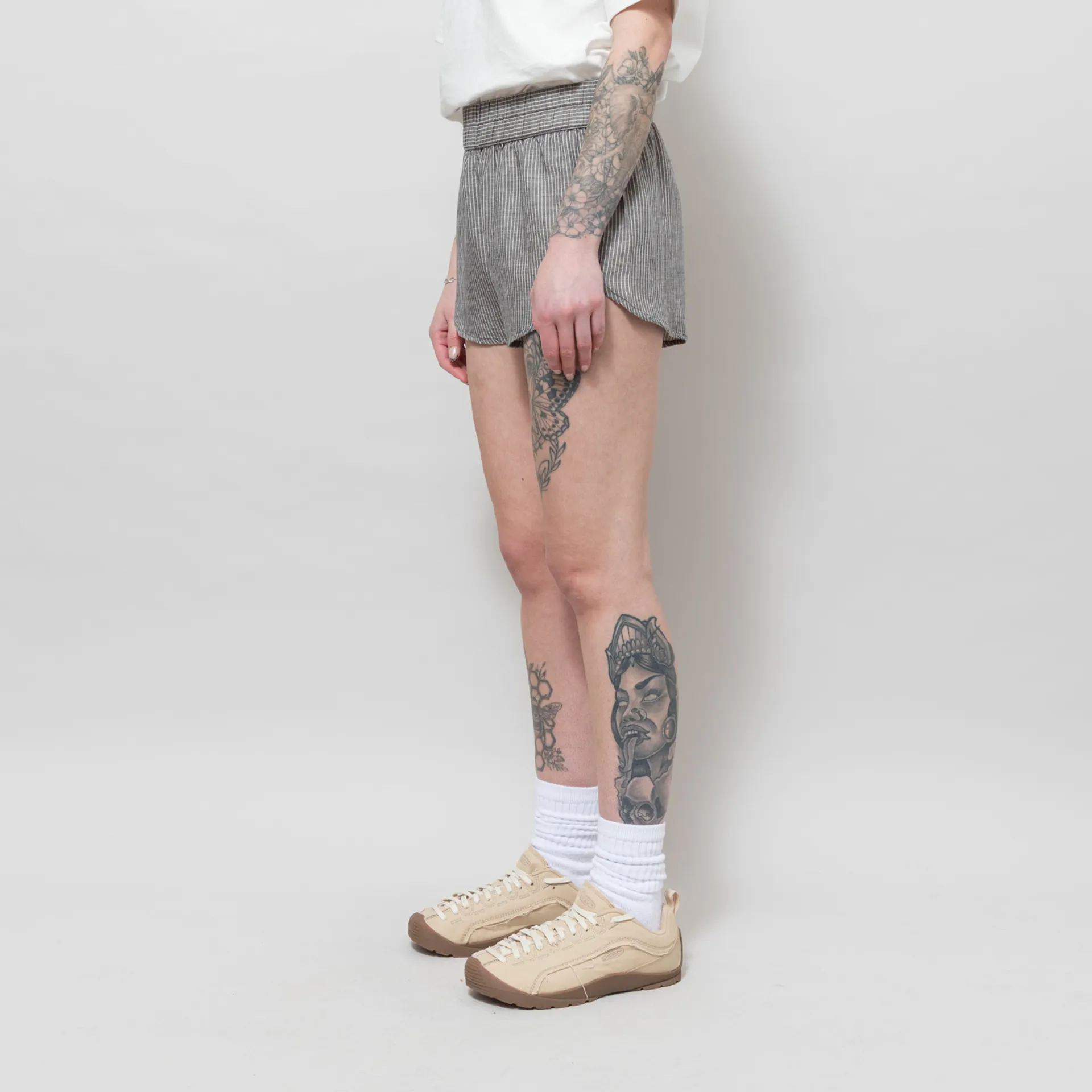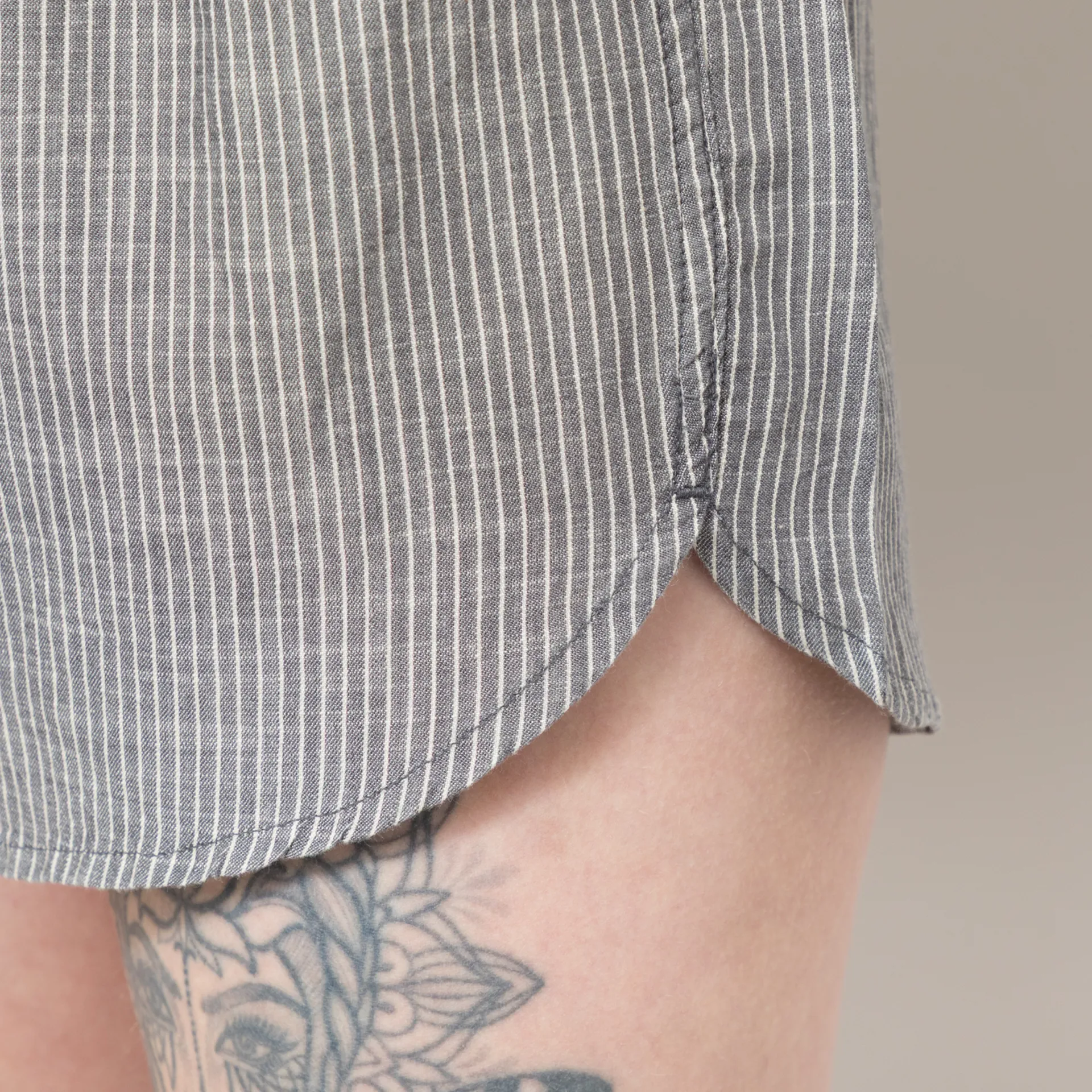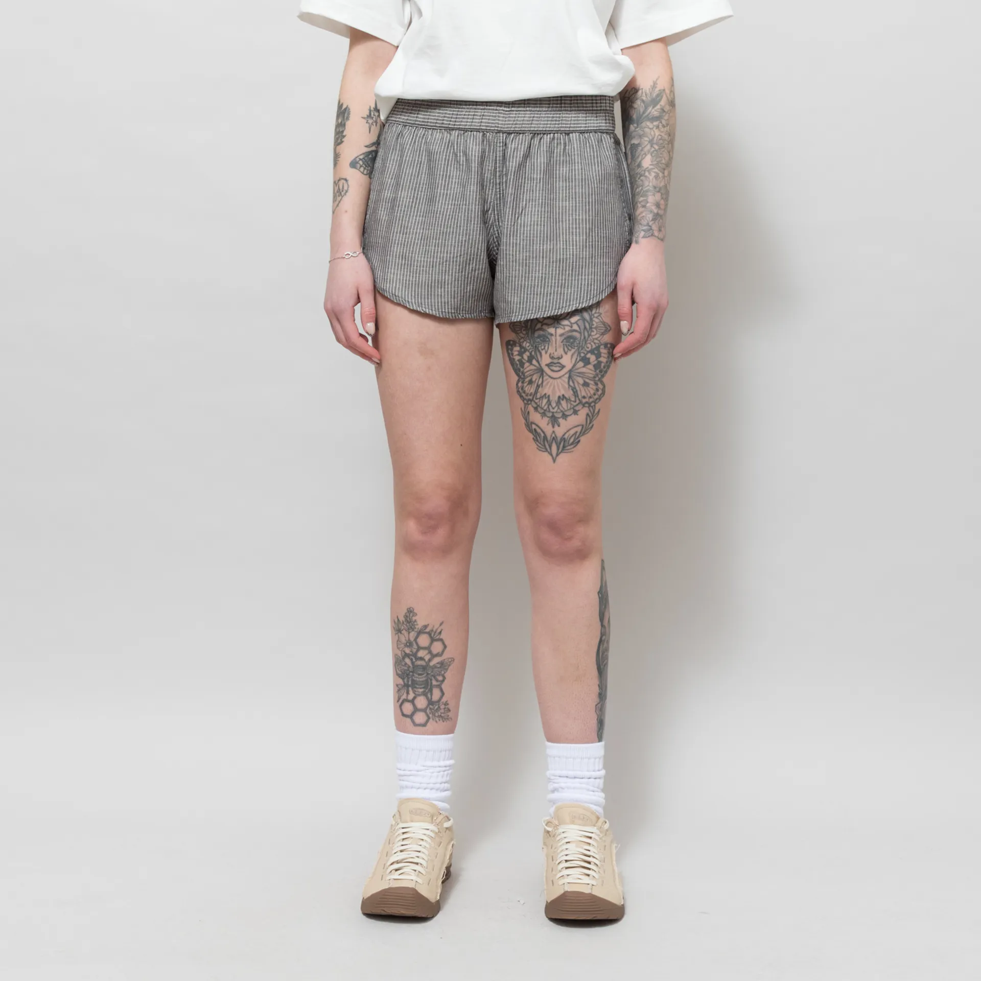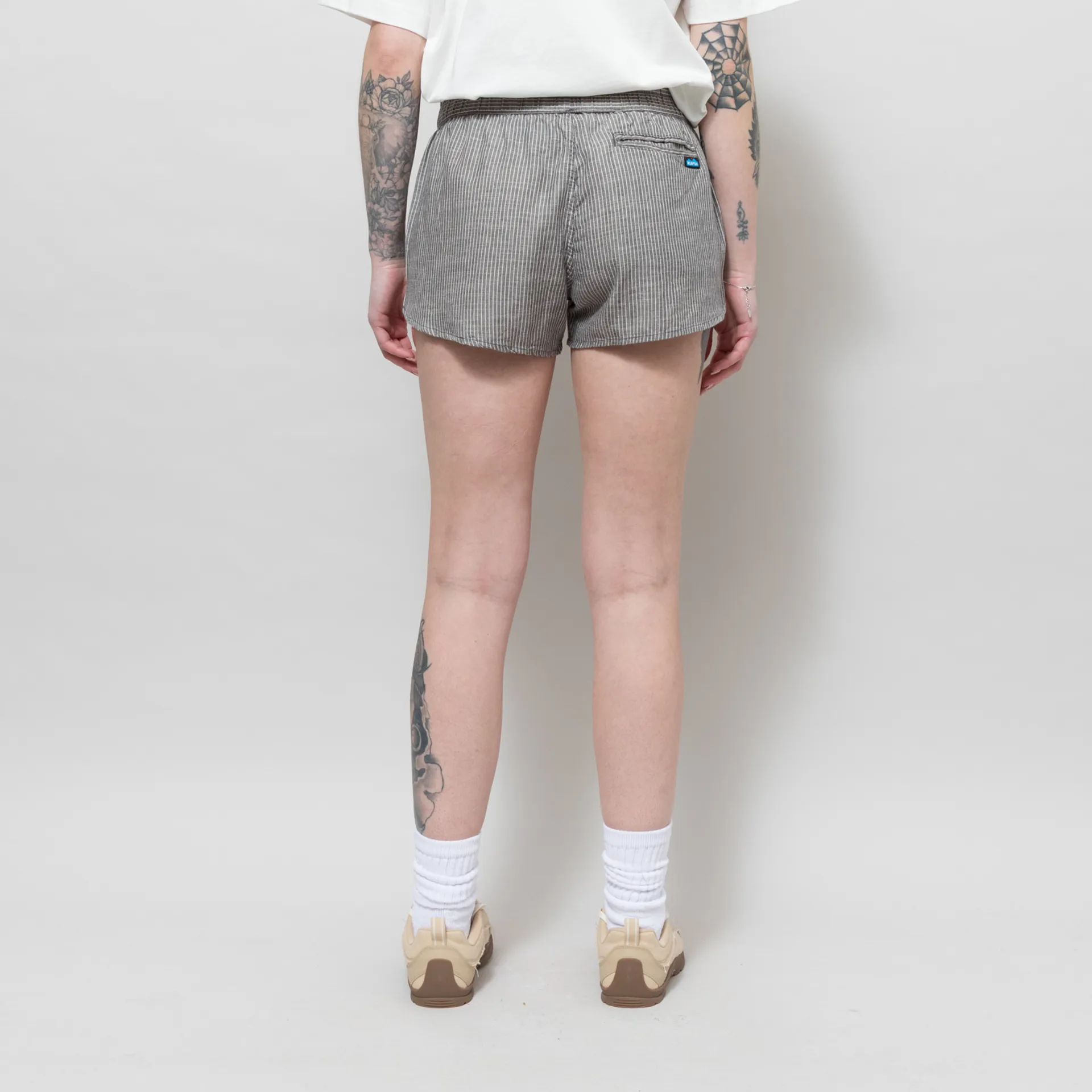 A pair of lightweight mini shorts from Kavu, cut in a relaxed fit for a casual silhouette and constructed from a durable blend of organic cotton and tencel with an all-over striped design. They have an elasticated waistband, a scalloped hem and a single back welt pocket with a woven Kavu label.
