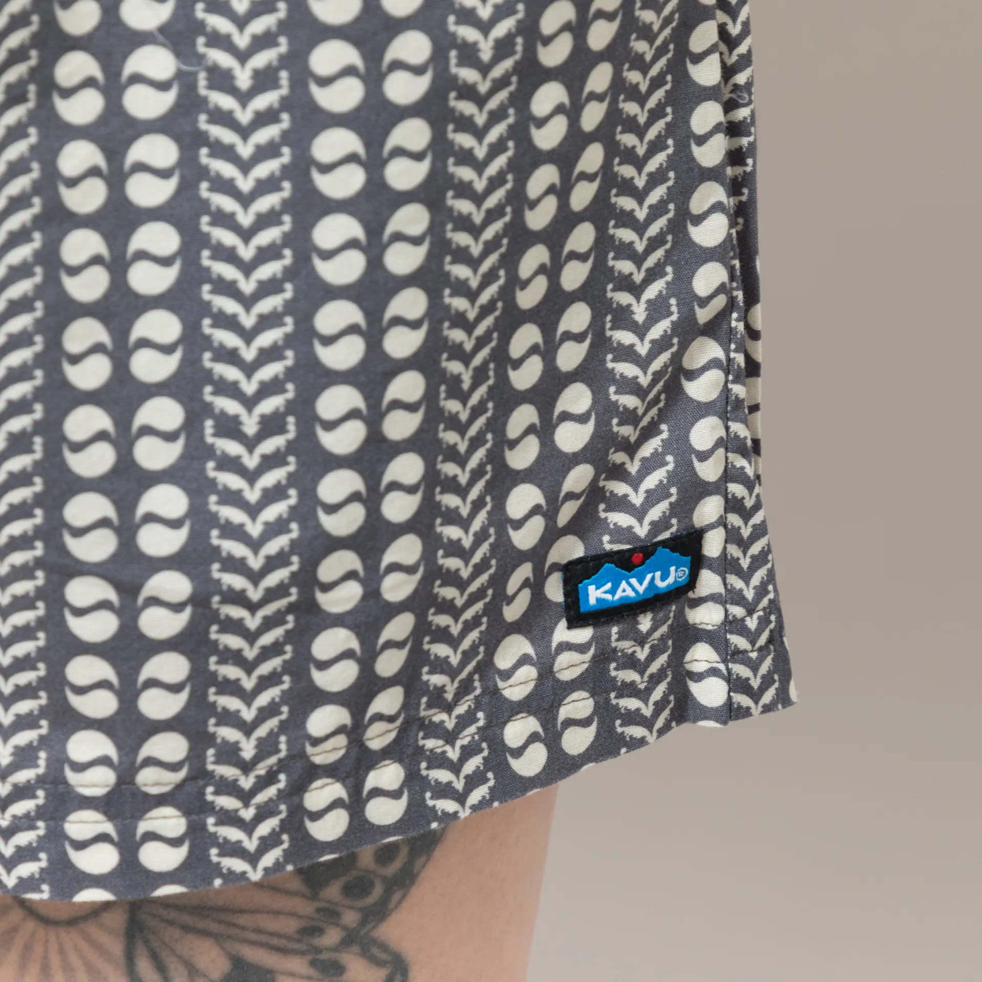 A pair of light summery shorts from Kavu, cut in a relaxed fit with a mid-rise waist and constructed from a durable blend of cotton and tencel with an all-over pattern. They have an elasticated waistband with drawstrings to adjust, two front hand pockets and a small Kavu label to finish.