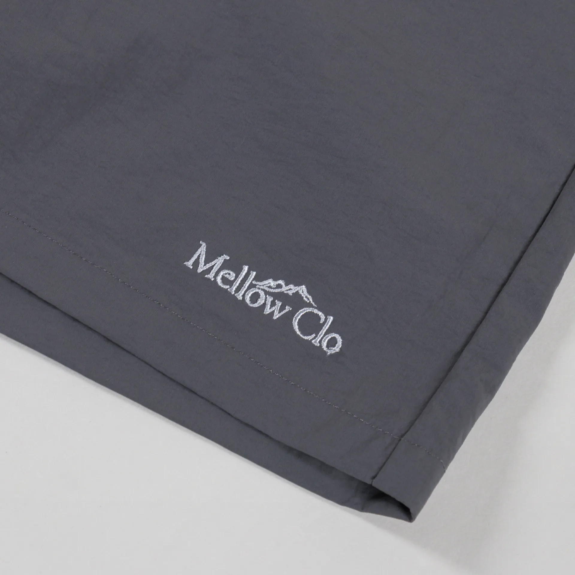 The Everyday Shorts have been cut with a regular-fitting waist and a relaxed leg for freedom of movement, constructed from water-resistant, crinkled nylon. They feature an elasticated waistband with an integrated belt to adjust the fit, with a rubber-branded patch at the end of the webbing. This style is unlined and has a single back patch pocket, two front zip pockets, and is complete with an embroidered Mellow Clo logo to the bottom front.