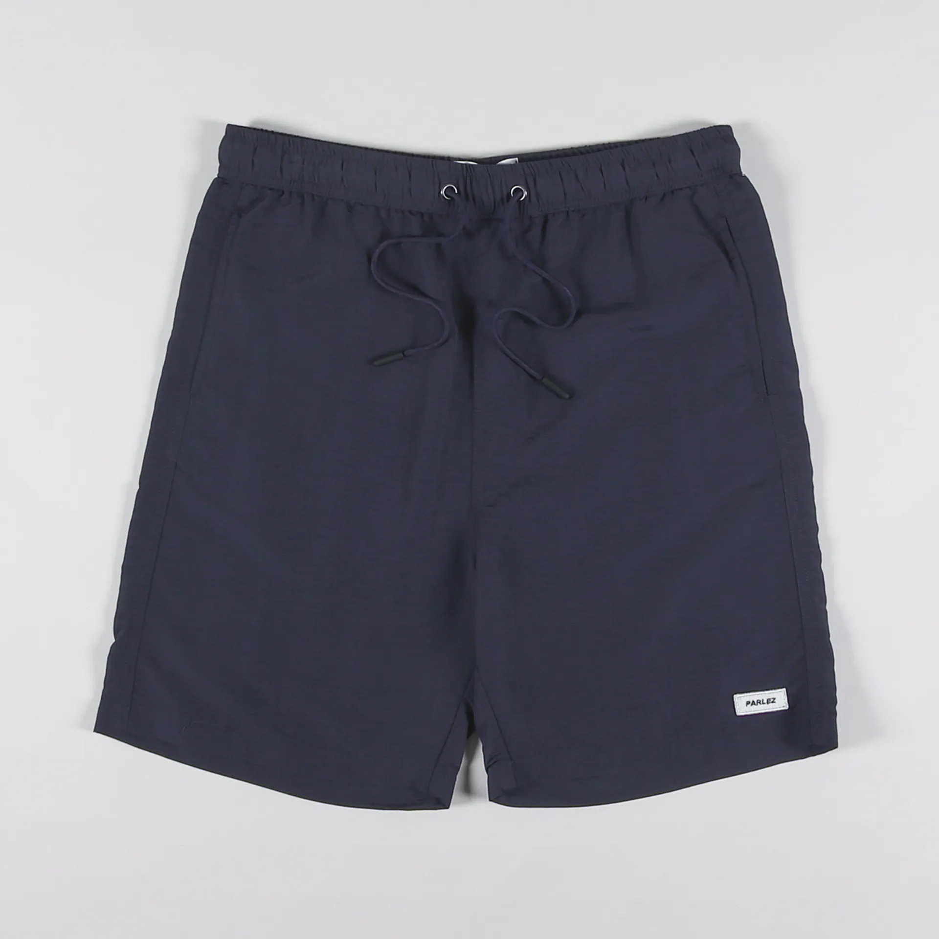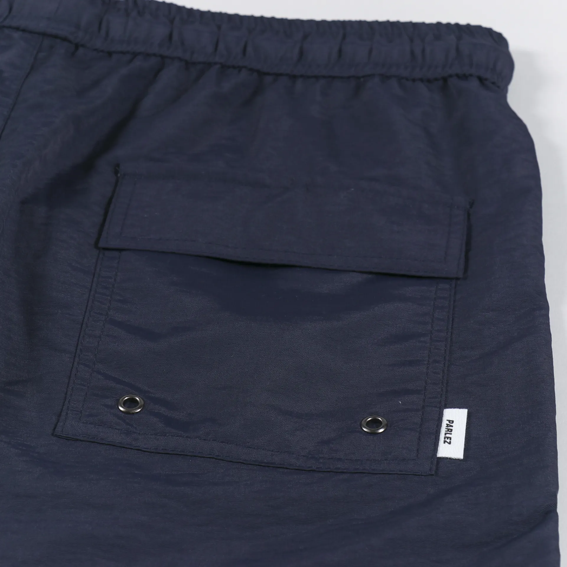 A pair of swimming shorts from Parlez, made from 100% recycled nylon with an elasticated and drawstring waist, a three pocket design and a woven Parlez label to the leg.
