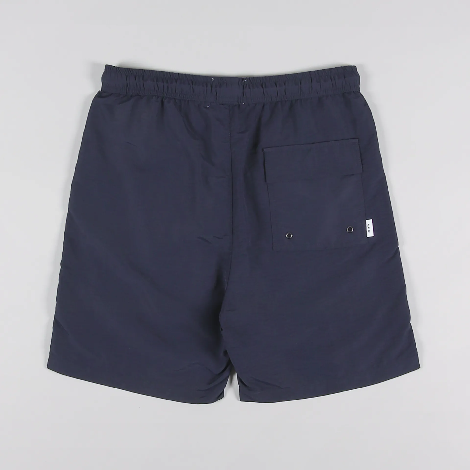 A pair of swimming shorts from Parlez, made from 100% recycled nylon with an elasticated and drawstring waist, a three pocket design and a woven logo patch to the leg.