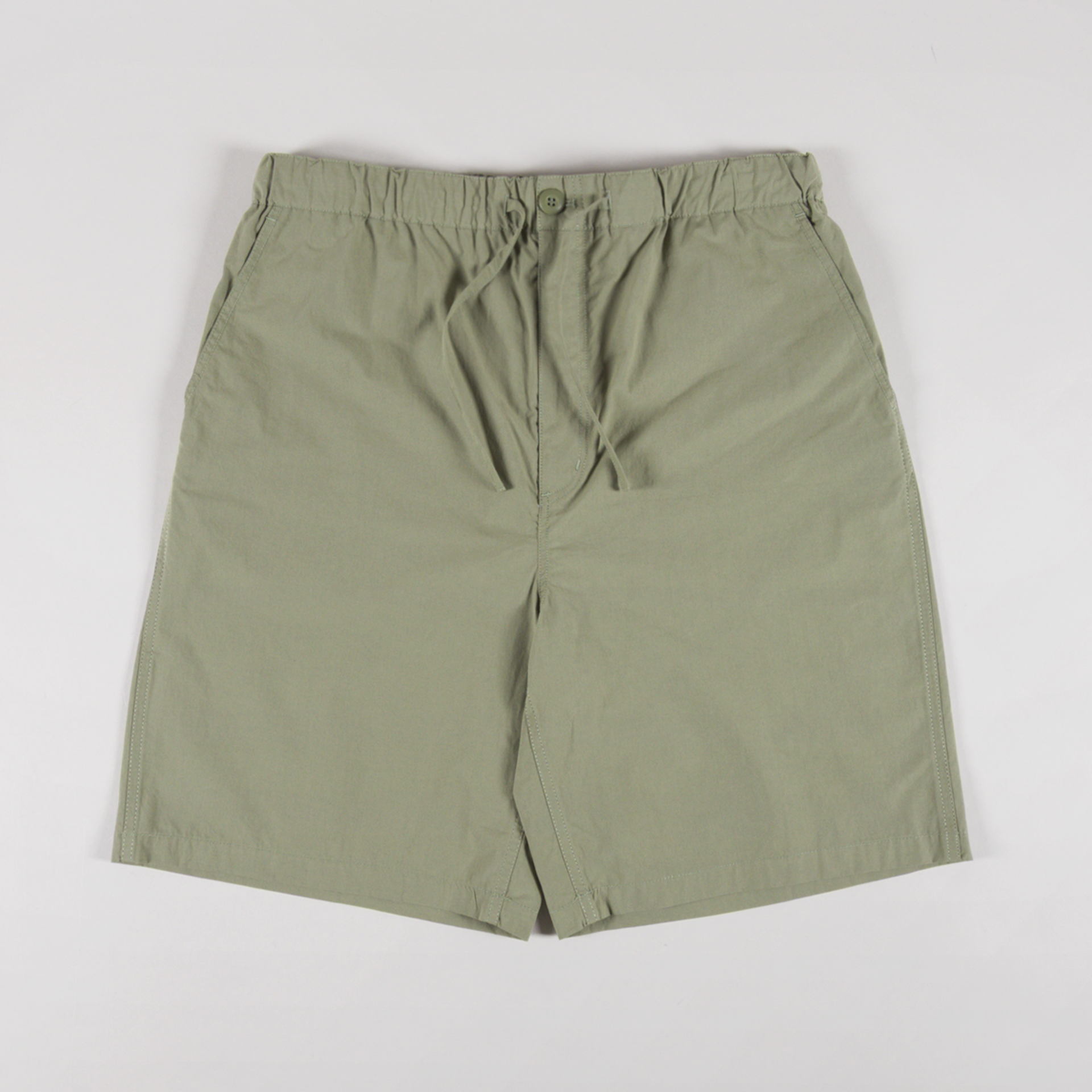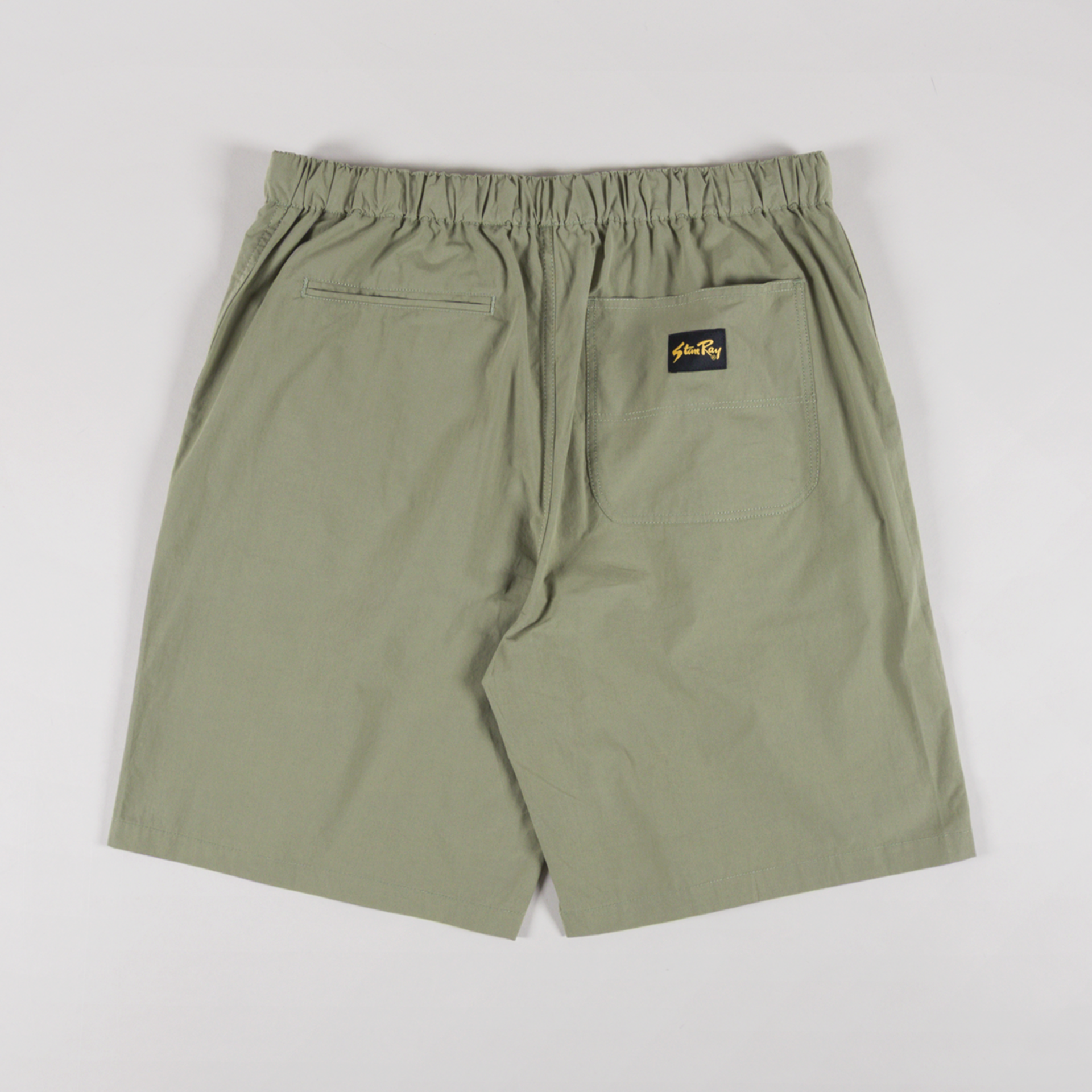 A pair of shorts from Stan Ray, constructed from lightweight cotton poplin fabric and cut in a regular fit for everyday wear. They have a zip and button fly, with an elasticated waist and drawstrings to adjust the fit. Finished with two front-hand pockets, a back welt pocket and a back patch pocket displaying a woven Stan Ray label.