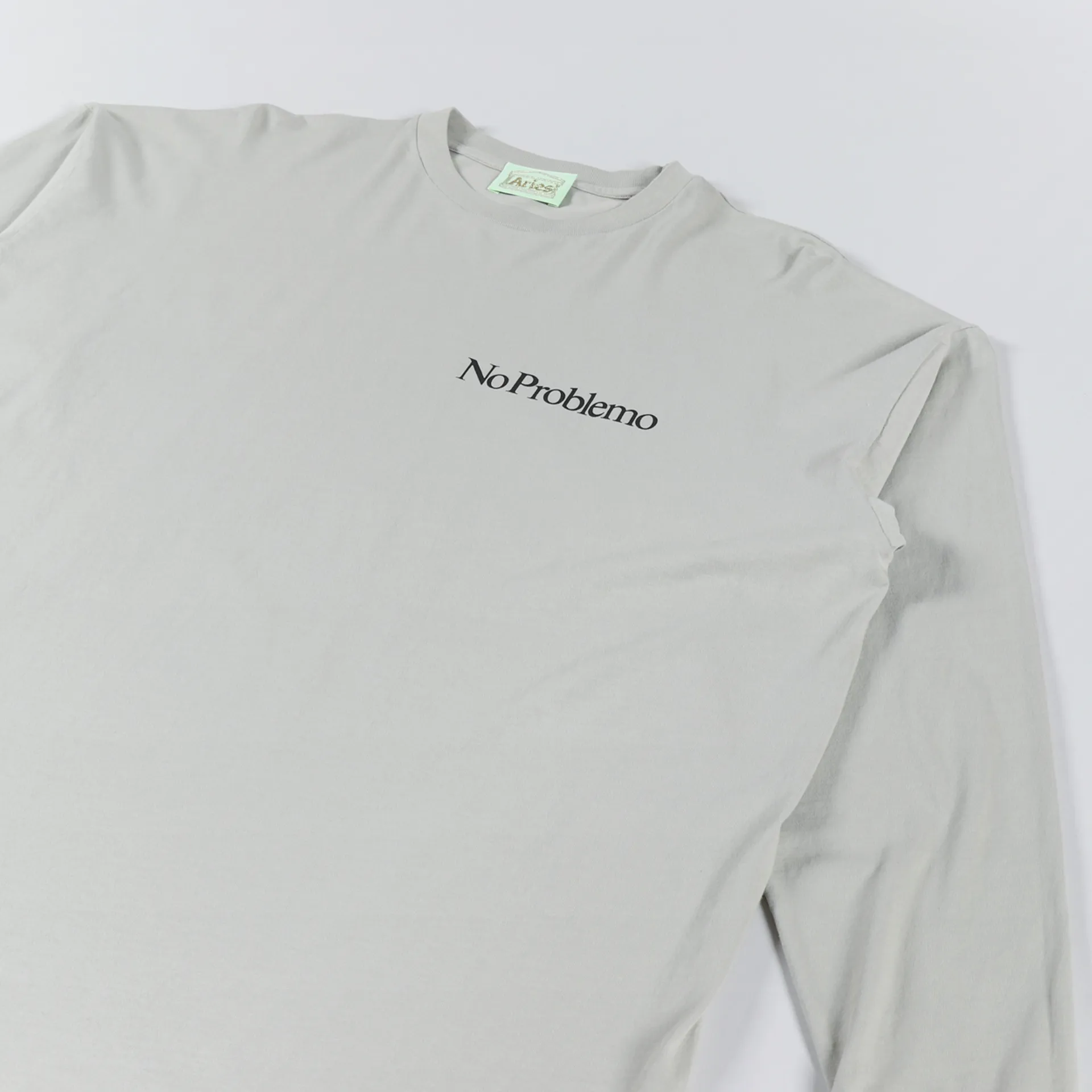 A dress-tee hybrid from Aries Arise, made from a comfortable jersey of 100% cotton with a ribbed crew neck and cuffs, and a No Problemo logo to the chest.