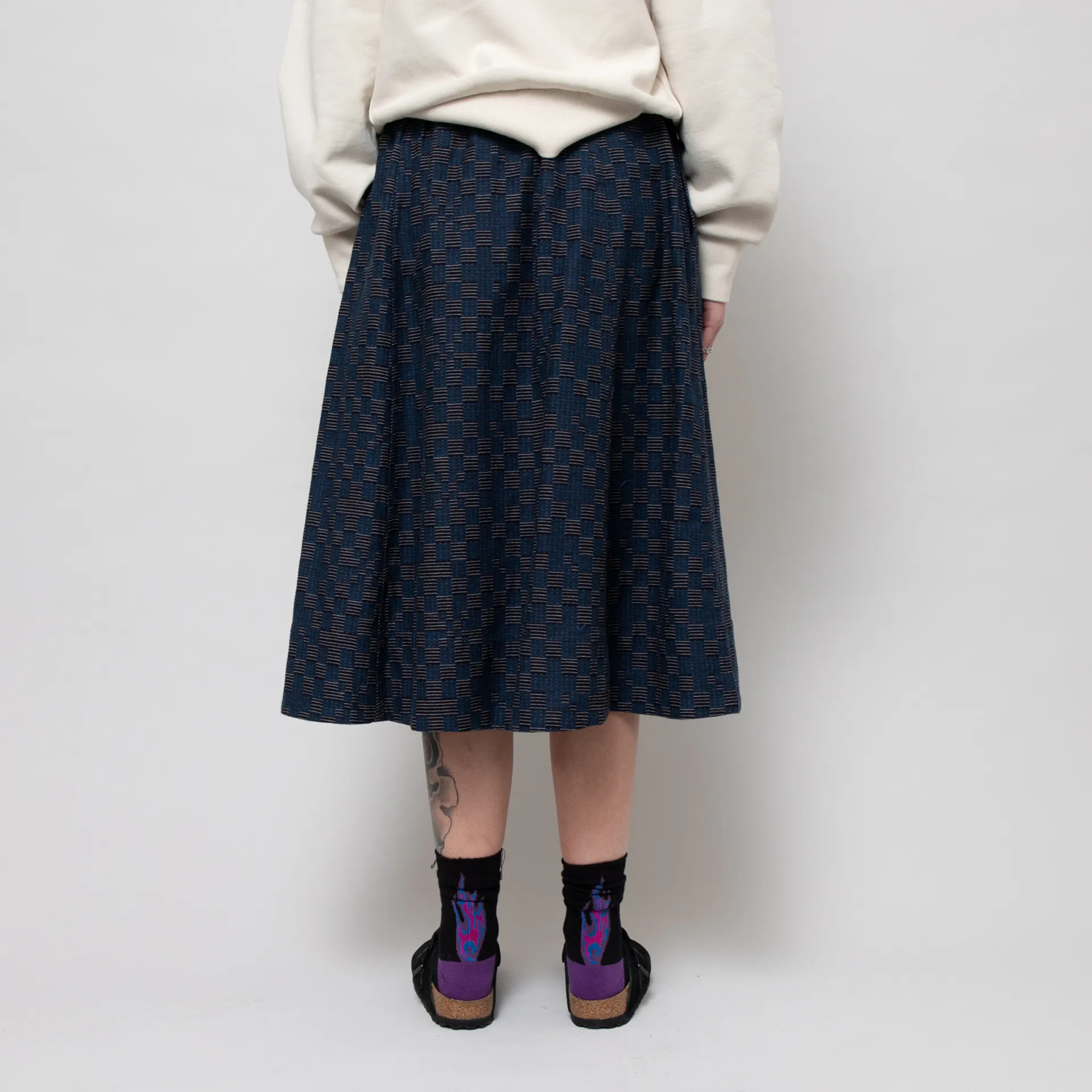 Folk Womens Full Seam Skirt Indigo Broken Checkerboard