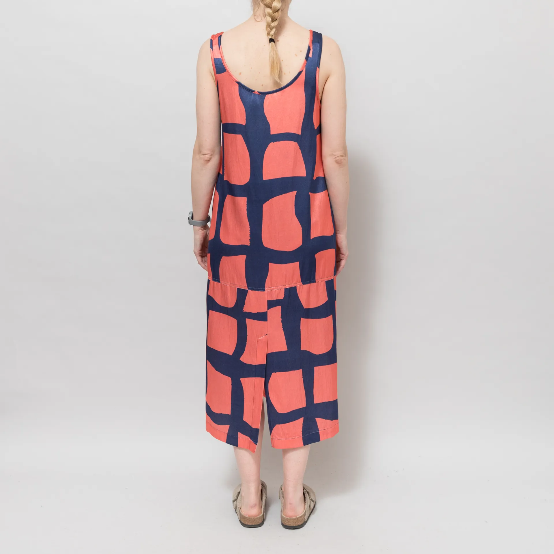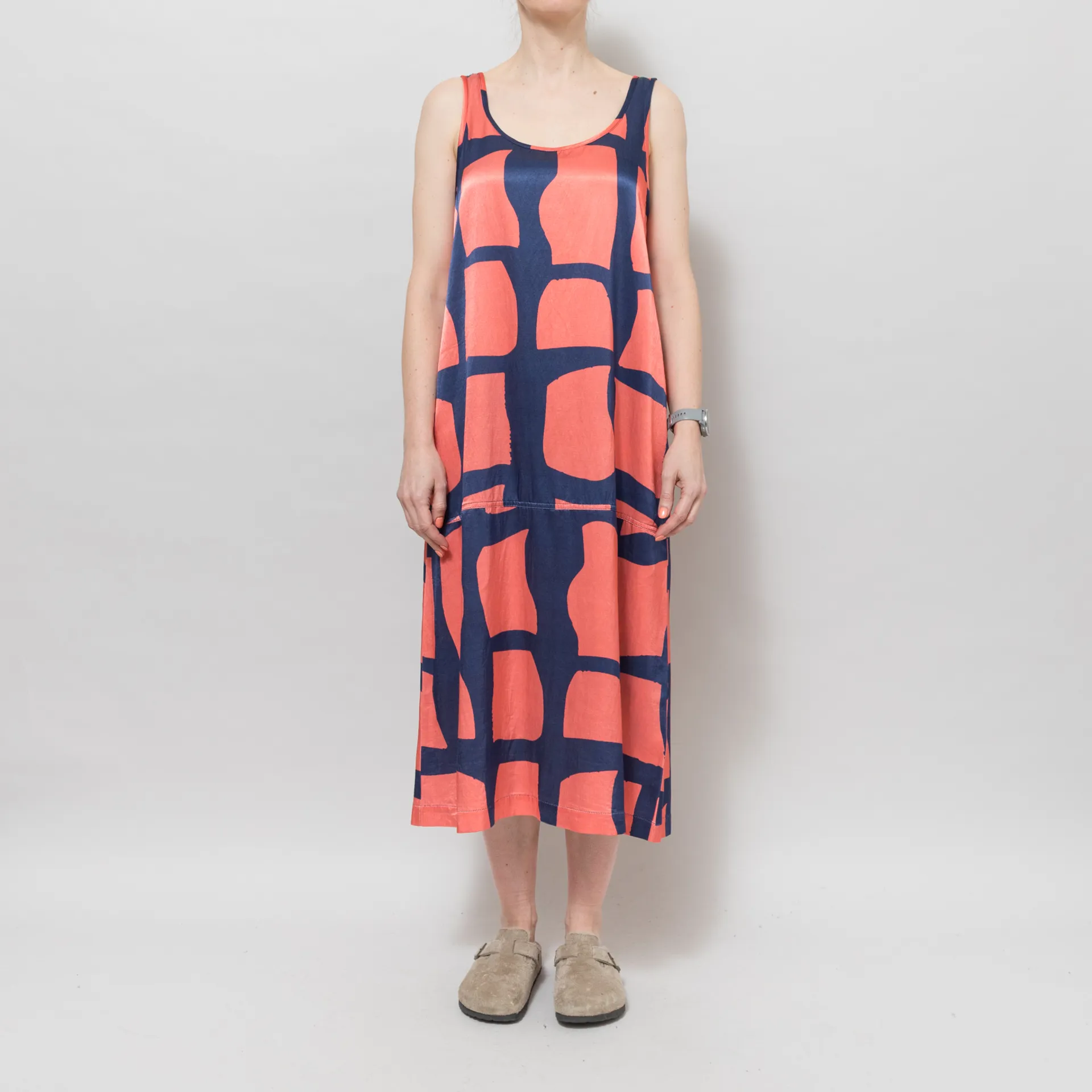 This is a relaxed-fitting, midi-length dress - stick with your usual size.