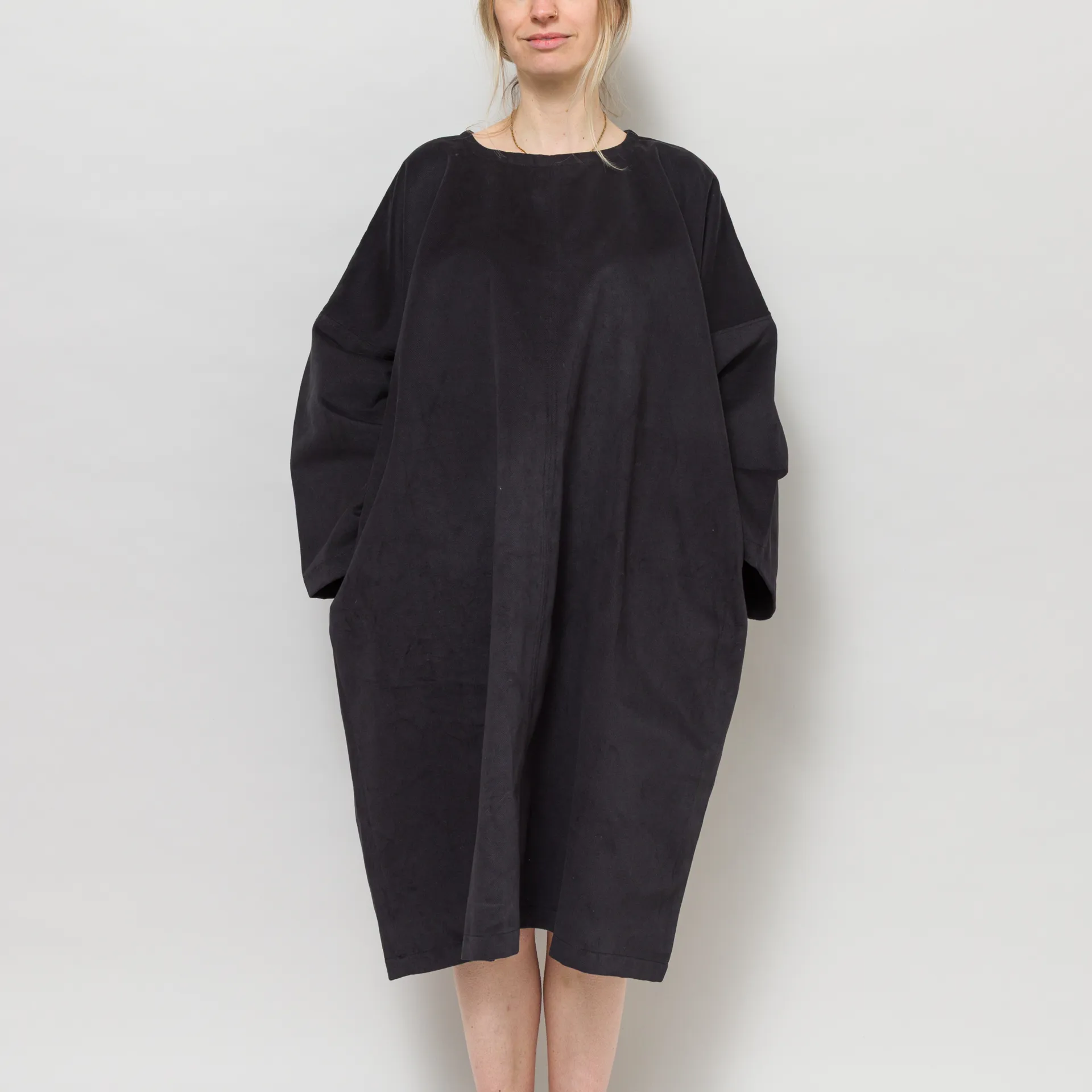 The Edie Dress from Kate Sheridan is constructed from durable cotton drill. It features seams throughout, a back neck slit with button fastening and large side pockets.This style comes in one size, it's super oversized with wide opening sleeves.
