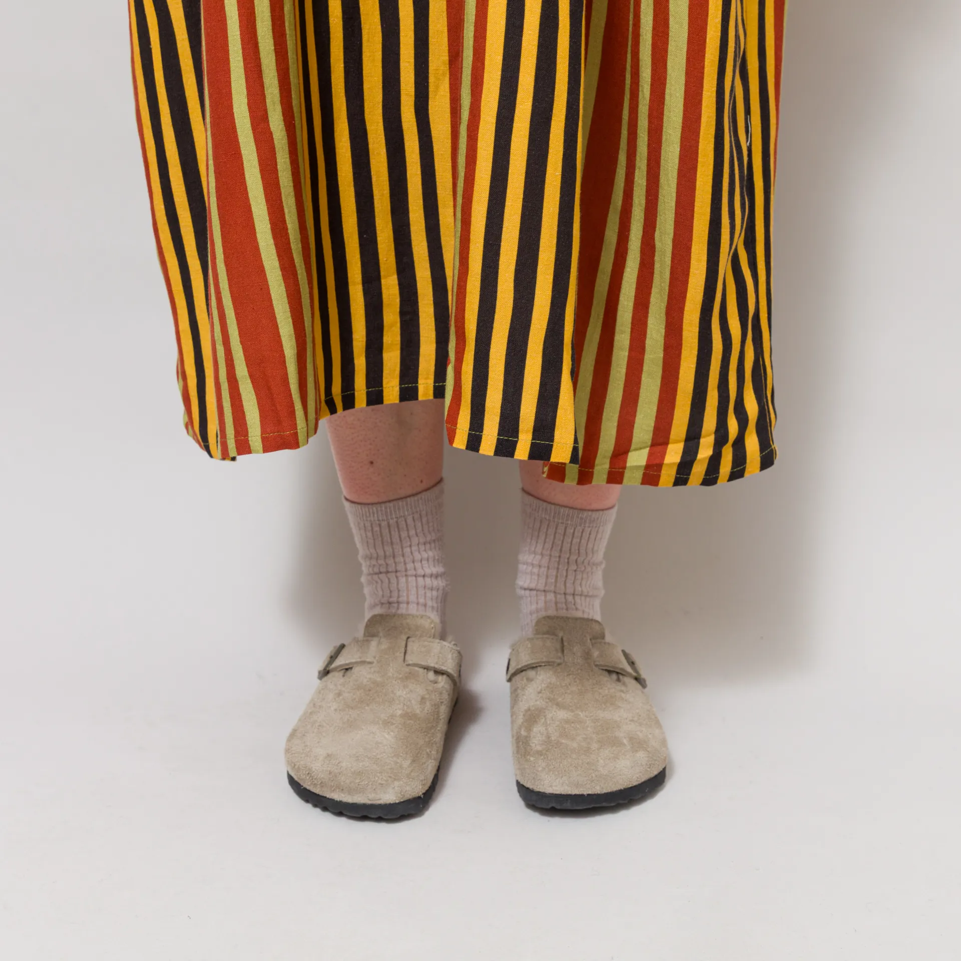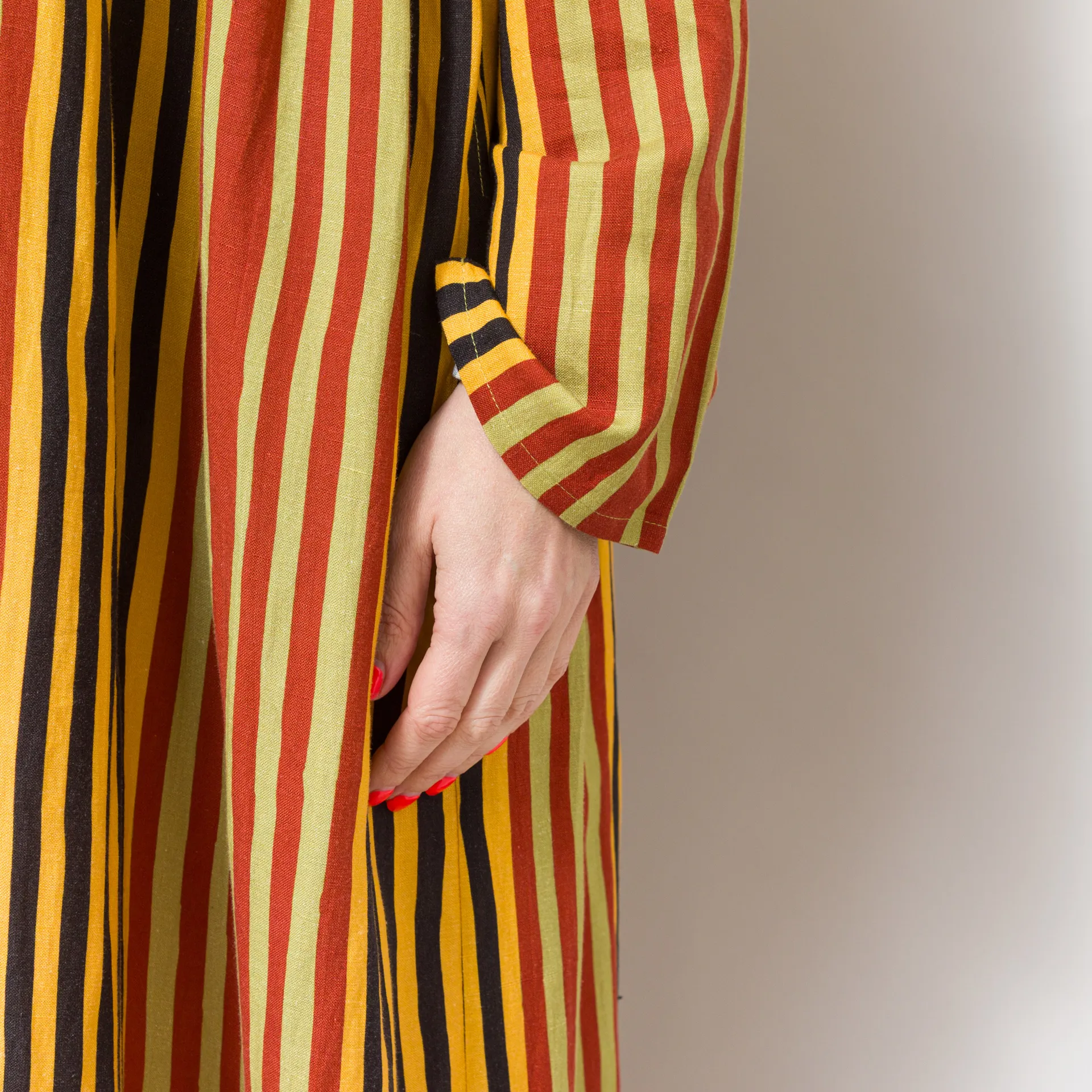 A midi-length dress from L.F. Markey, constructed from a soft linen-rayon blend with a striking all-over striped design.