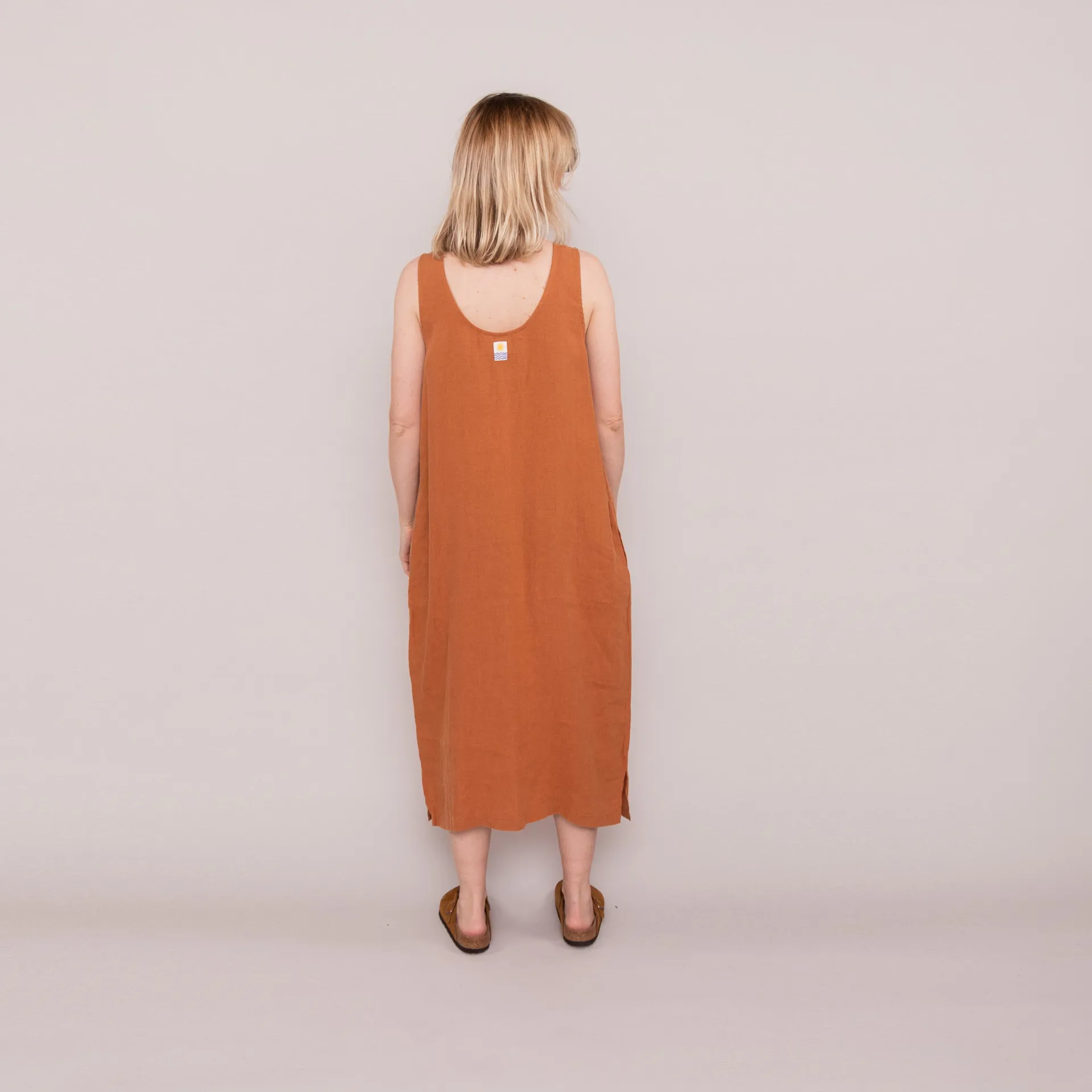 A super simple dress from L.F.Markey, made from a super comfortable and lightweight 100% linen with subtle side pockets and a woven logo patch to the rear.