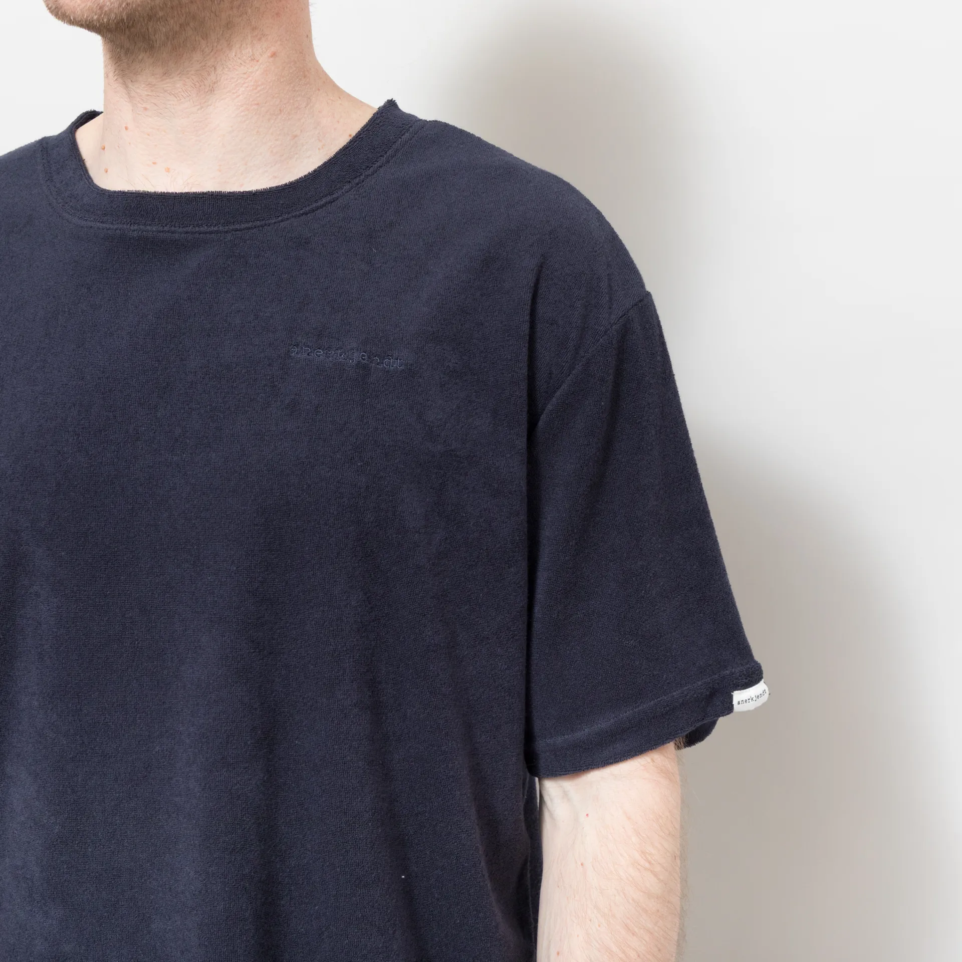 A towelling tee from Anerkjendt, cut in a boxy fit for a casual look and constructed from a soft cotton-poly blend, with a straight hem and tonal embroidered logo at the chest.