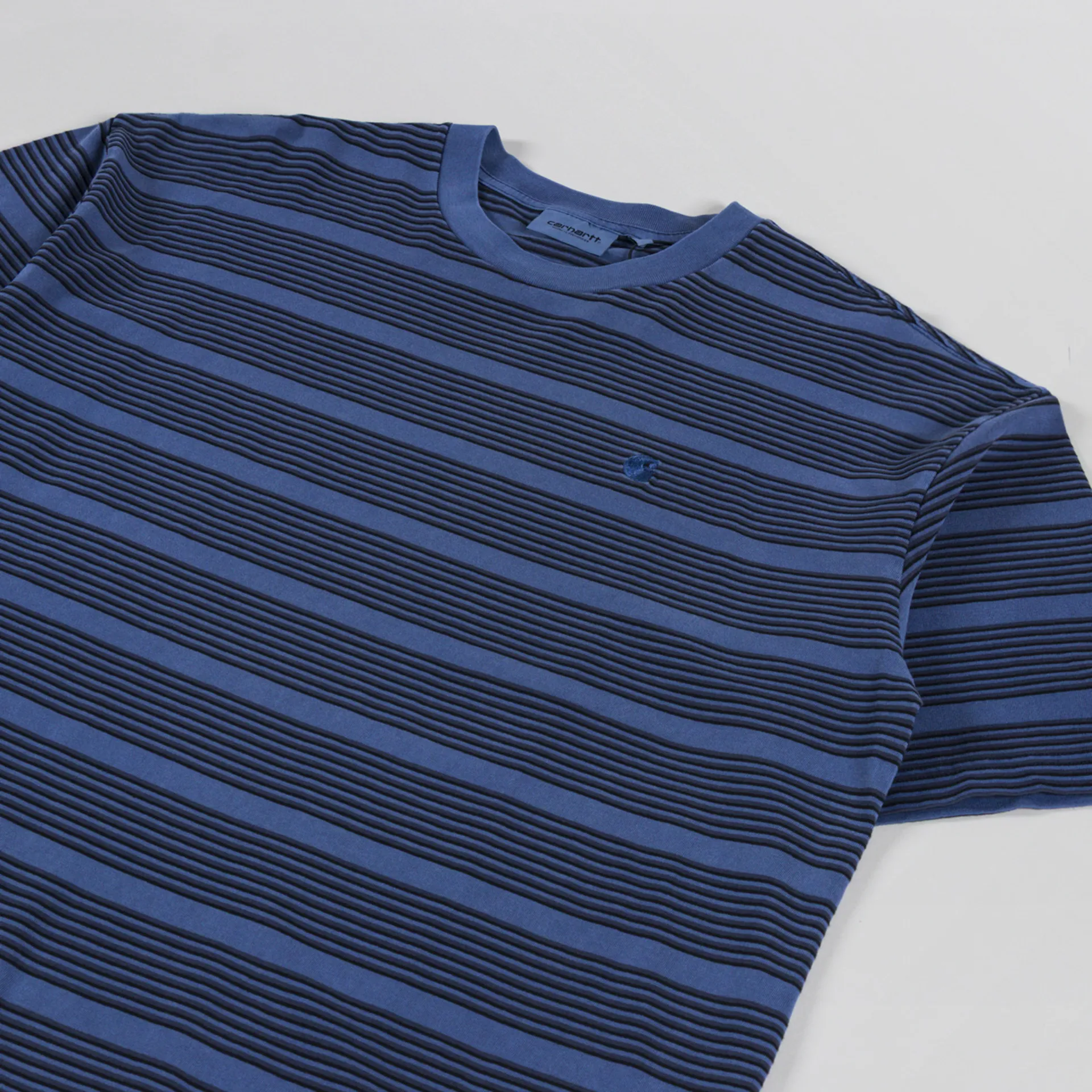 A striped tee from Carhartt WIP, constructed from midweight cotton jersey, garment-dyed for a softer feel and complex colour configuration. It's cut in a loose, boxy fit and features a ribbed crewneck, dropped shoulders and a straight hem. Finished off with a tonal embroidered C logo at the chest.