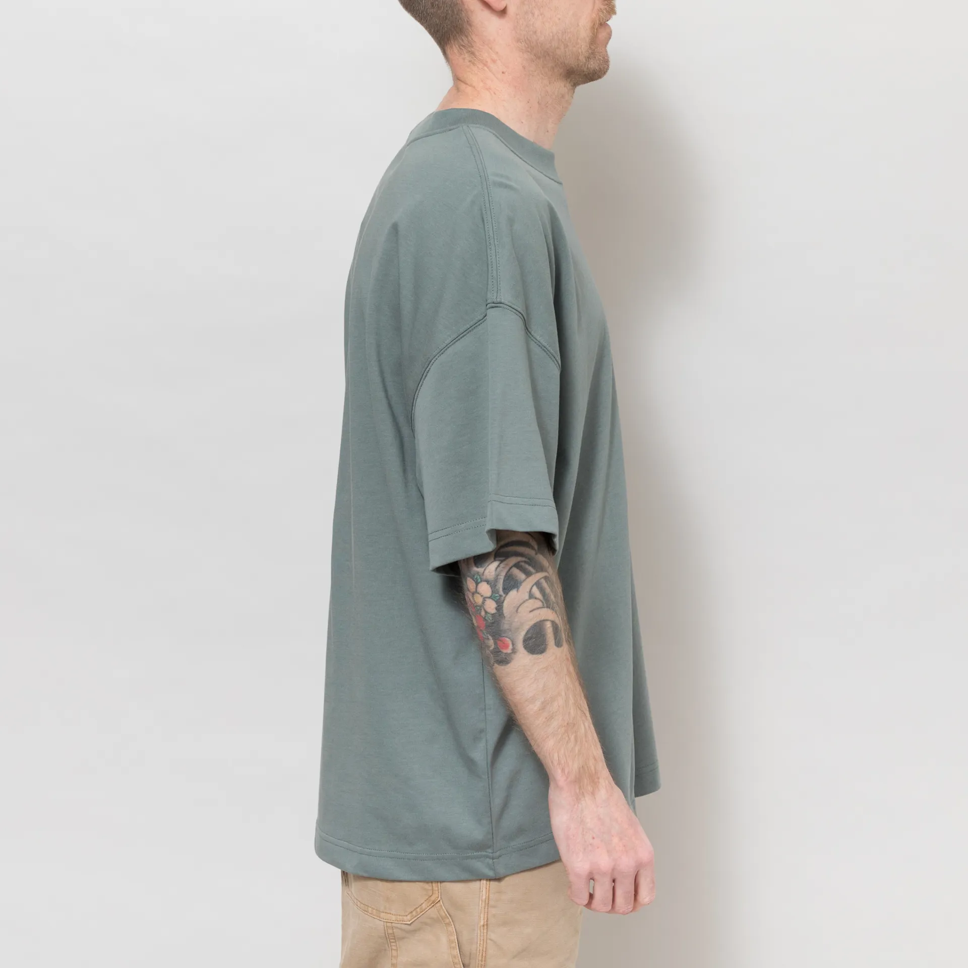 This is an oversized fit; proper loose, pretty boxy - usual size will be huge, size down if you want more of a standard relaxed fit.