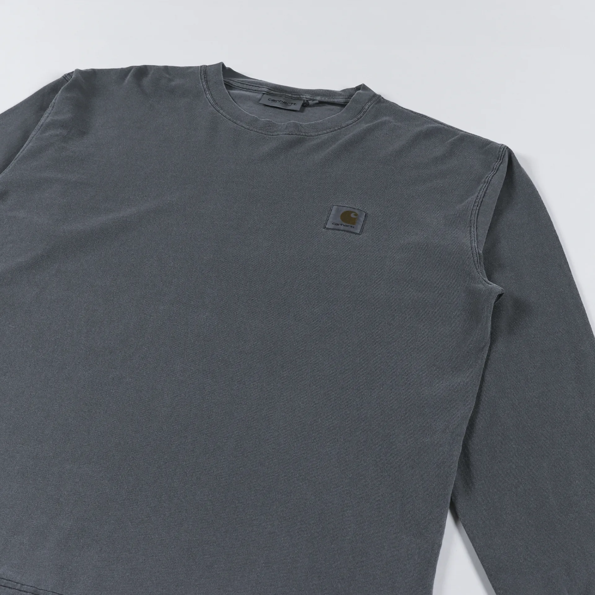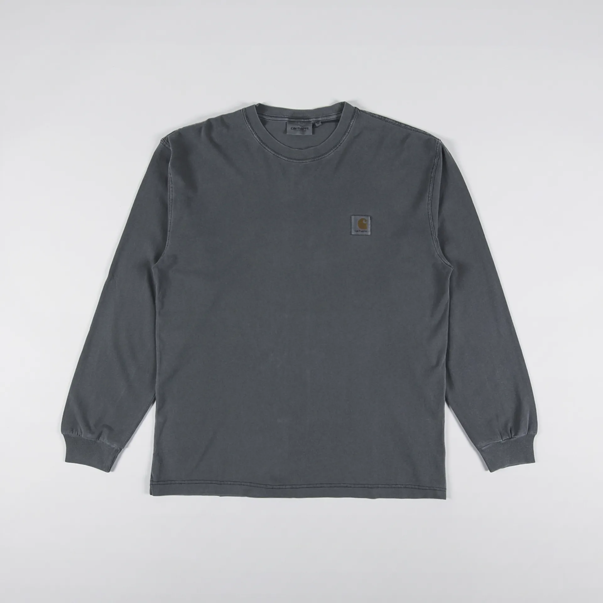 A long sleeve tee from Carhartt WIP made from a comfortable single jersey of 100% cotton with a ribbed crew neck and cuffs, and a logo patch to the chest. It's also been treated with a garment pigment dye for a soft wash and colour.